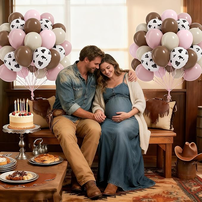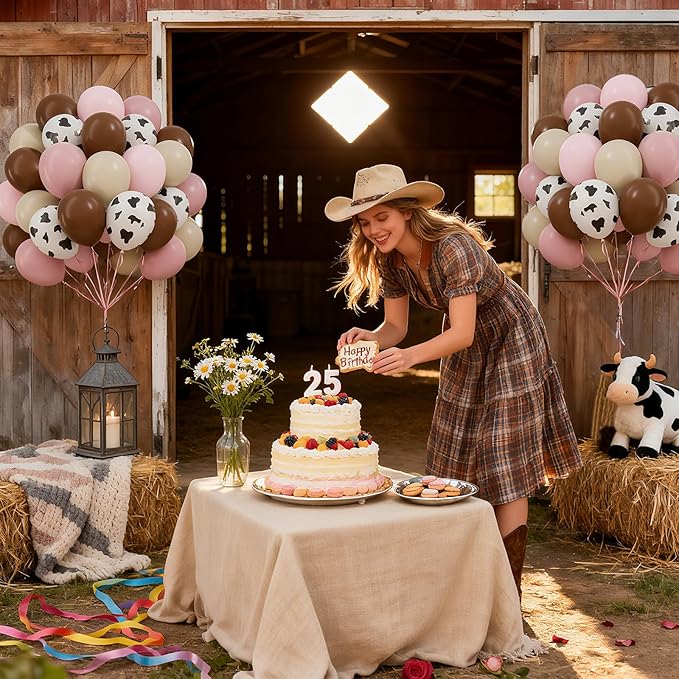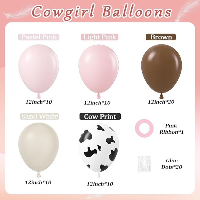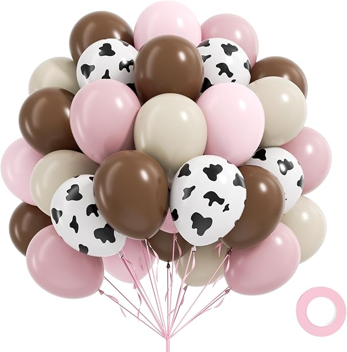 60pcs Cow Print Balloons 12inch, Brown Sand White Pastel Light Pink Cow Balloons for Farm My First Rodeo Country Baby Shower Birthday Party Decorations