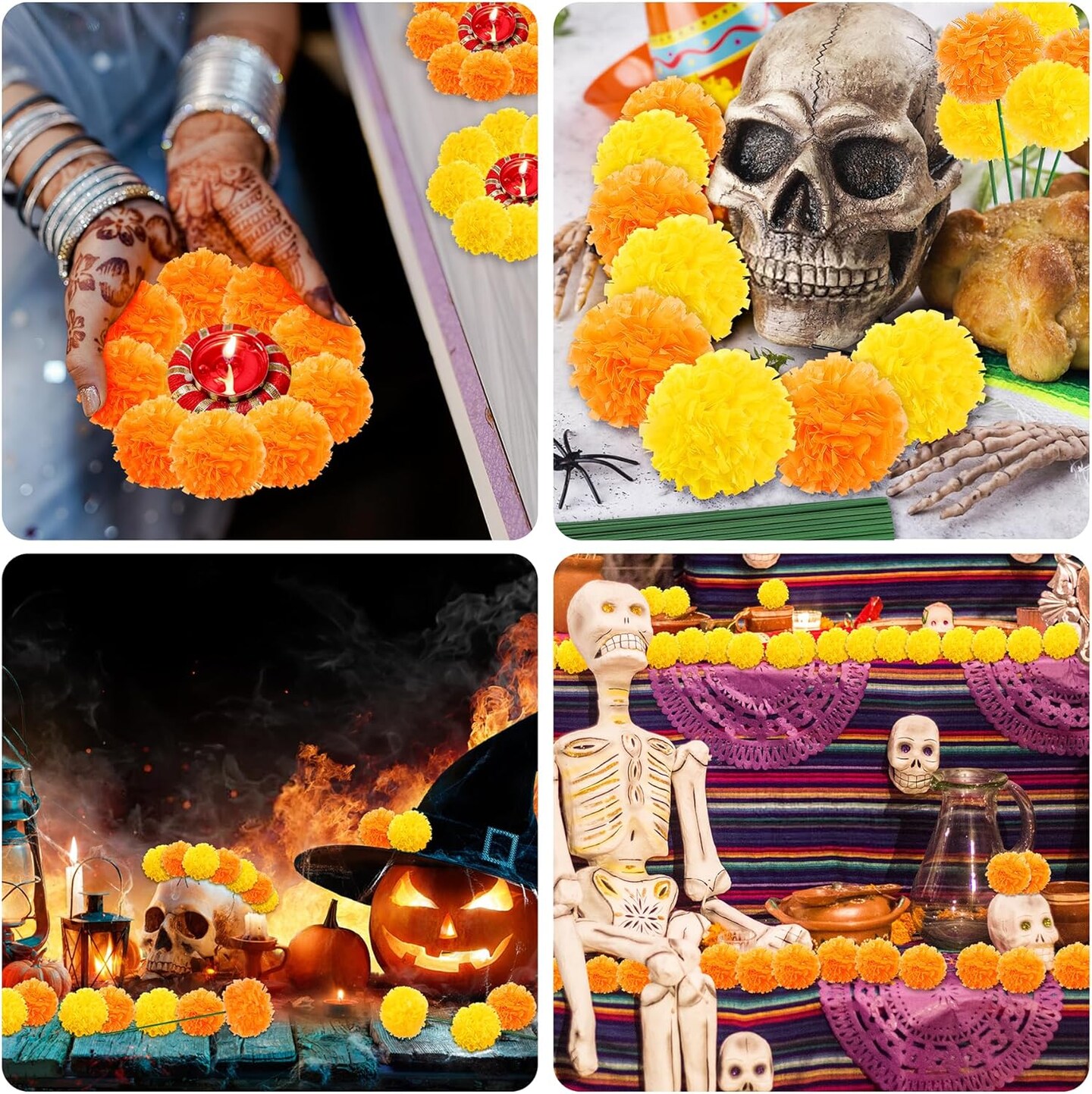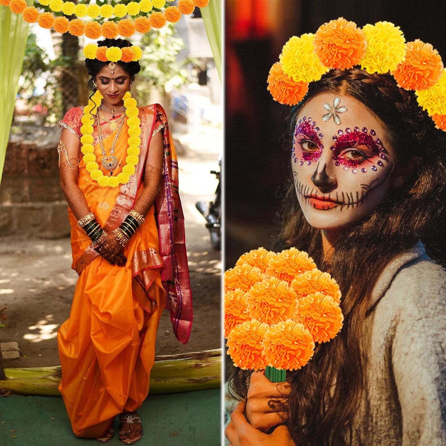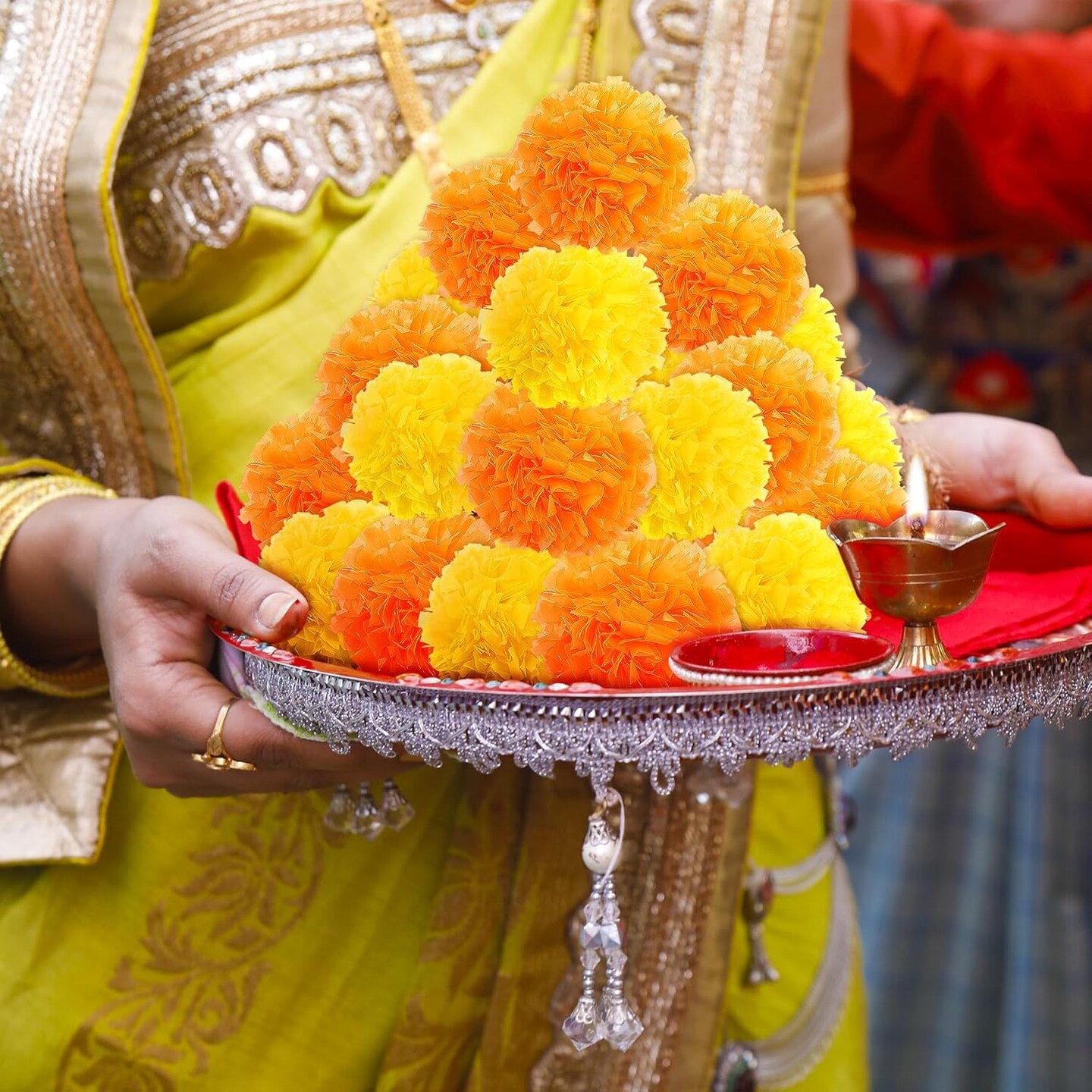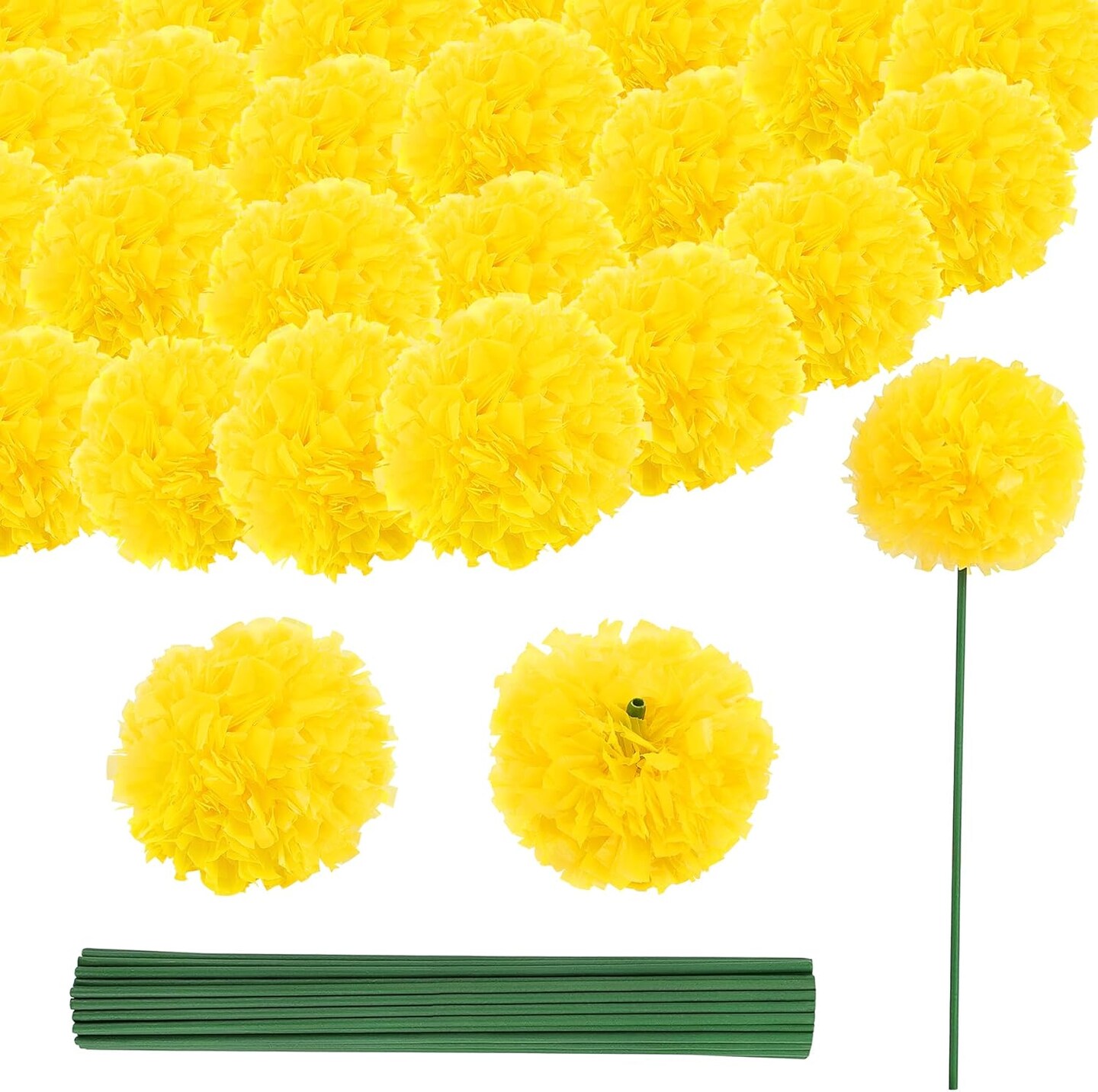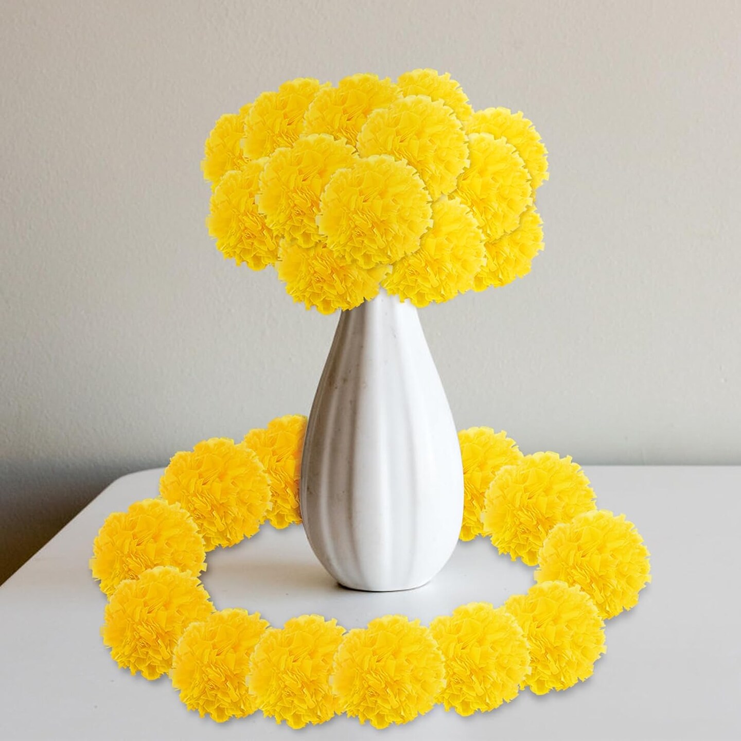 60PCS Diwali Marigold Flower Heads (60pcs-yellow) 1"D x 1"W x 1"H