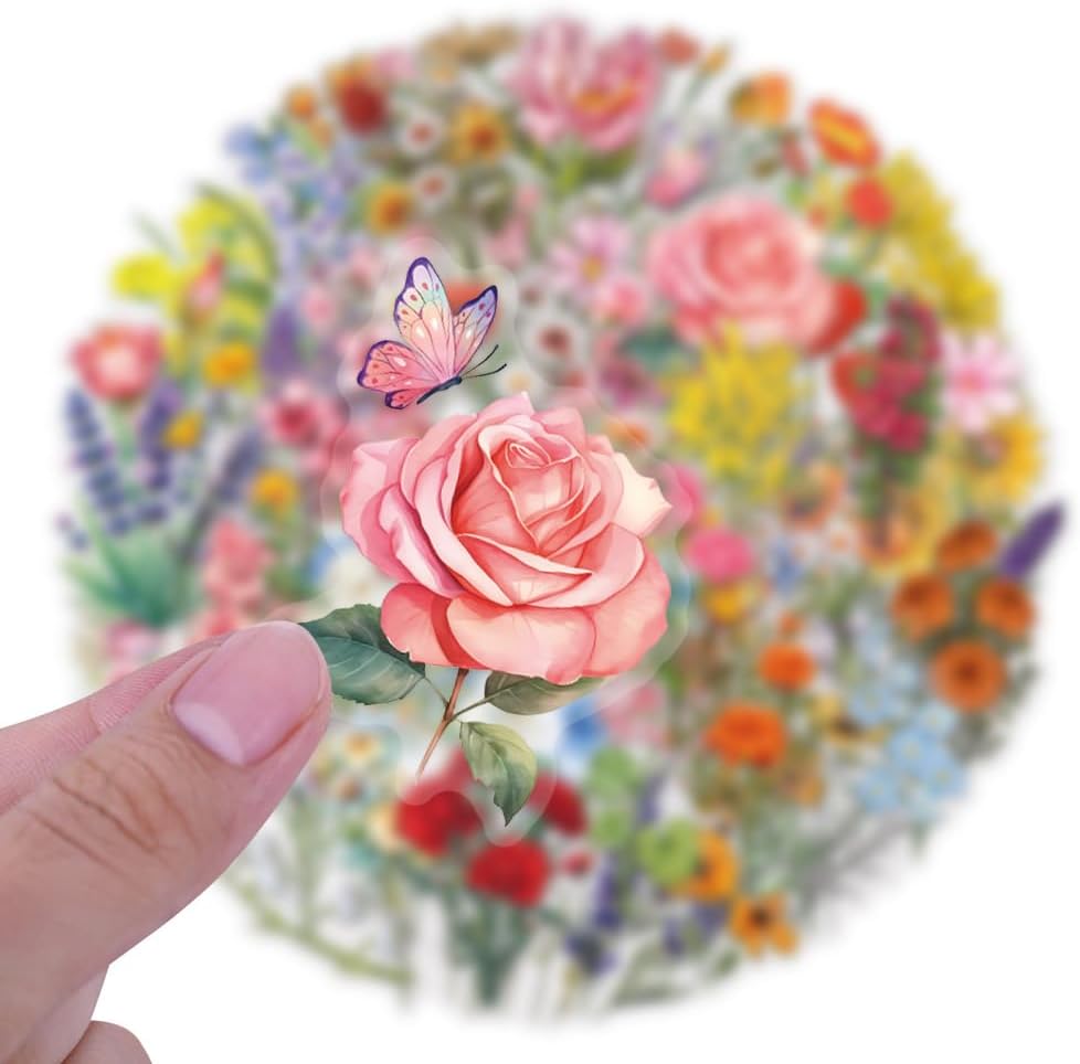 60PCS Floral Botanical Stickers Pack – Waterproof PET Aesthetic Flower Stickers for Journals, Planners, Scrapbooks, Laptops & DIY Craft Decoration