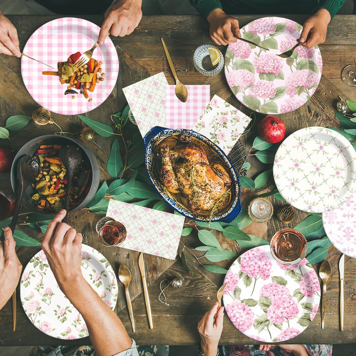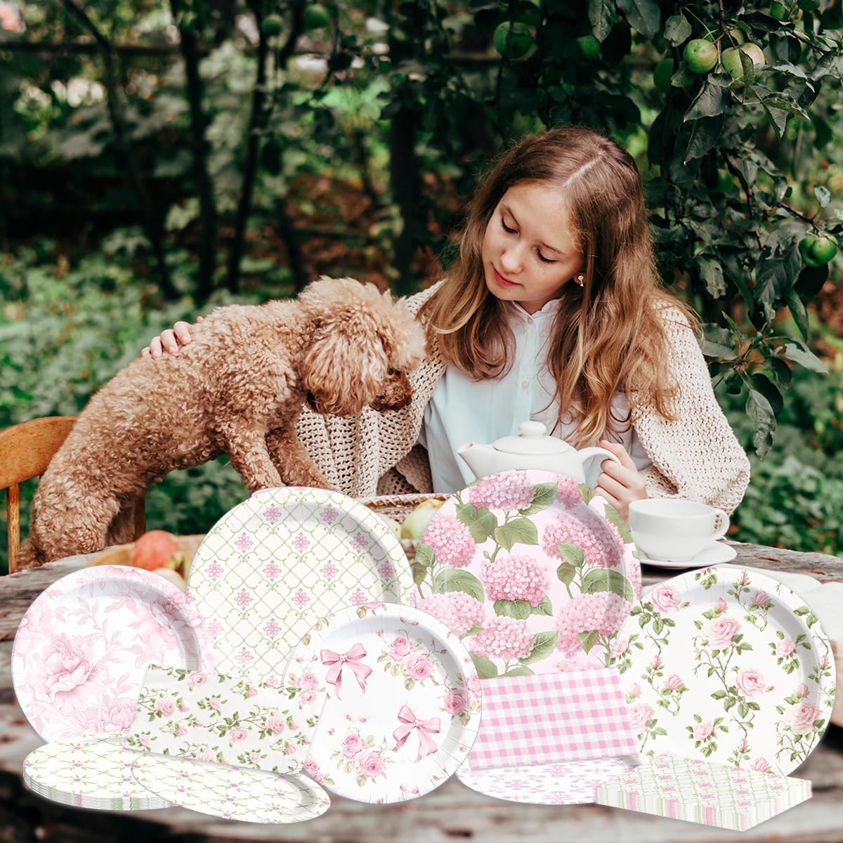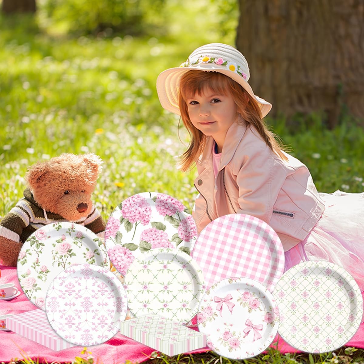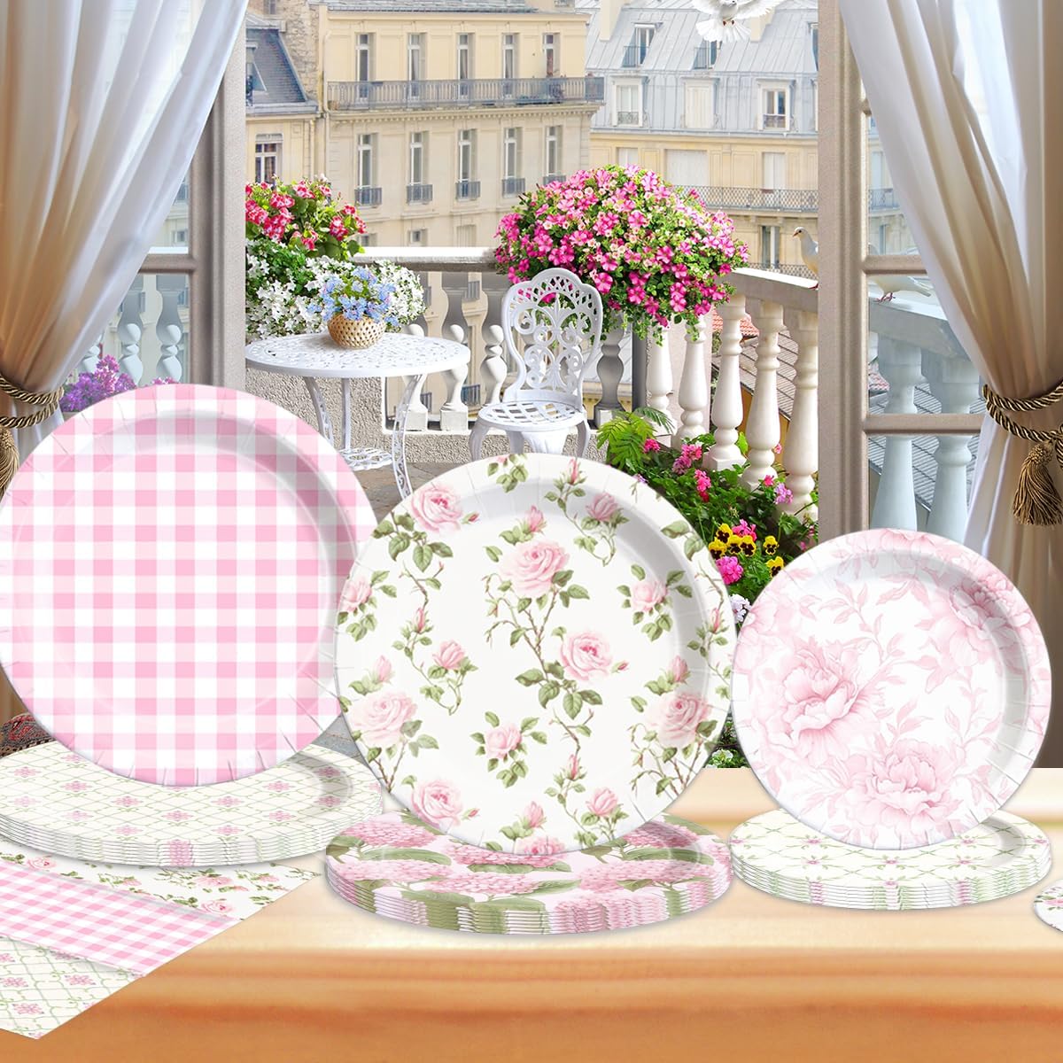 60Pcs Floral Plates and Napkins-Girls Pink