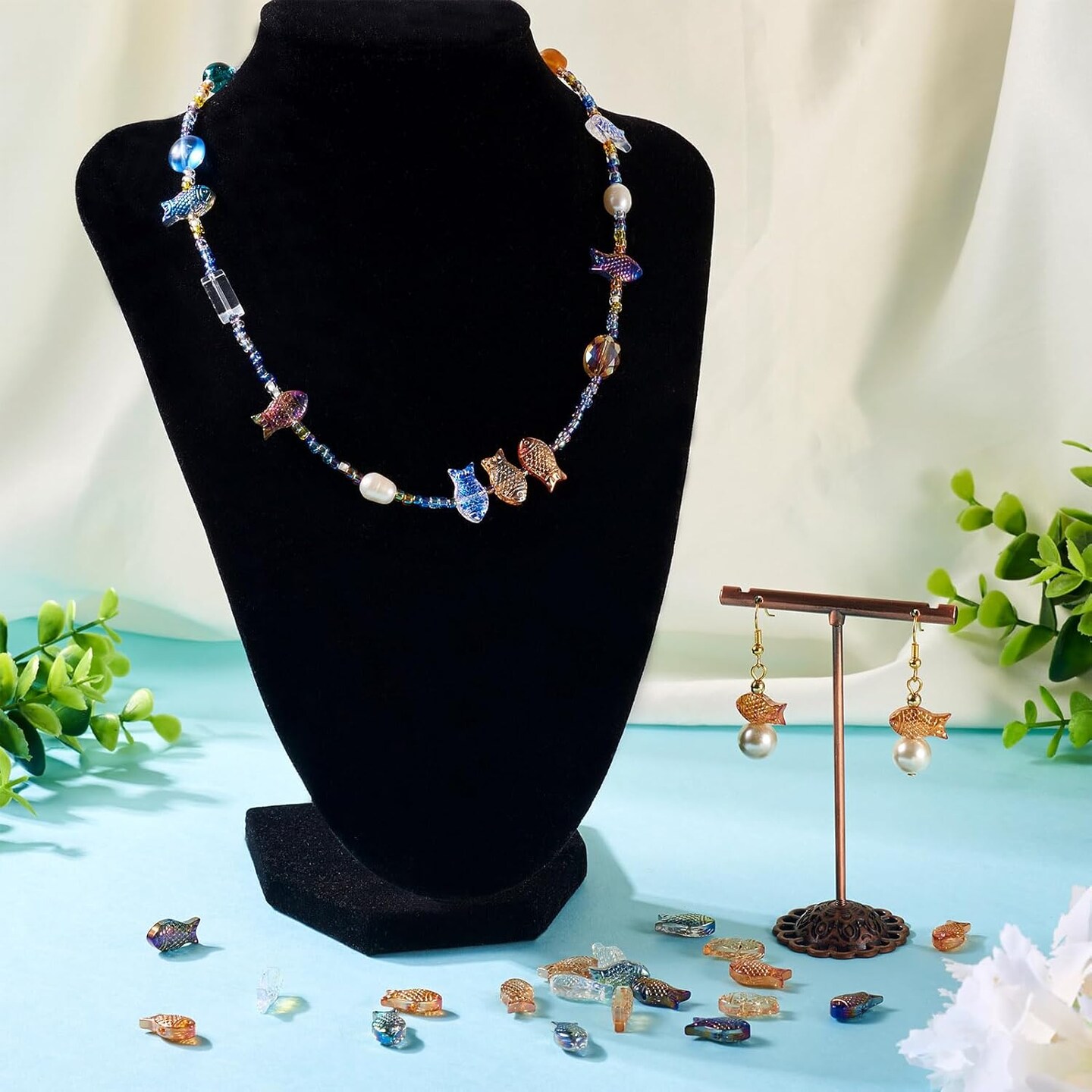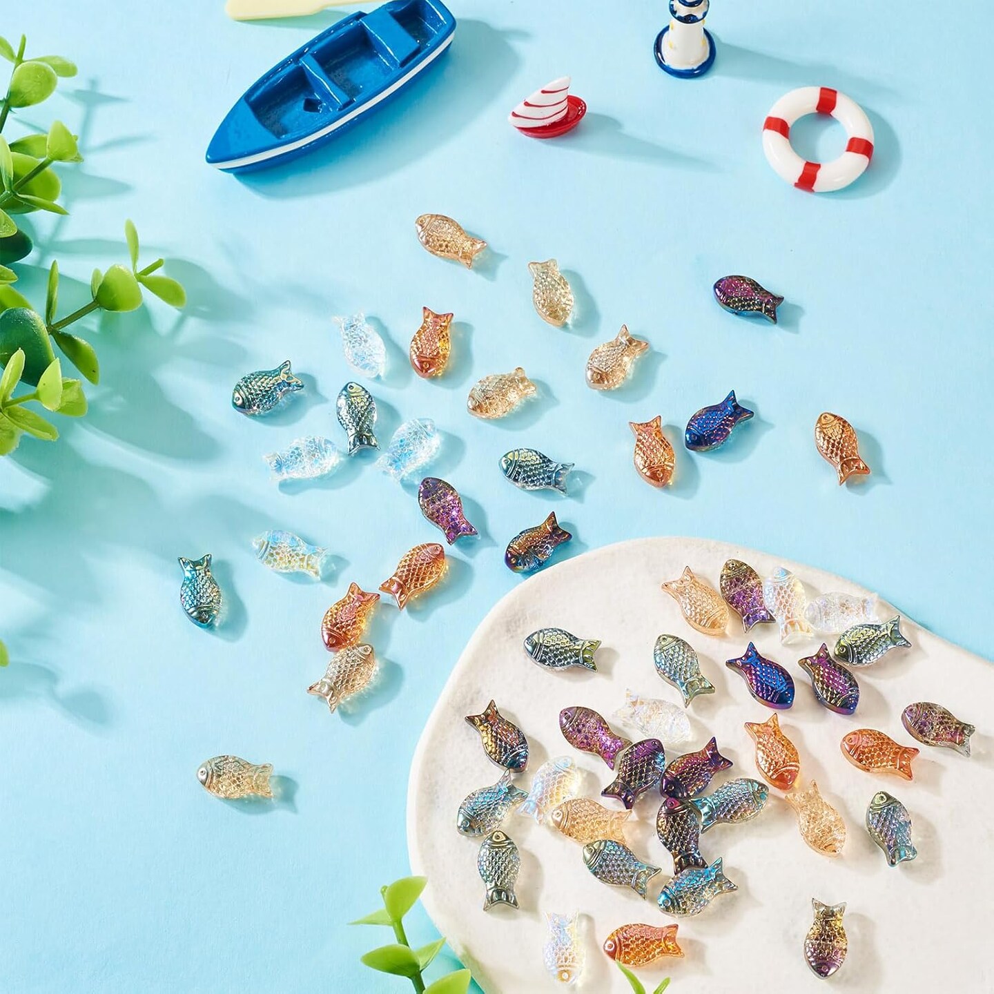 60Pcs Glass Fish Beads 6 Colors Clear Ocean Sea Glass (6 Colors, Fish)