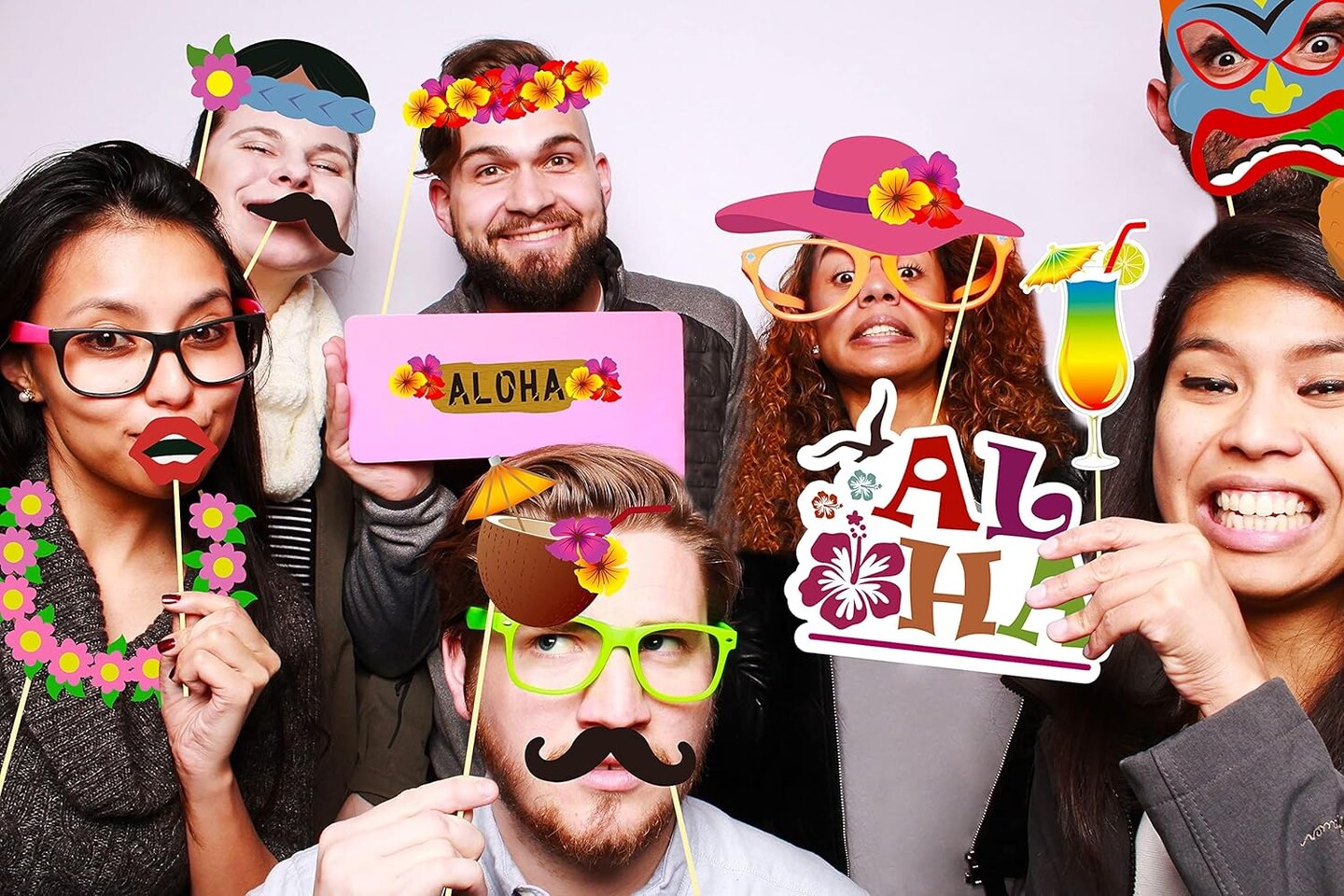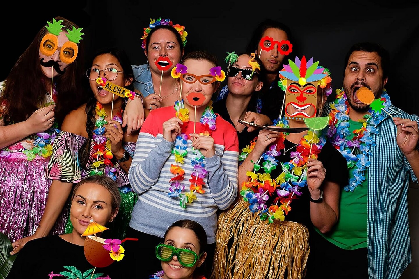60PCS Luau Photo Booth Props – Hawaiian & Tropical Party Decorations (Assembly Required)