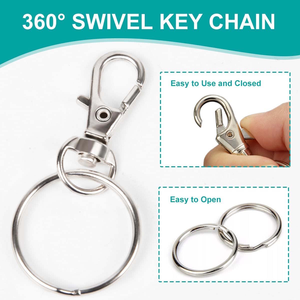 60PCS Metal Keychain Kit - 30 Swivel Lobster Claw Clasps & 30 Split Rings for Jewelry Making, DIY Crafts, Key Organizers (Silver)