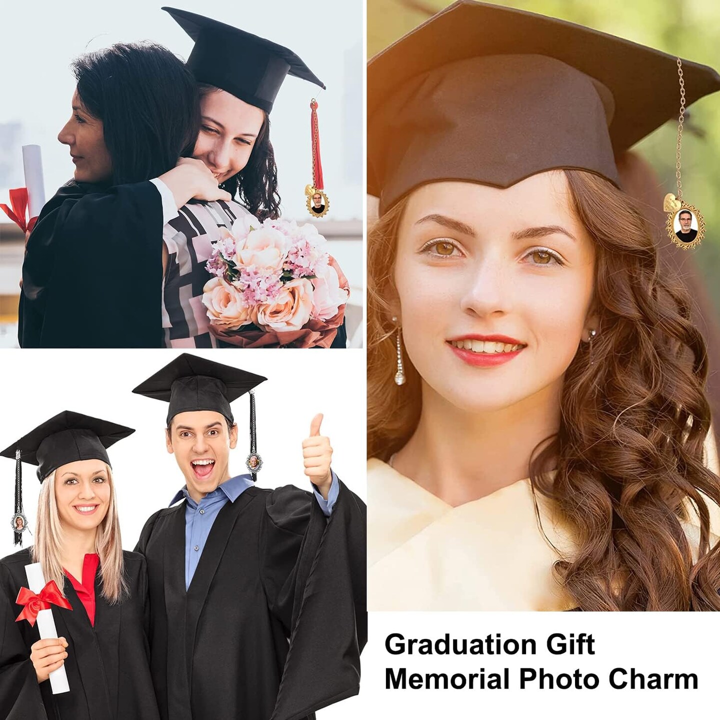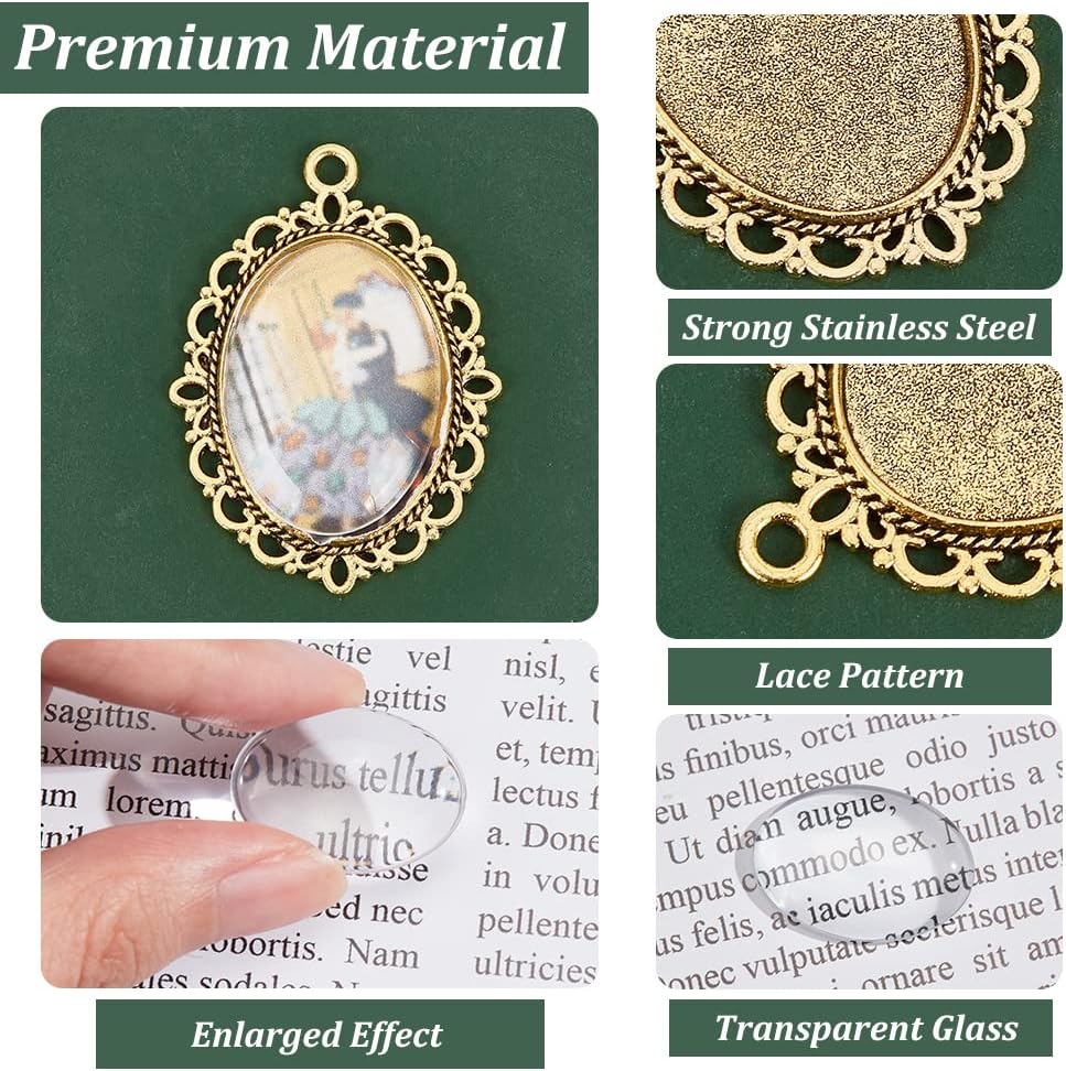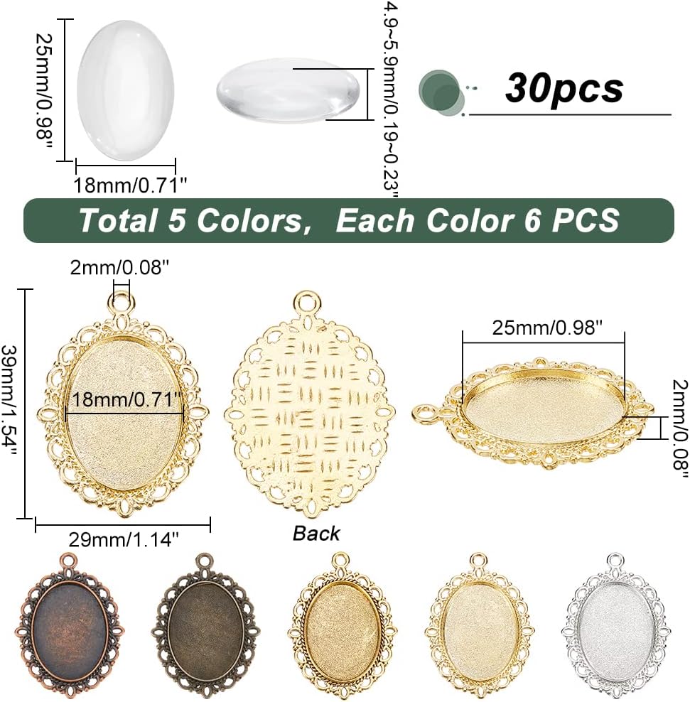60pcs Pendant Tray Kit, 30pcs 5 Colors Oval Pendant Blank Bezel Graduation Photo Charm 30pcs 25 x 18mm Glass Cabochon Dome Tiles Clear Cameo Memorial Photo Pendant for Wedding Bouquet