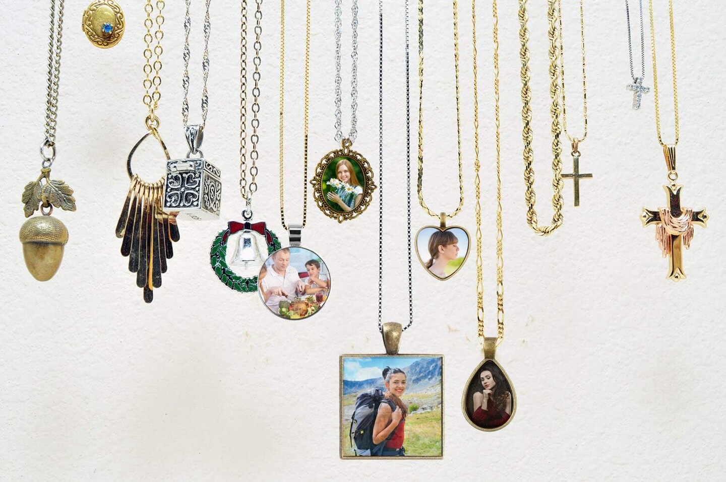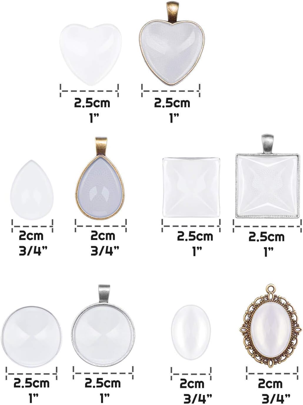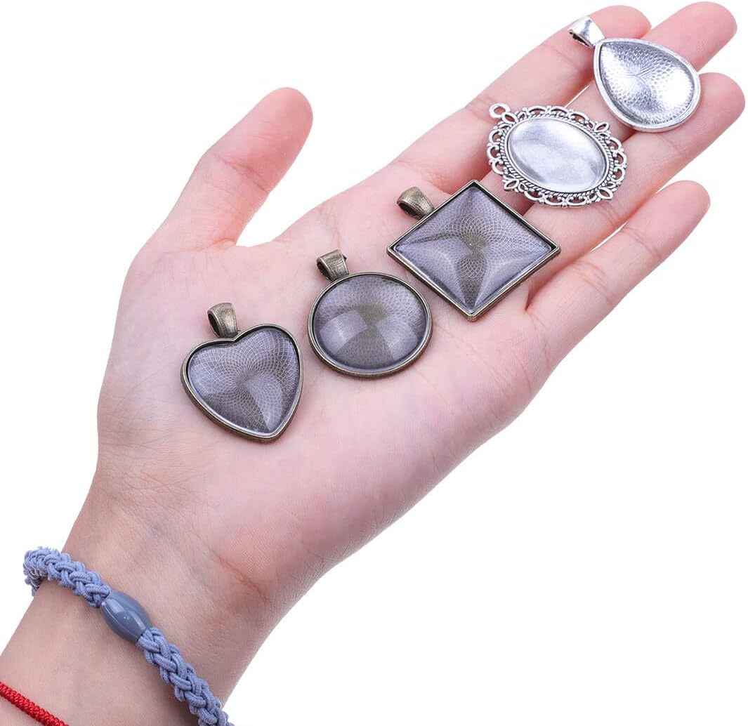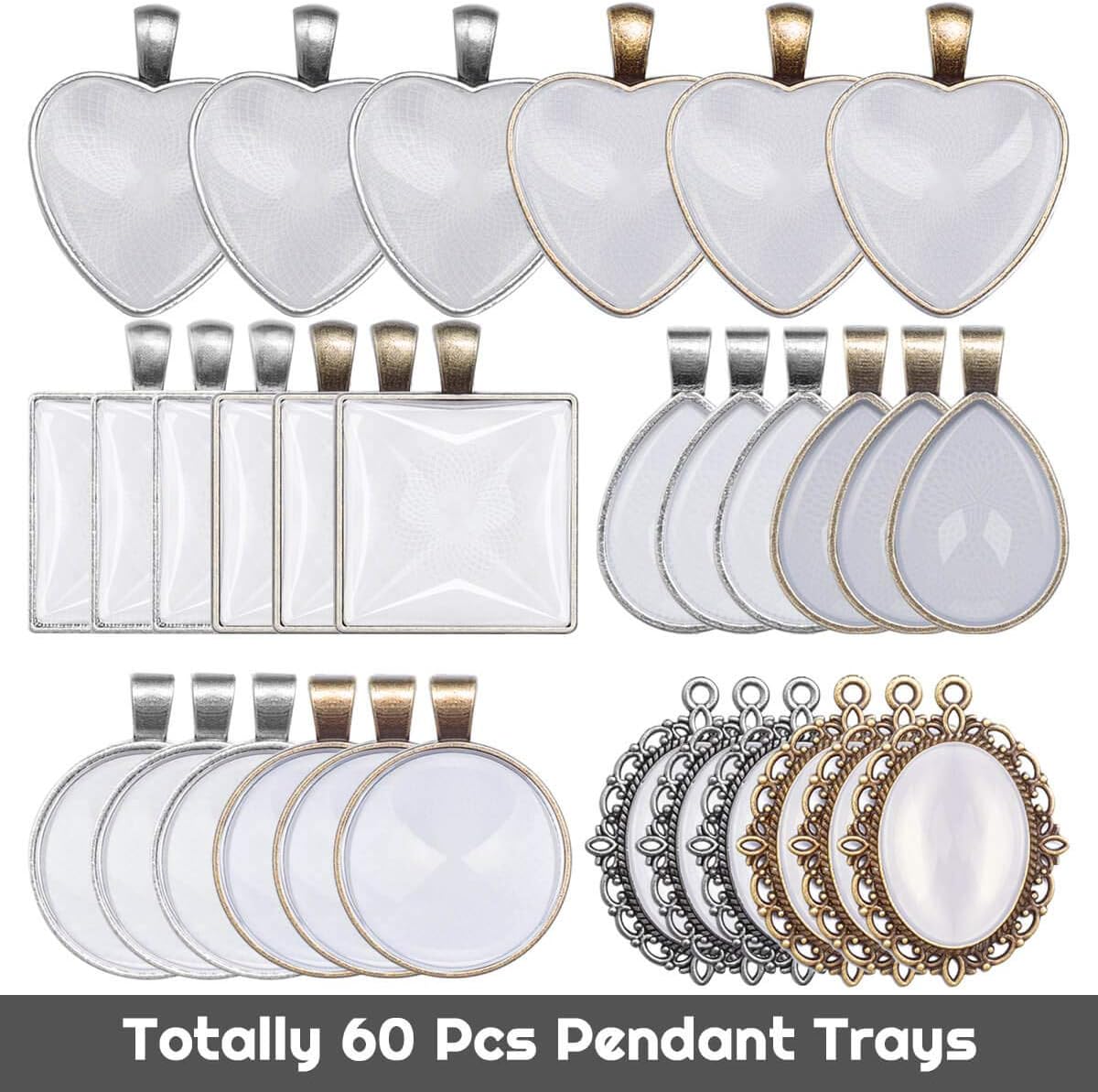 60Pcs Pendant Trays, Bezel Pendant Trays Blanks with Glass Cabochons for Pendants Making and Jewelry Making, 5 Styles