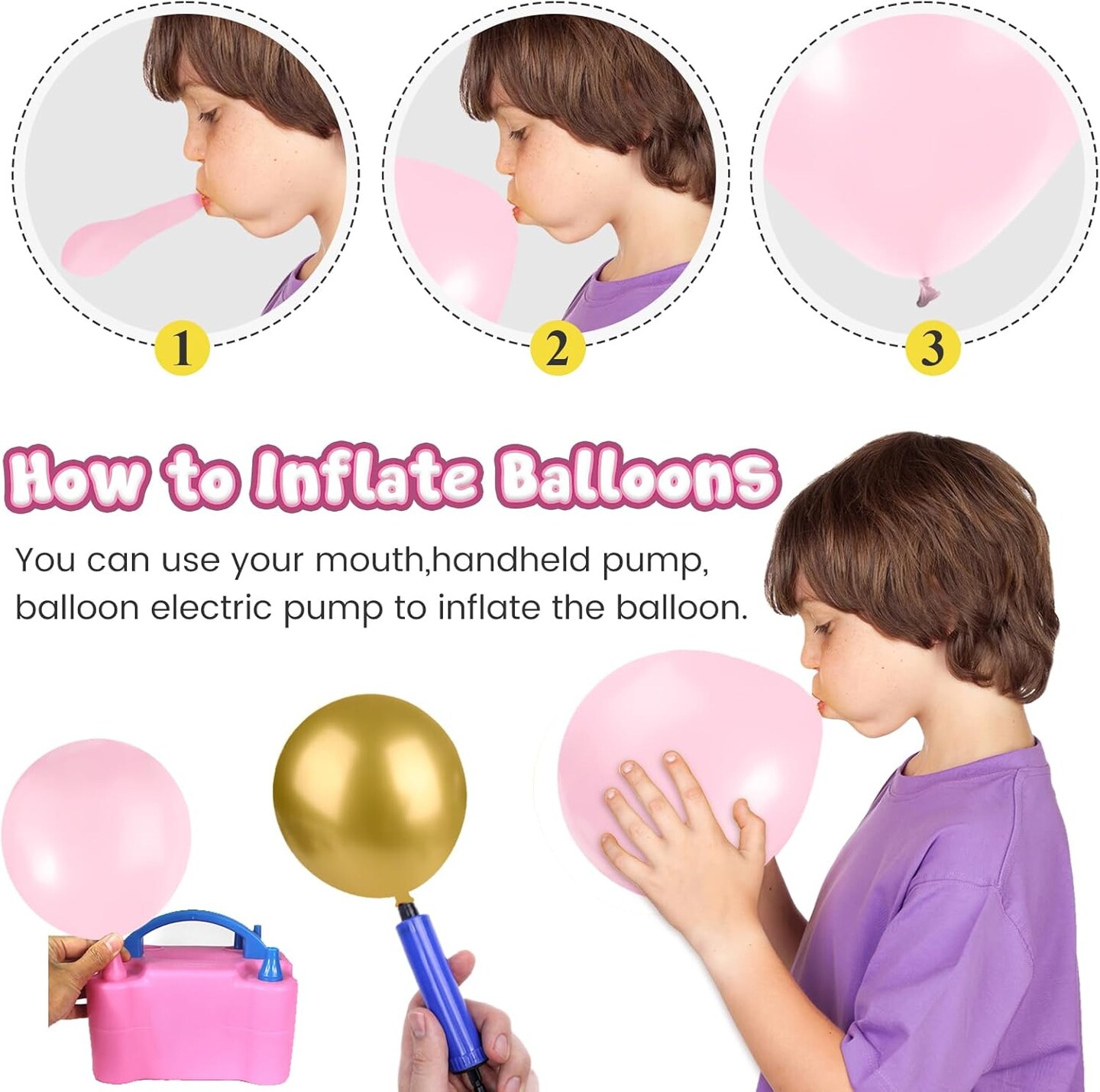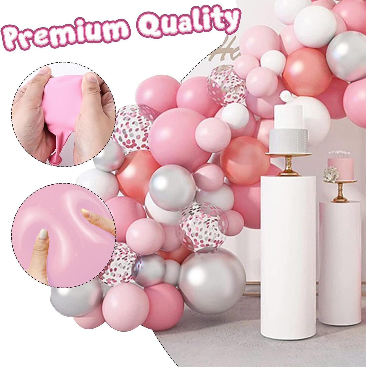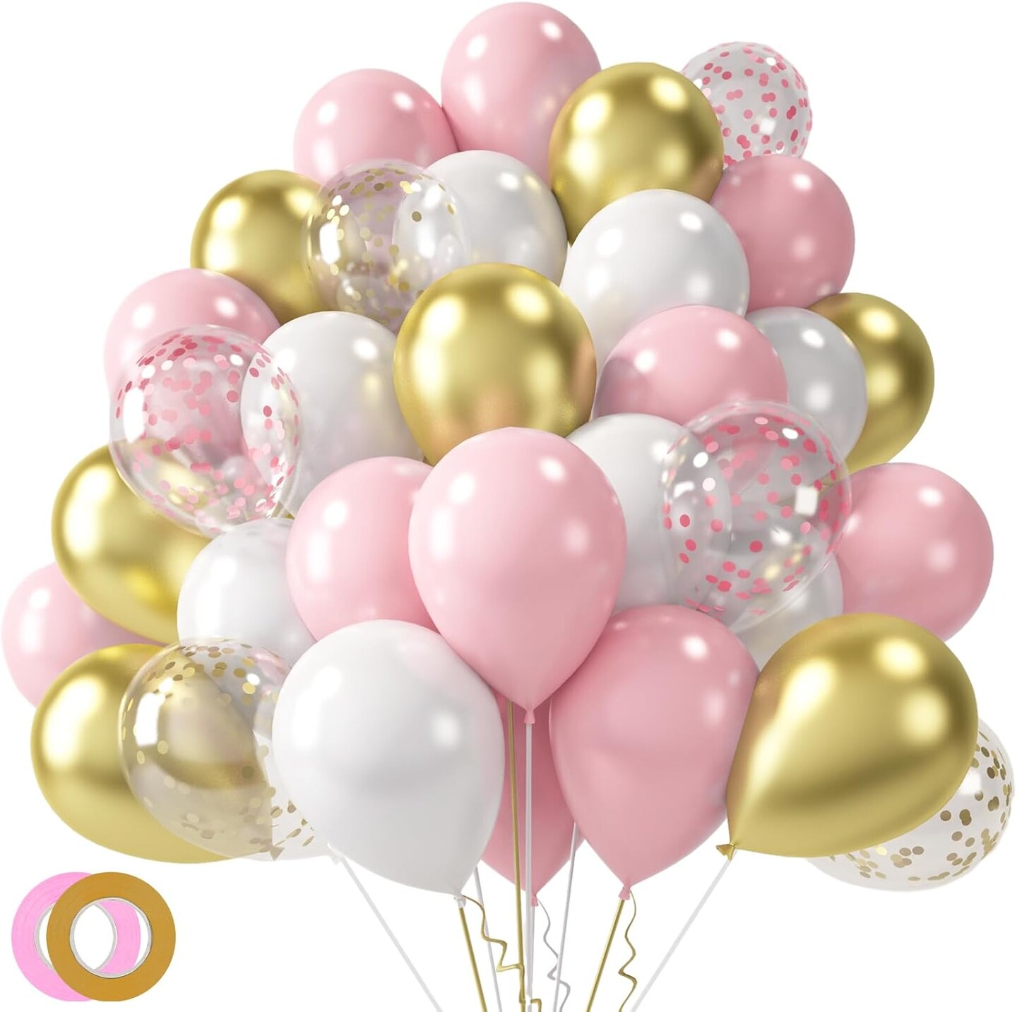 60PCS Pink Balloons, 12 Inches White Gold Confetti Latex Balloons with Ribbon Thicken