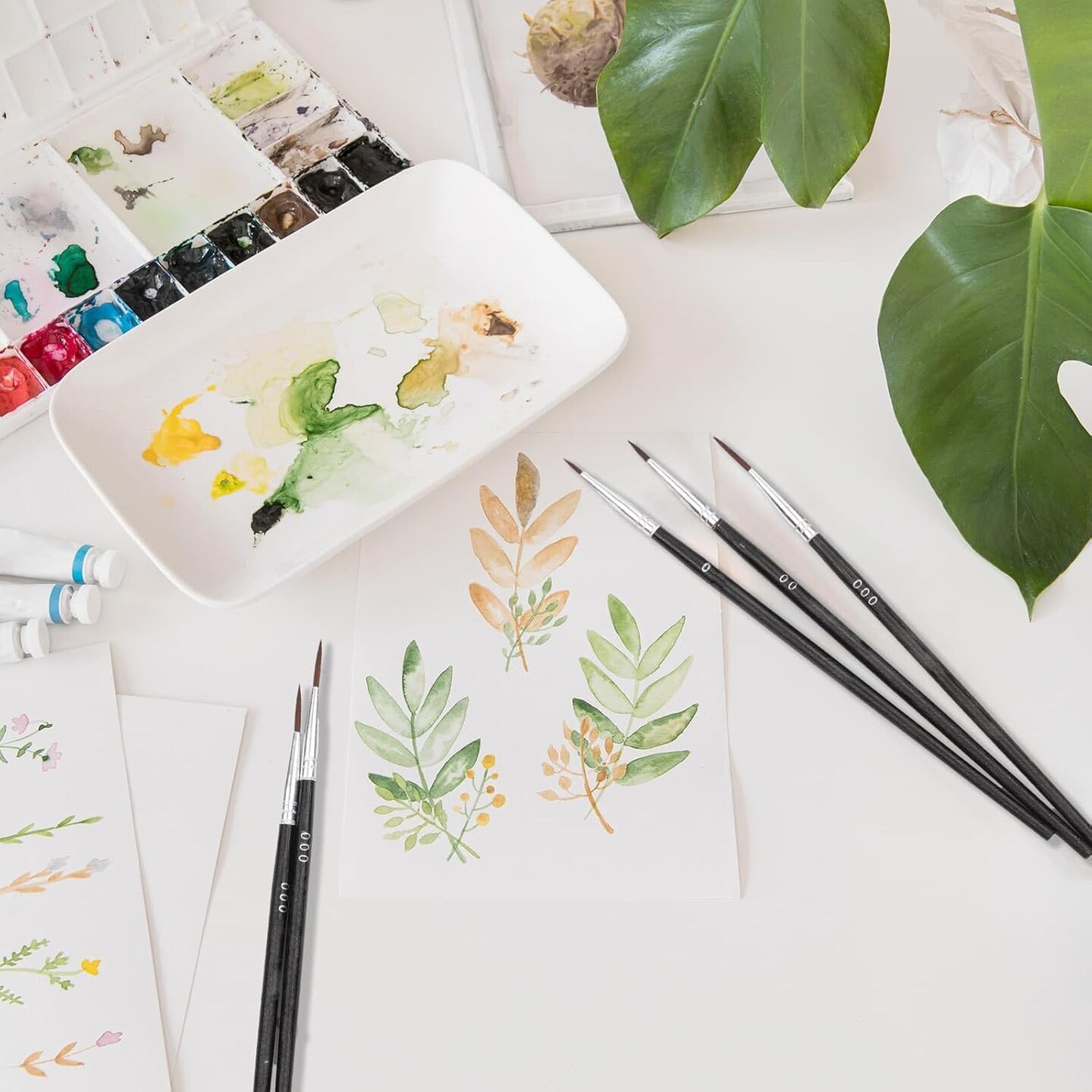 60Pcs Thin Detail Paint Brushes Fine Tip Paint Brushes Set with 3 Size #000#00#0 Liner brush for Miniature 40k Model Crafts Watercolor Acrylics Oil