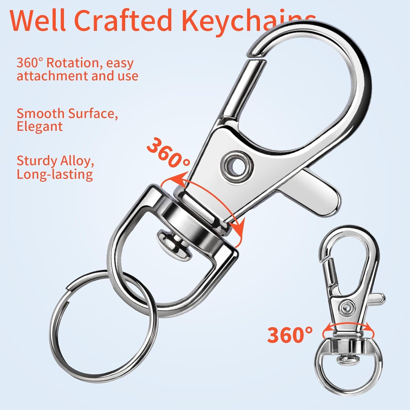60-Piece Keychain Making Kit – Swivel Snap Hooks, Metal Split Rings, Key Rings & Clips for Keys, Jewelry, Crafts, and DIY Projects, Silver