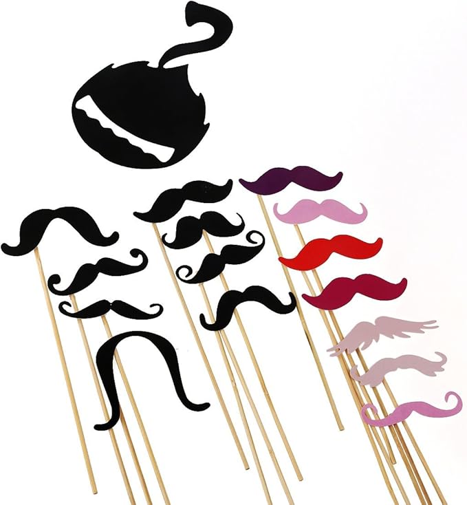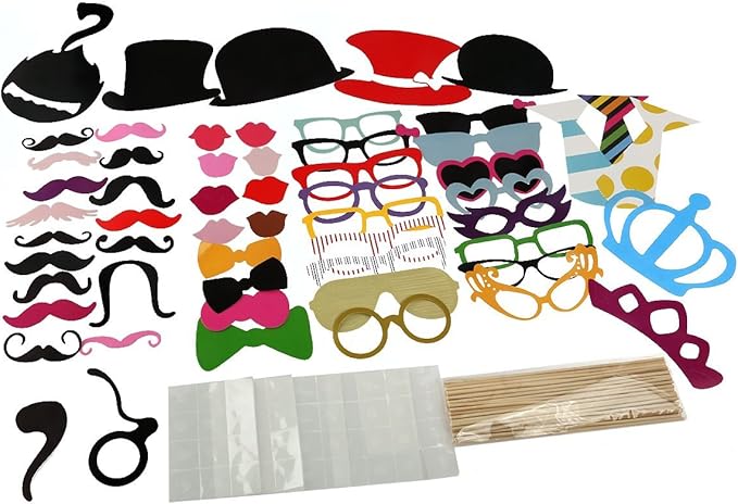 60-Piece Photo Booth Props DIY Kit – Wedding, Birthday & Family Reunion Party Favors – Includes Mustaches on a Stick, Hats, Glasses, Bowties & Lips – Fun Dress-Up Accessories for Kids & Adults – Premium Party Decorations