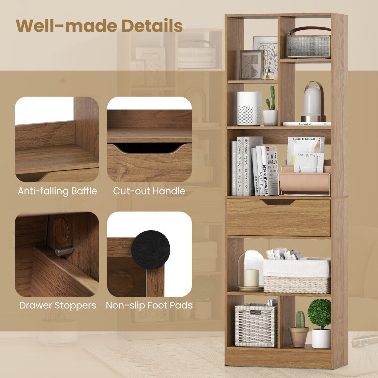 61 Inch Tall Freestanding Bookcase with 8-Cube Storage and Drawer