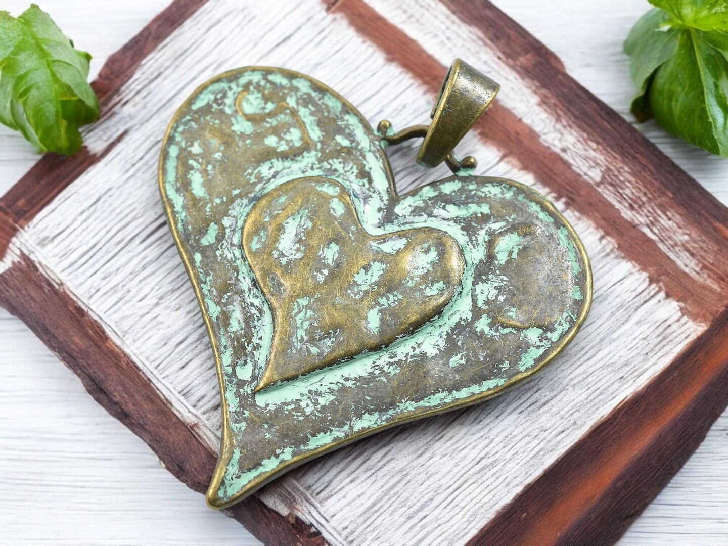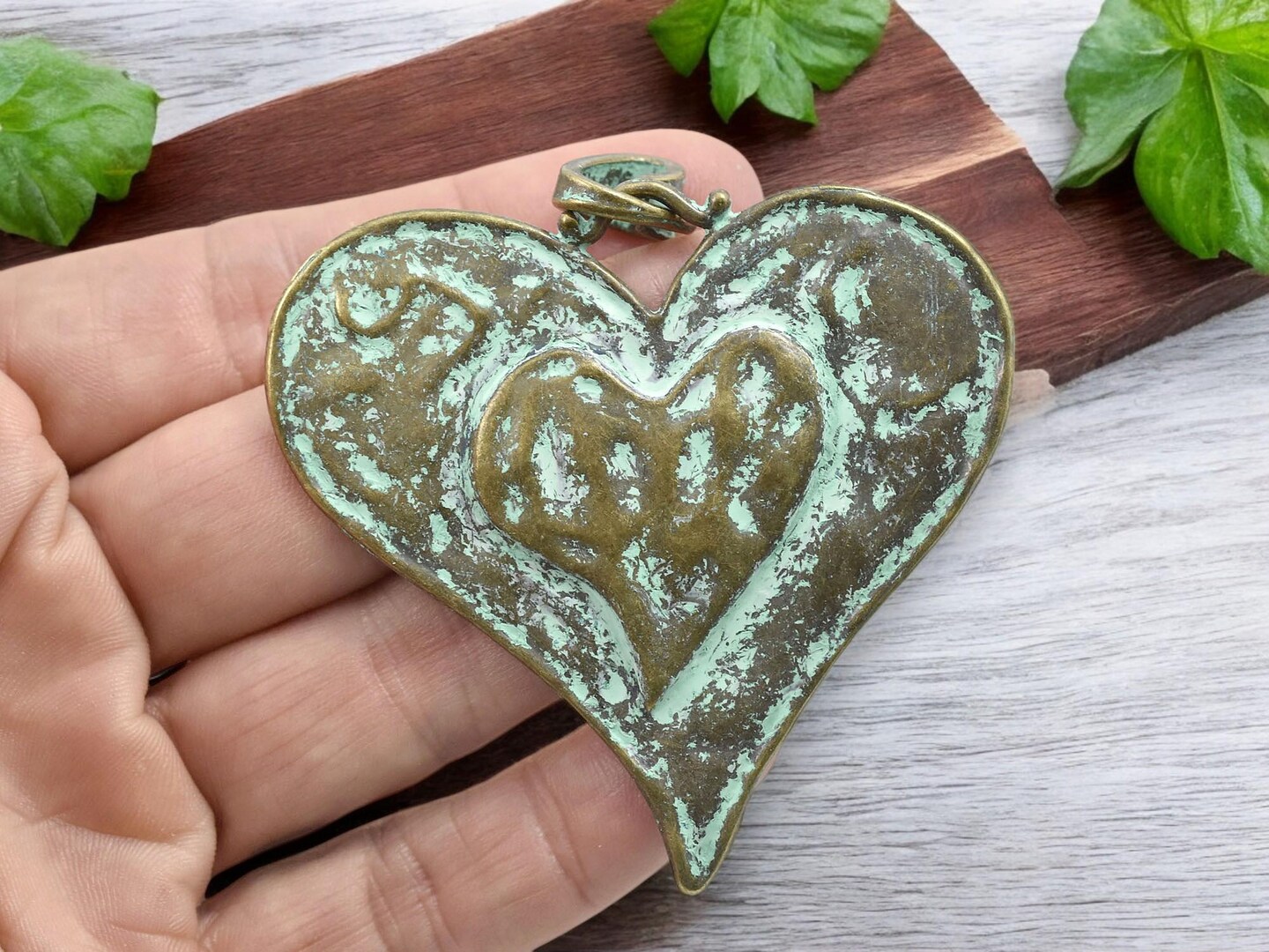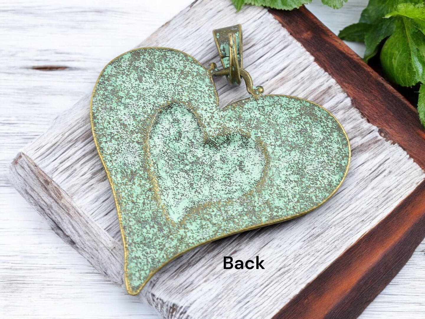 61x65mm Green Verdigris Finished Antique Bronze Heart Pendant w/Bail
