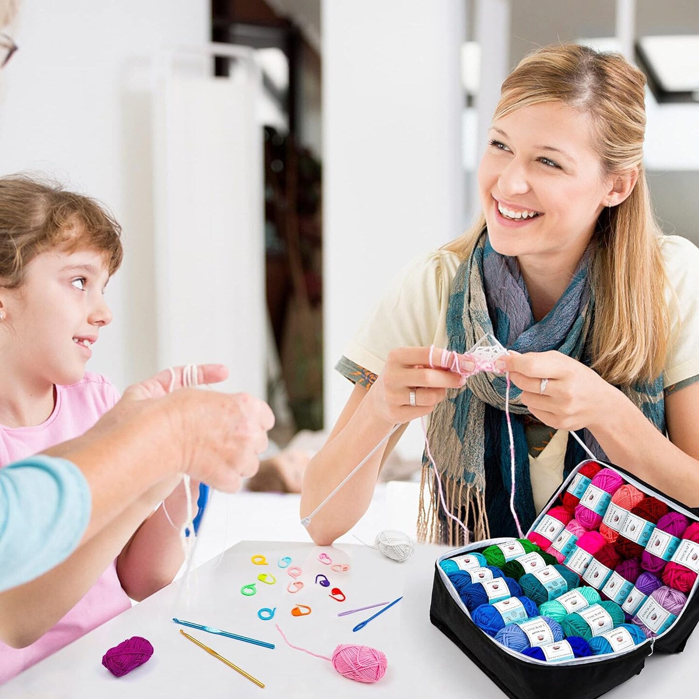 62 Acrylic Yarn Skeins (2170 Yards) Knitting & Crochet Kit – Includes 2 Crochet Hooks, 2 Weaving Needles, 10 Stitch Markers – Perfect Beginner Set for Adults & Kids