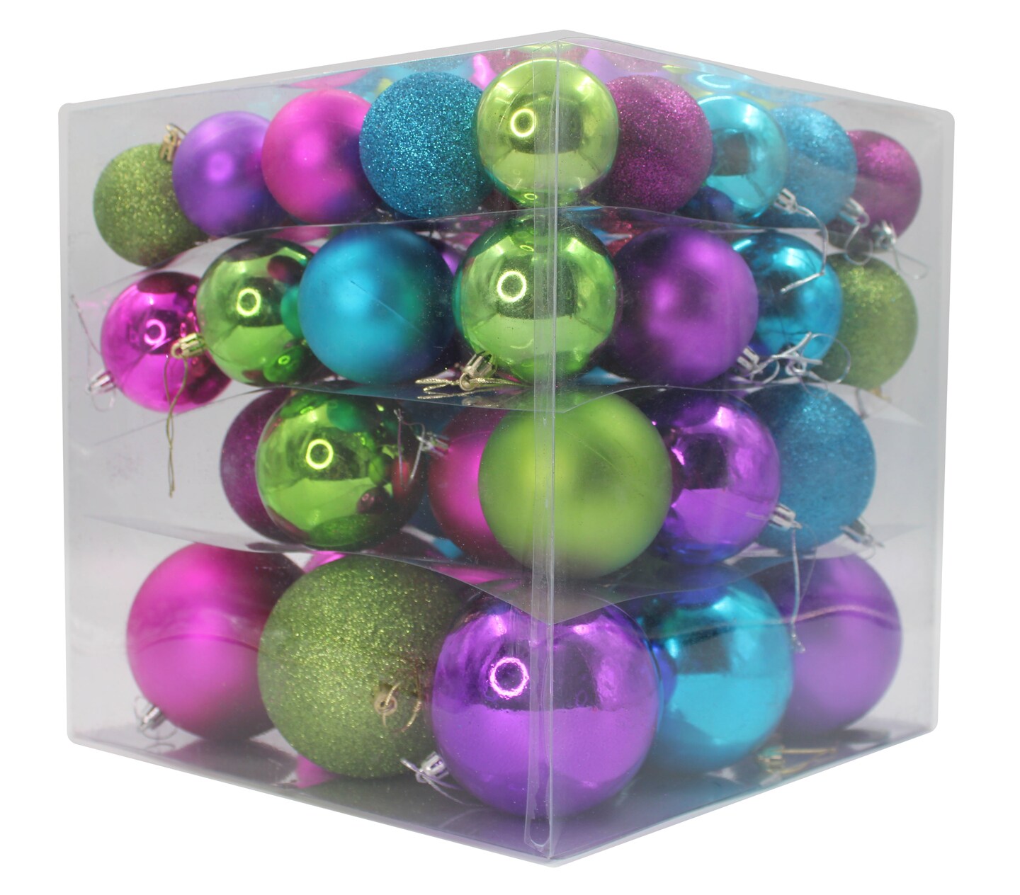 62 Pack Pink, Aqua, Purple, Lime Green Ball Ornaments