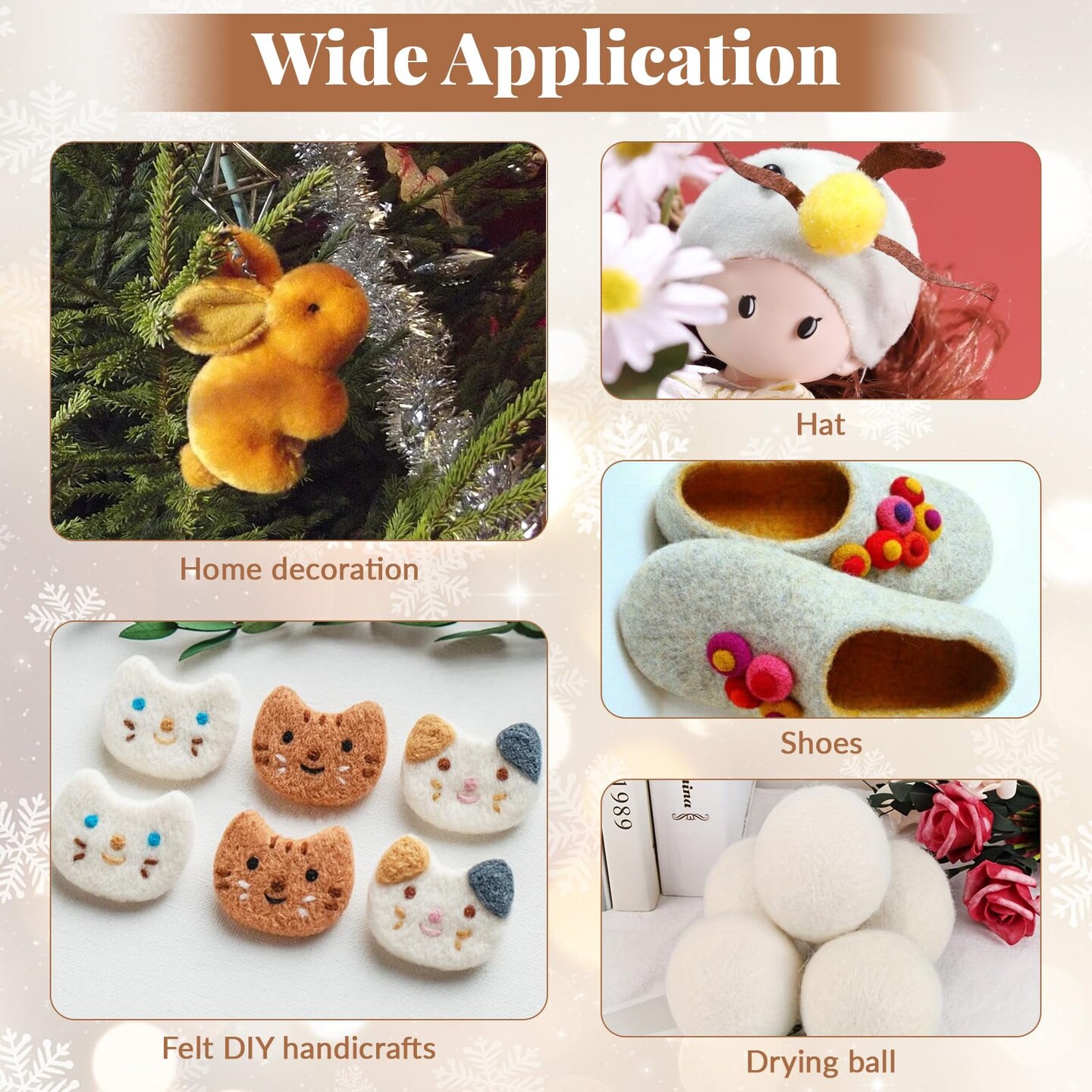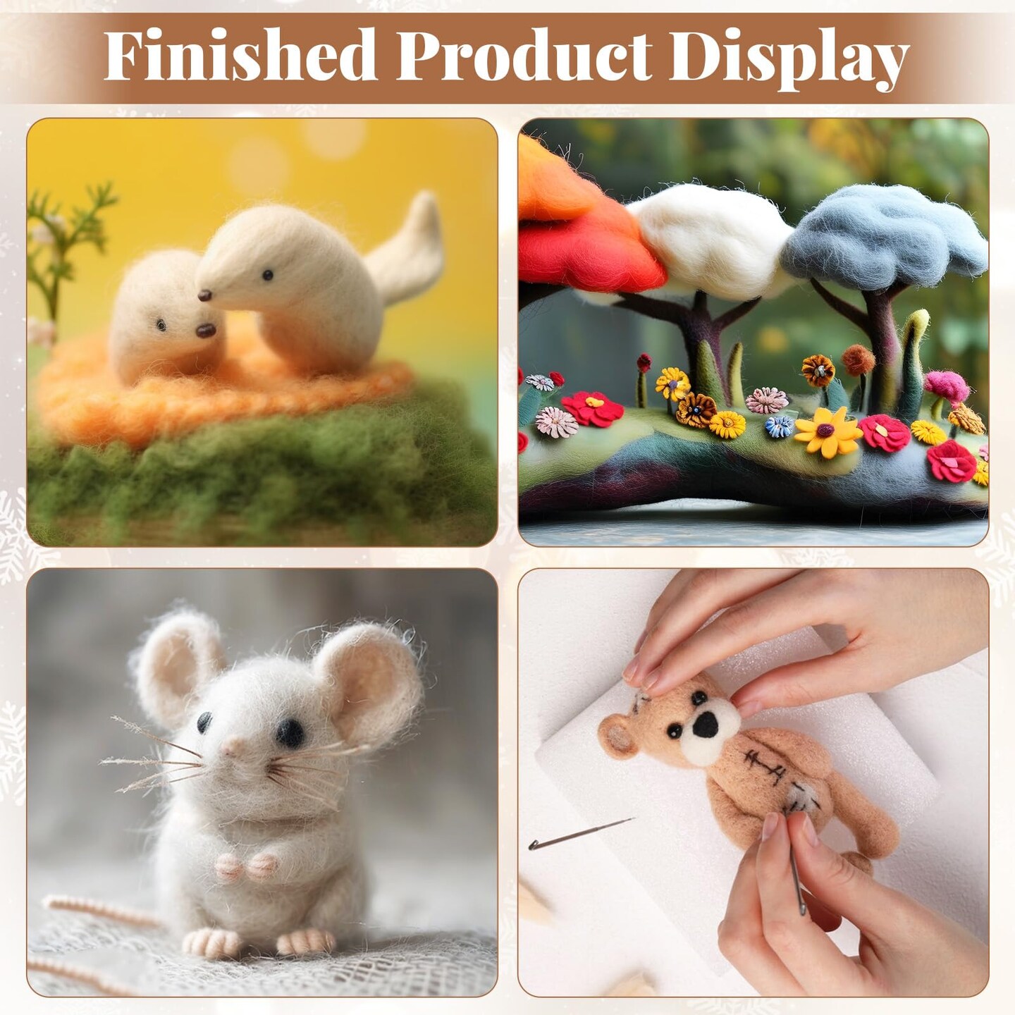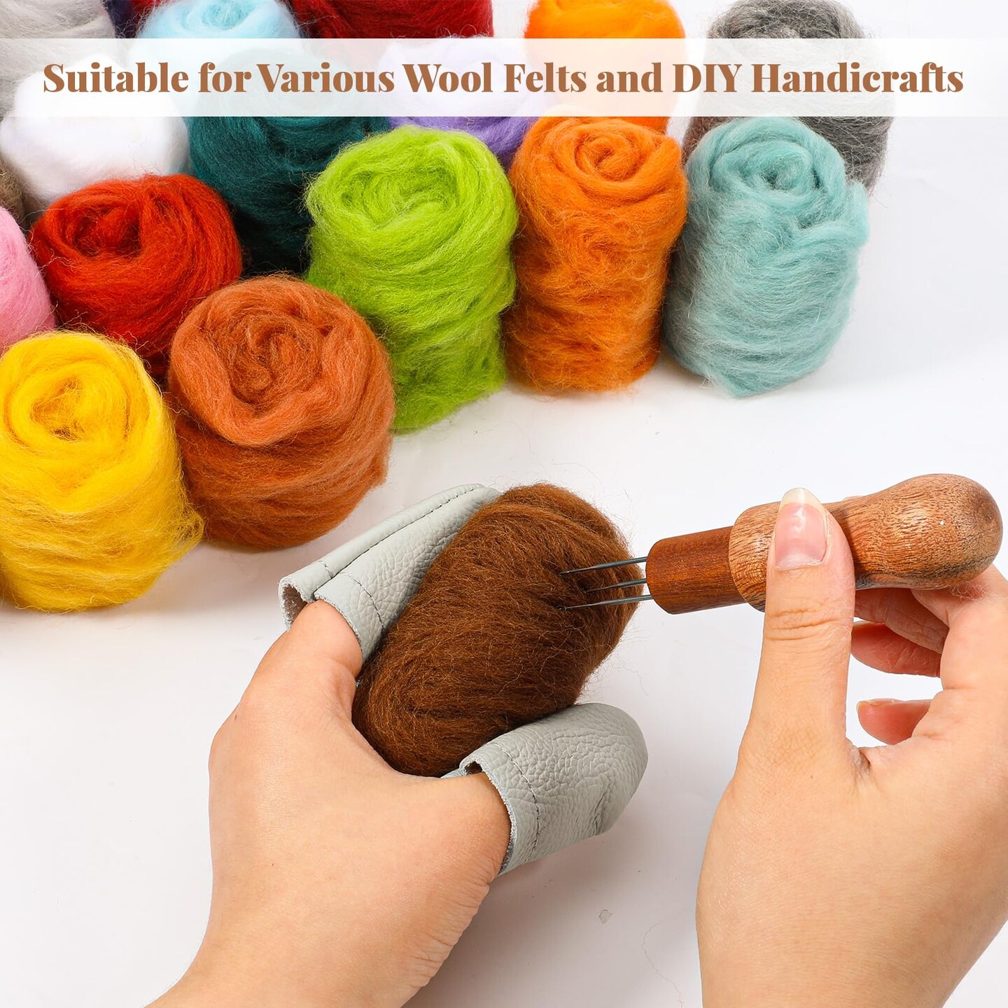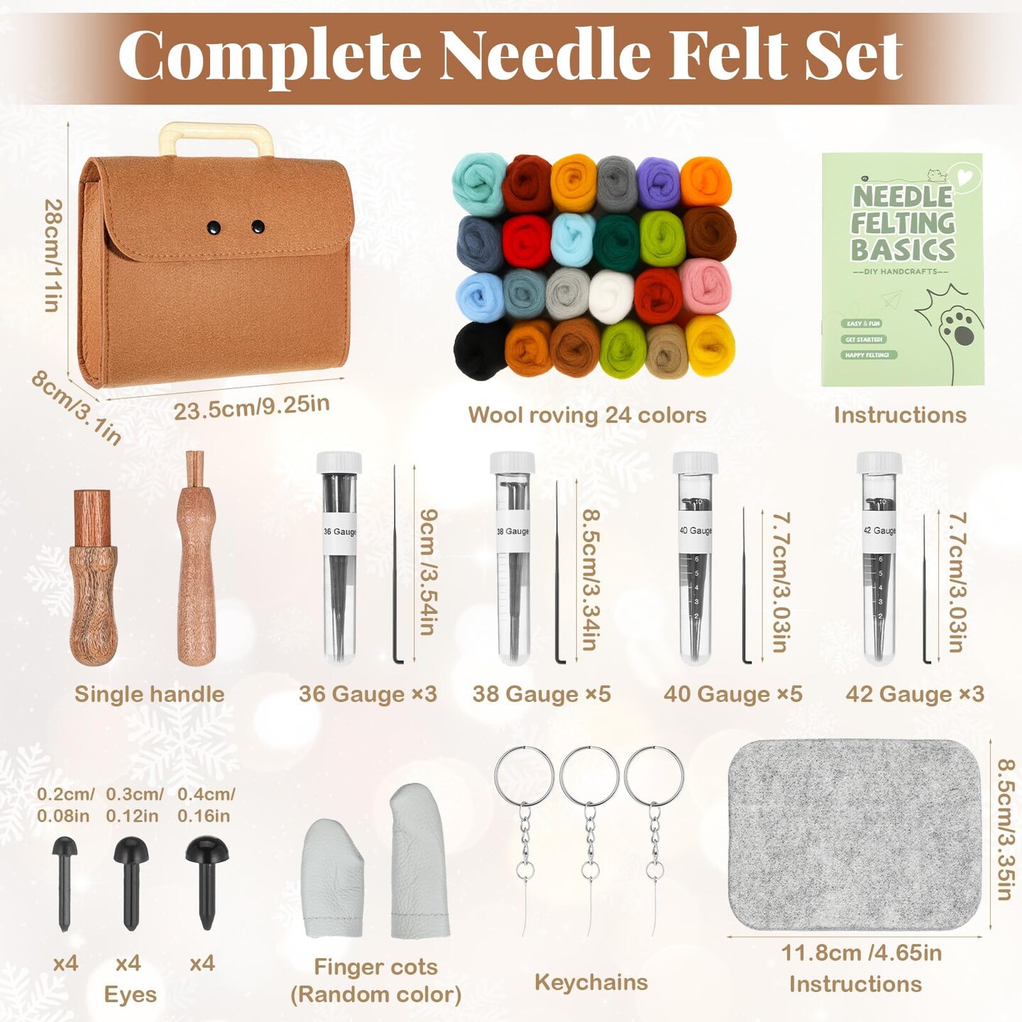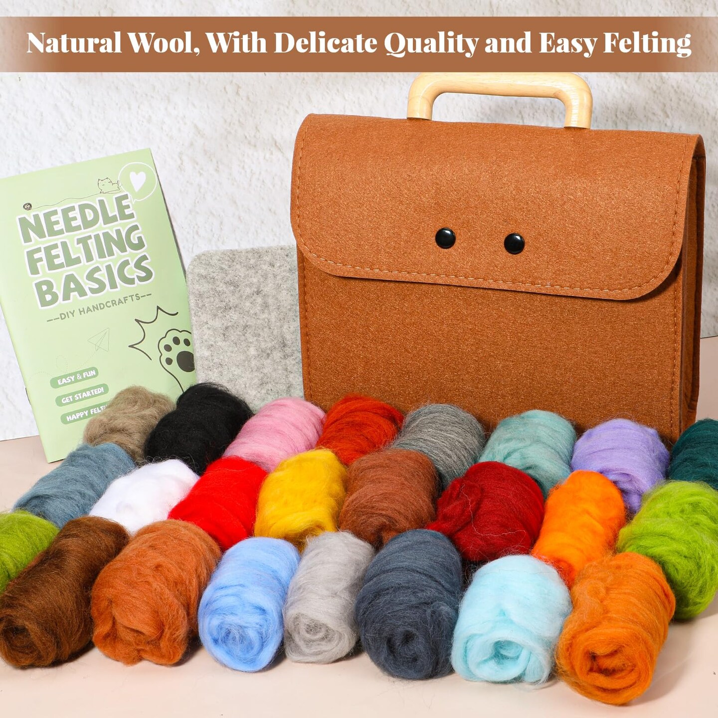 62 Pcs Needle Felting Kit, Felting Kits for Beginners Adult Including 24 Colors Wool Roving, Felt Needles, Felt Pad, Needle Handles, Finger Beds, Keychains, Fake Eyes, Storage Bag, Instruction