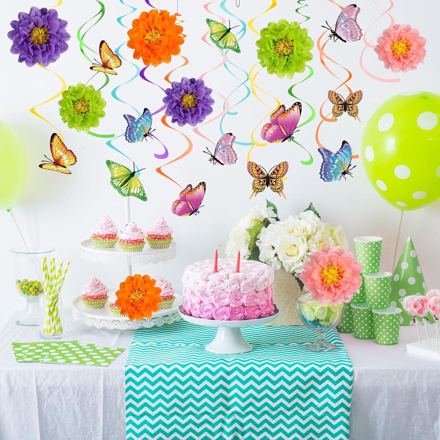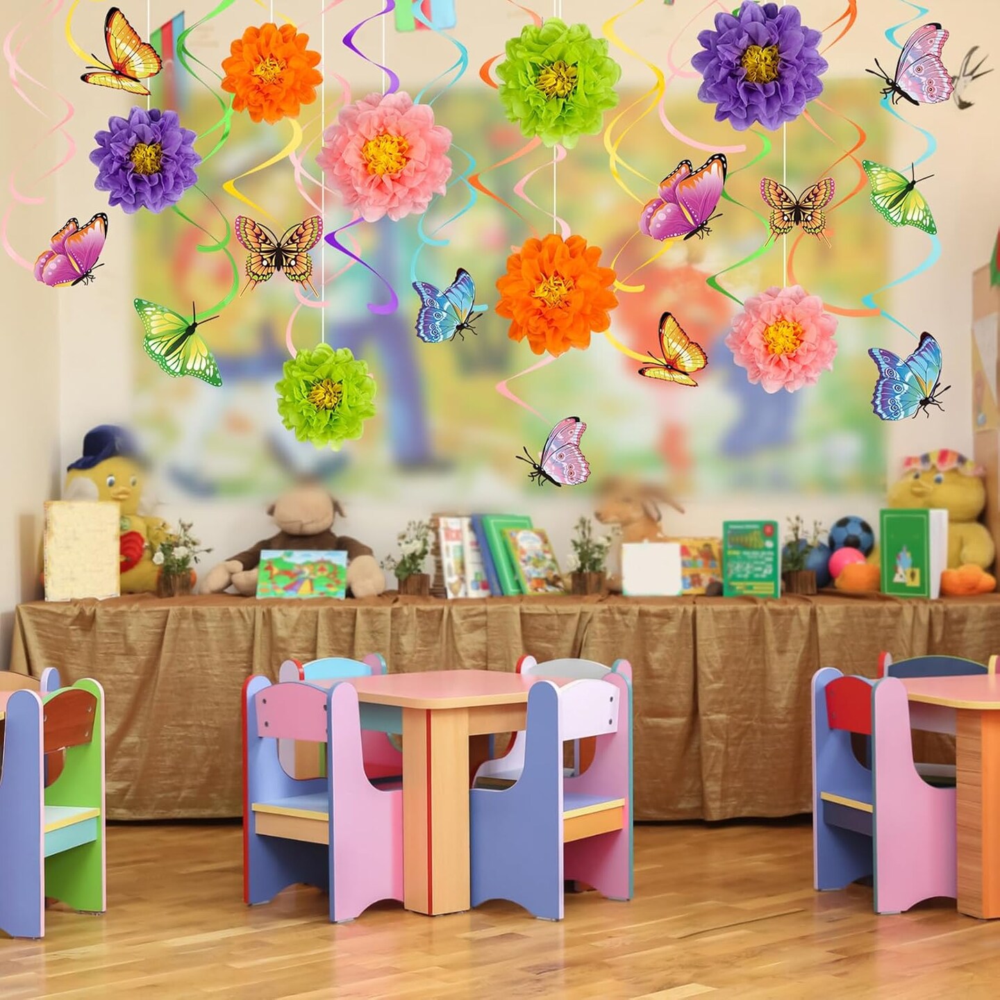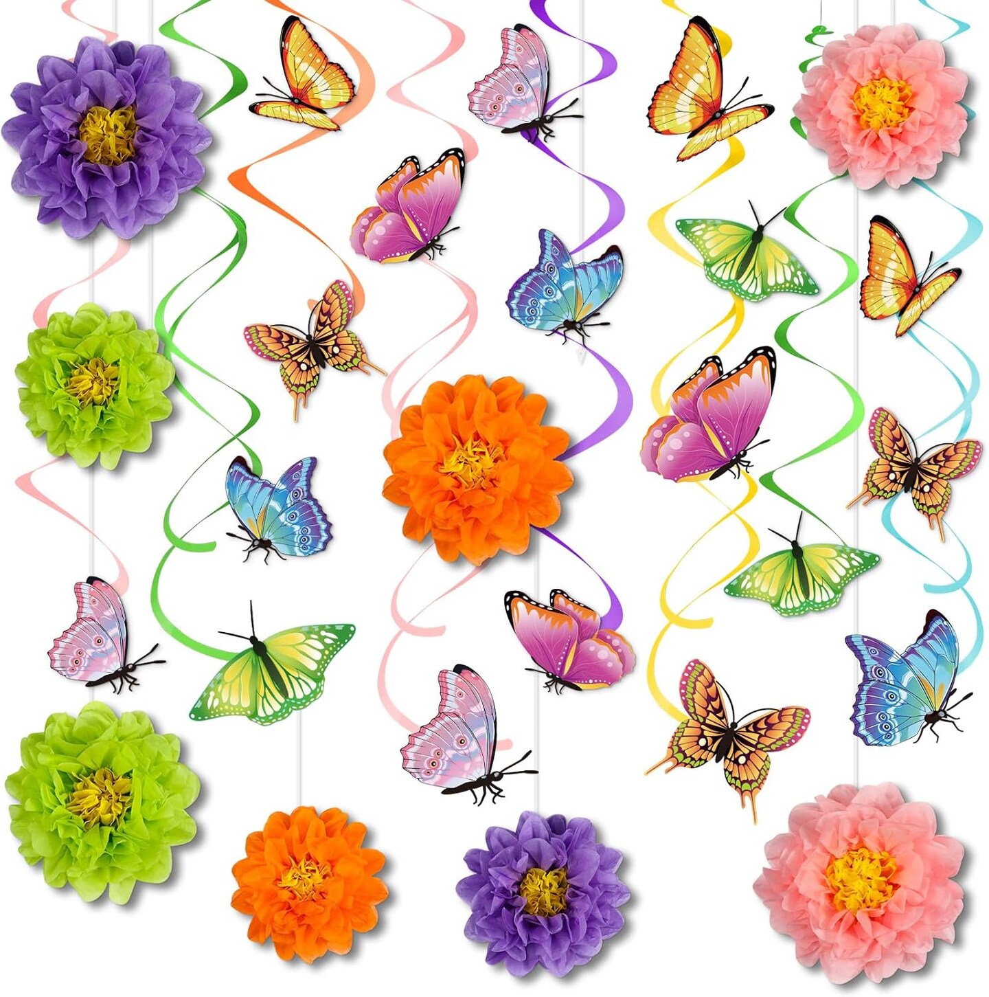 62 Pcs Spring 3D Flower Butterfly Hanging Swirls Decorations Butterfly Cutouts with Floral Paper Ball Colorful Ceiling Streamers for Birthday Summer Easter Party Baby Shower Wedding Home
