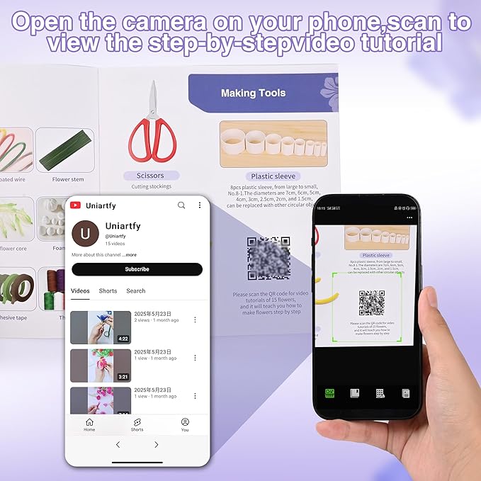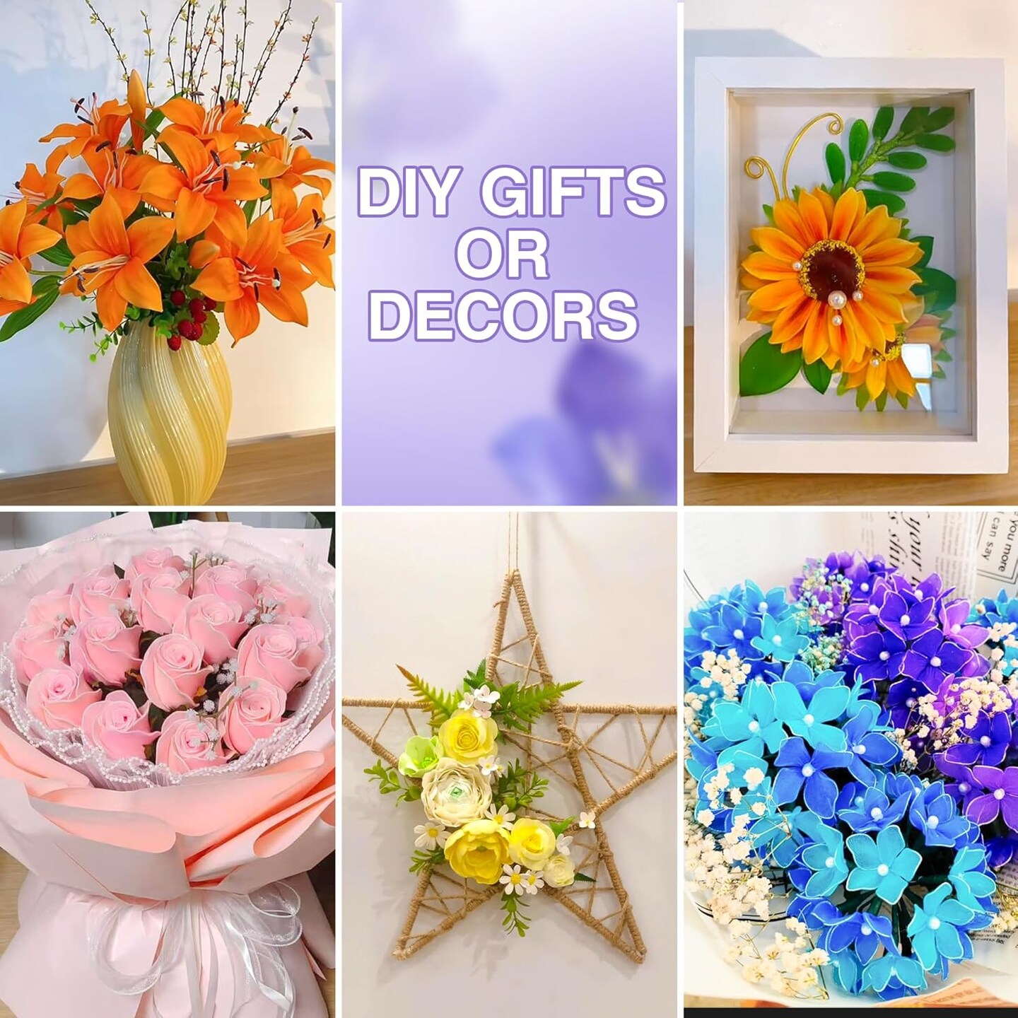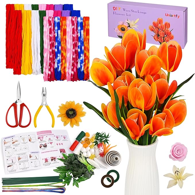 621PCS Nylon Stocking Flower Making Kit, Mixed Colors Nylon Stocking Fabric with Complete Materail, Tools and Step-by-Step Video for DIY Silk Flowers Arts and Crafts for Home Wedding Party Decoration