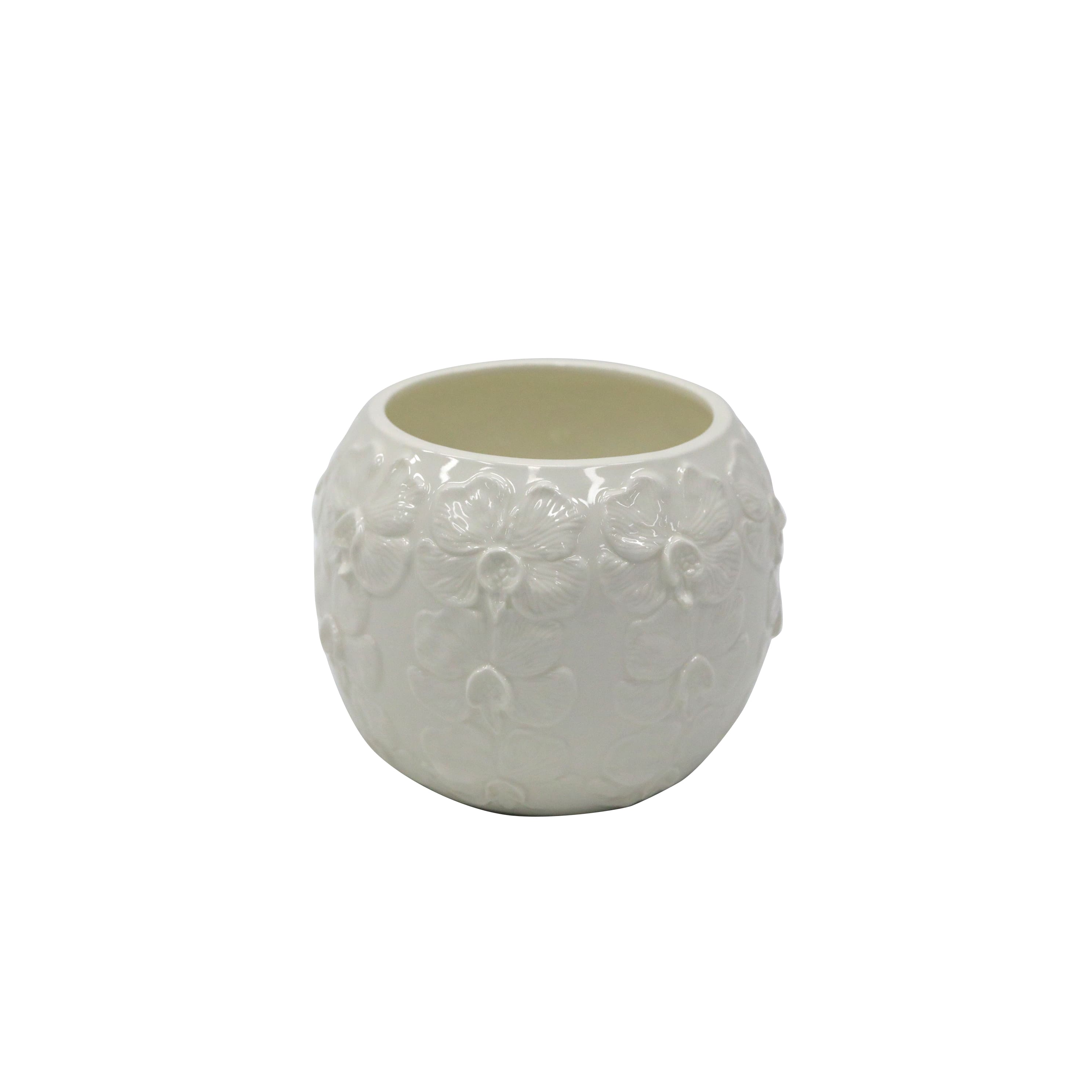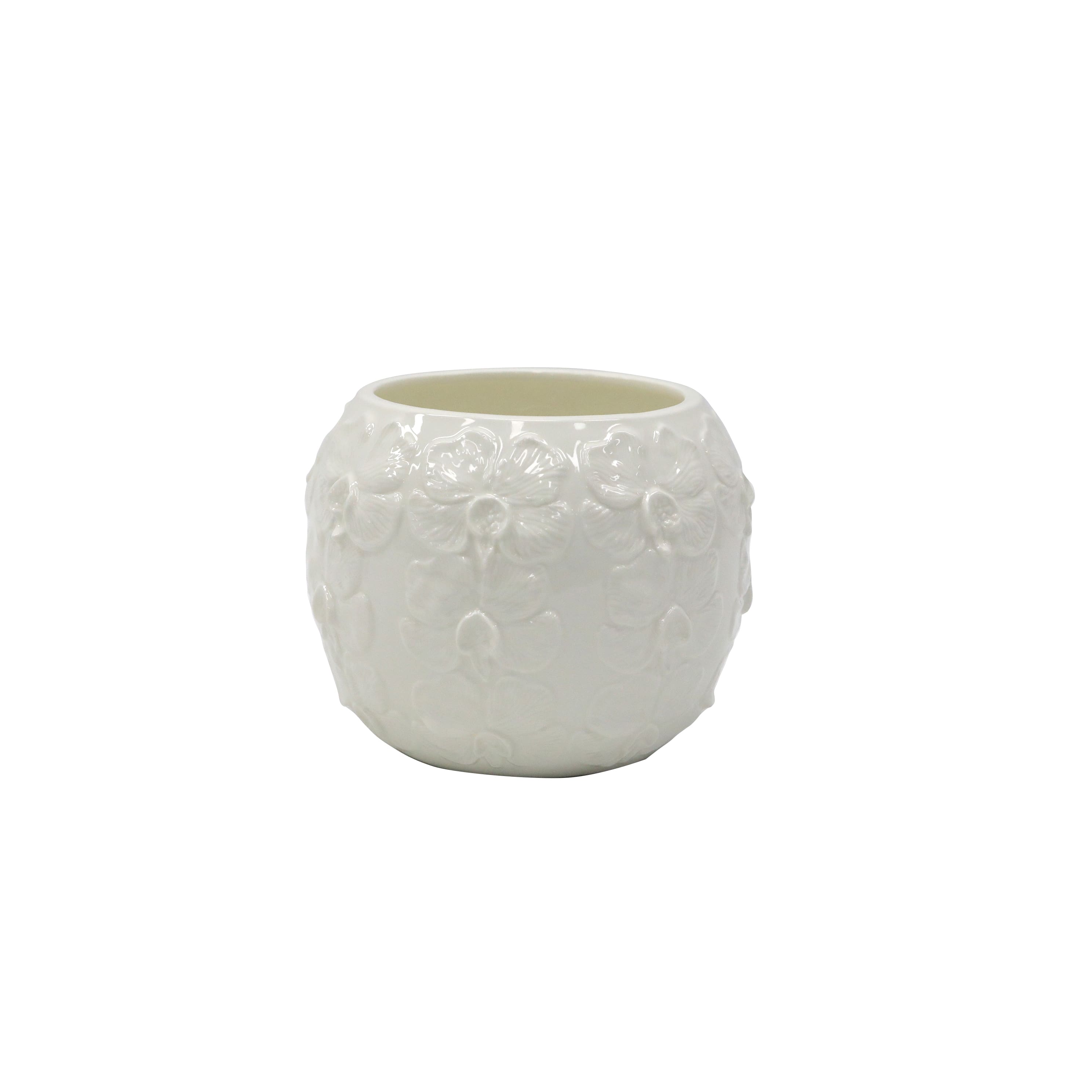 6.25" White Flower Embossed Ceramic Pot by Ashland®