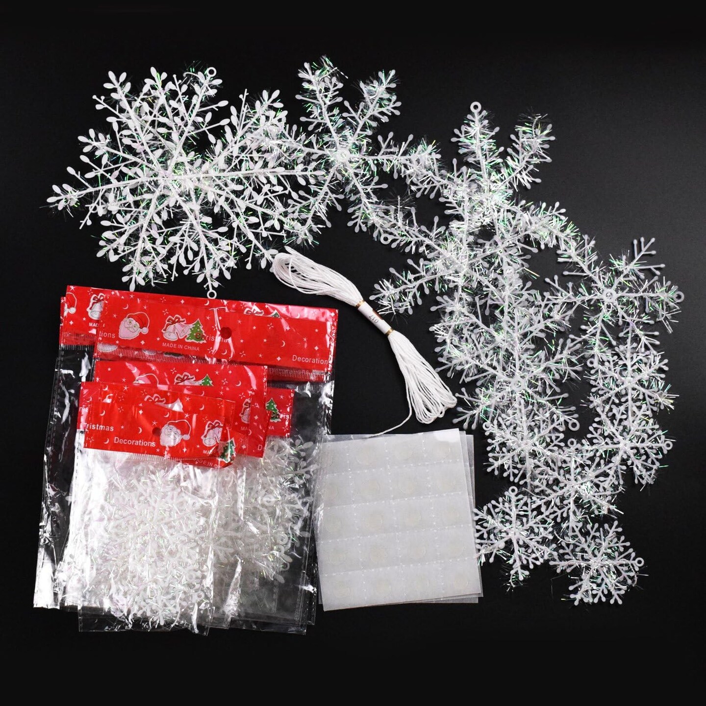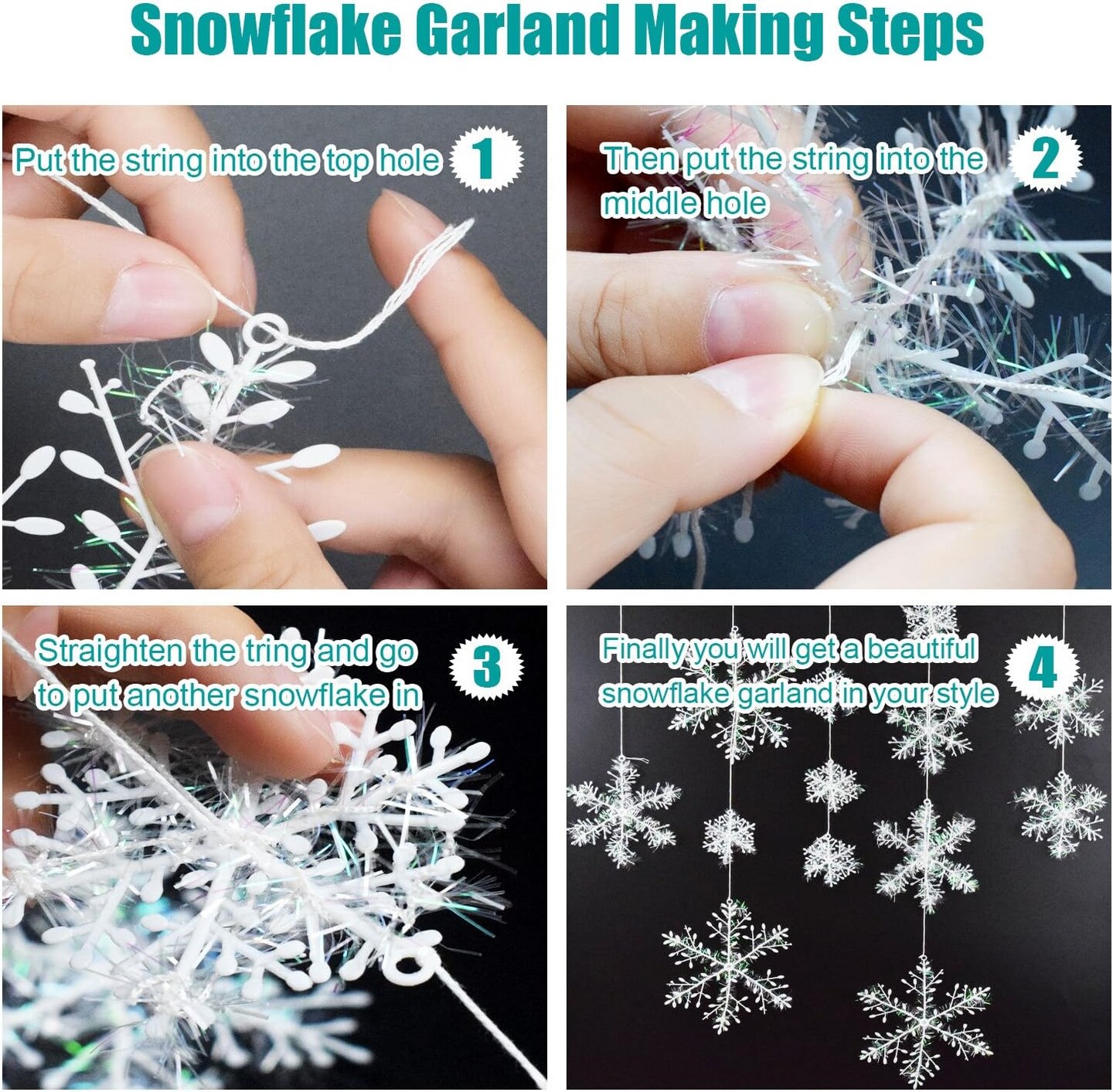 63 Pieces 4 Sizes White Christmas Snowflake Ornaments Garland