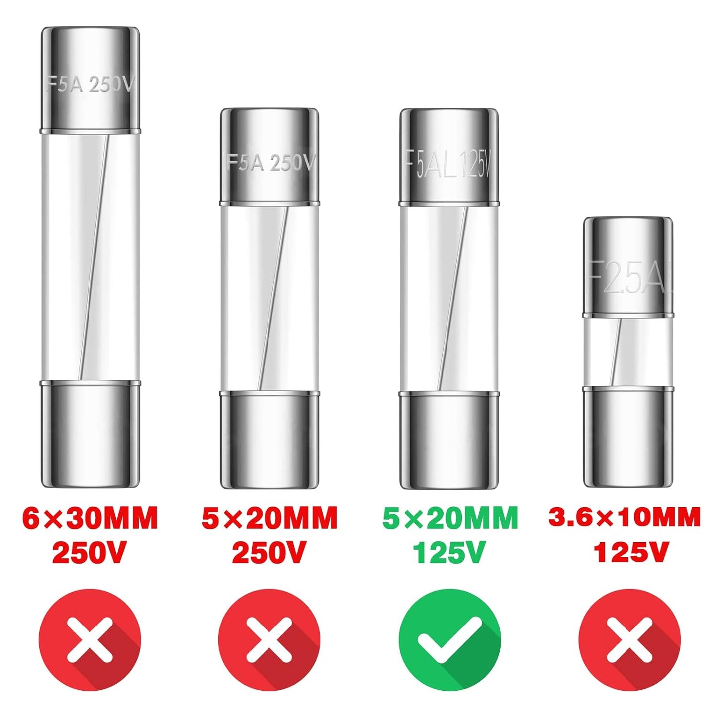 6.3A 125V Fuse 6.3 Amp 125 Volt Max Fast Blow Glass Fuses Replacement for Outdoor C9 String Christmas Xmas Lights 5x20MM / 0.2x0.78Inch (Pack of 30pcs)