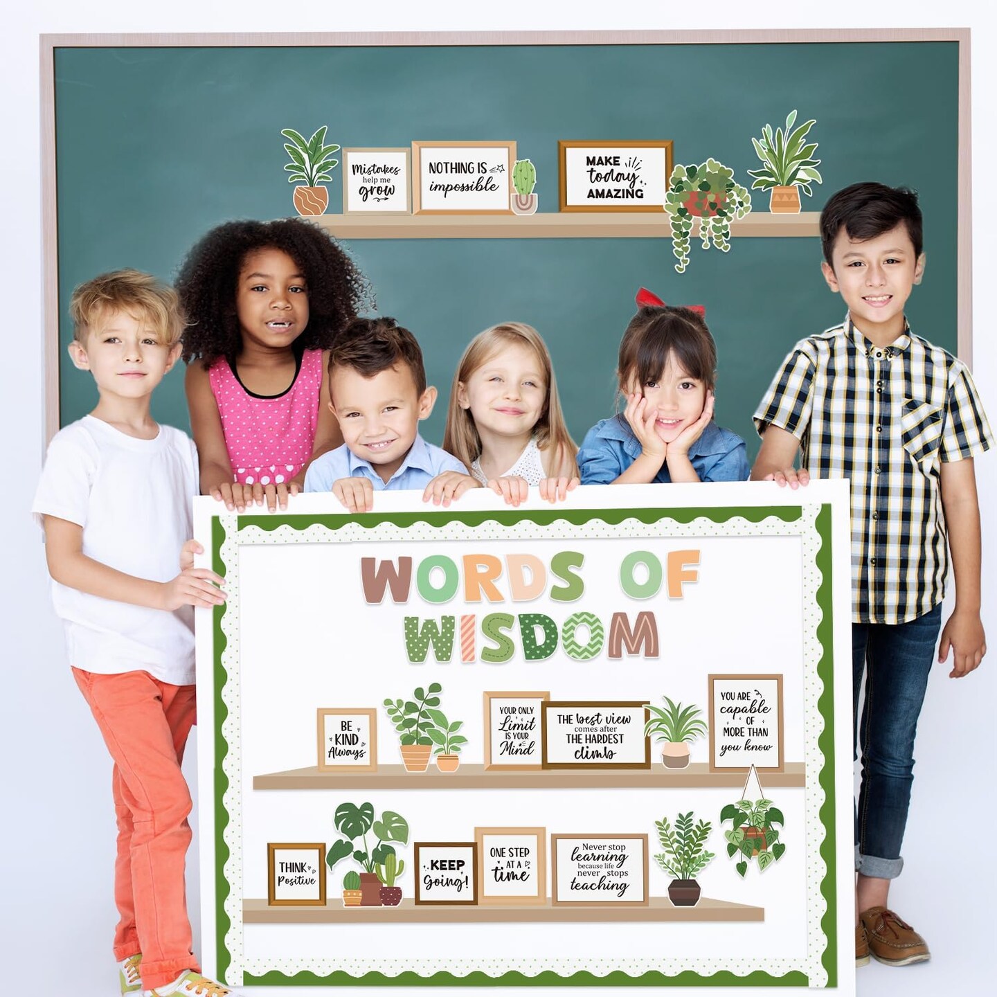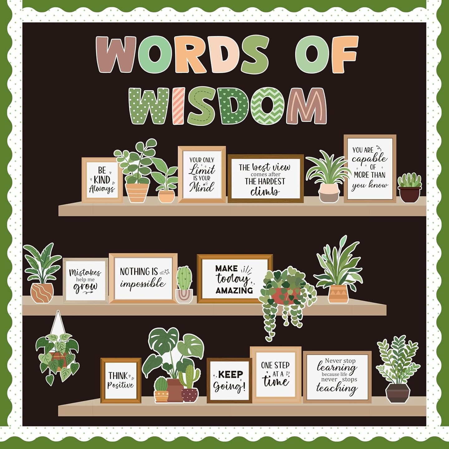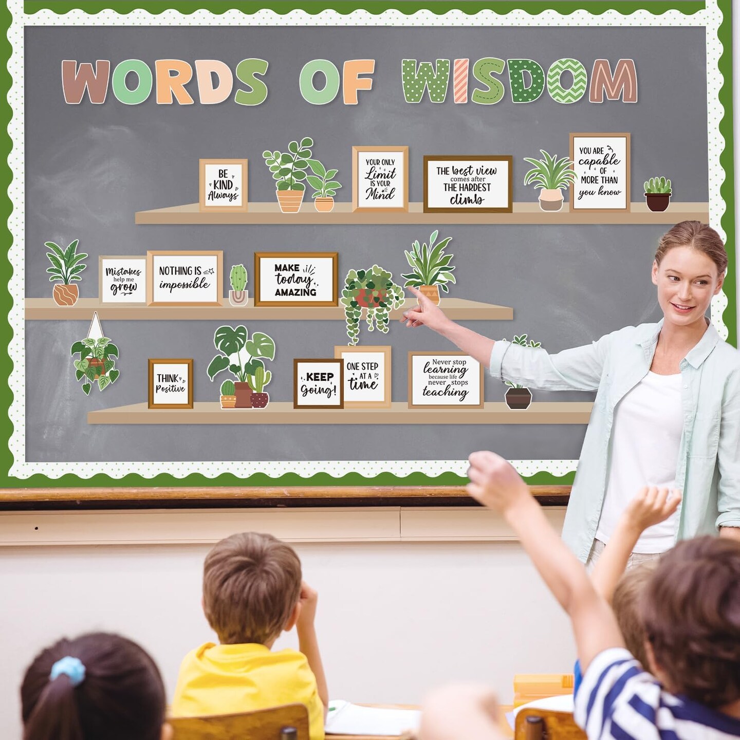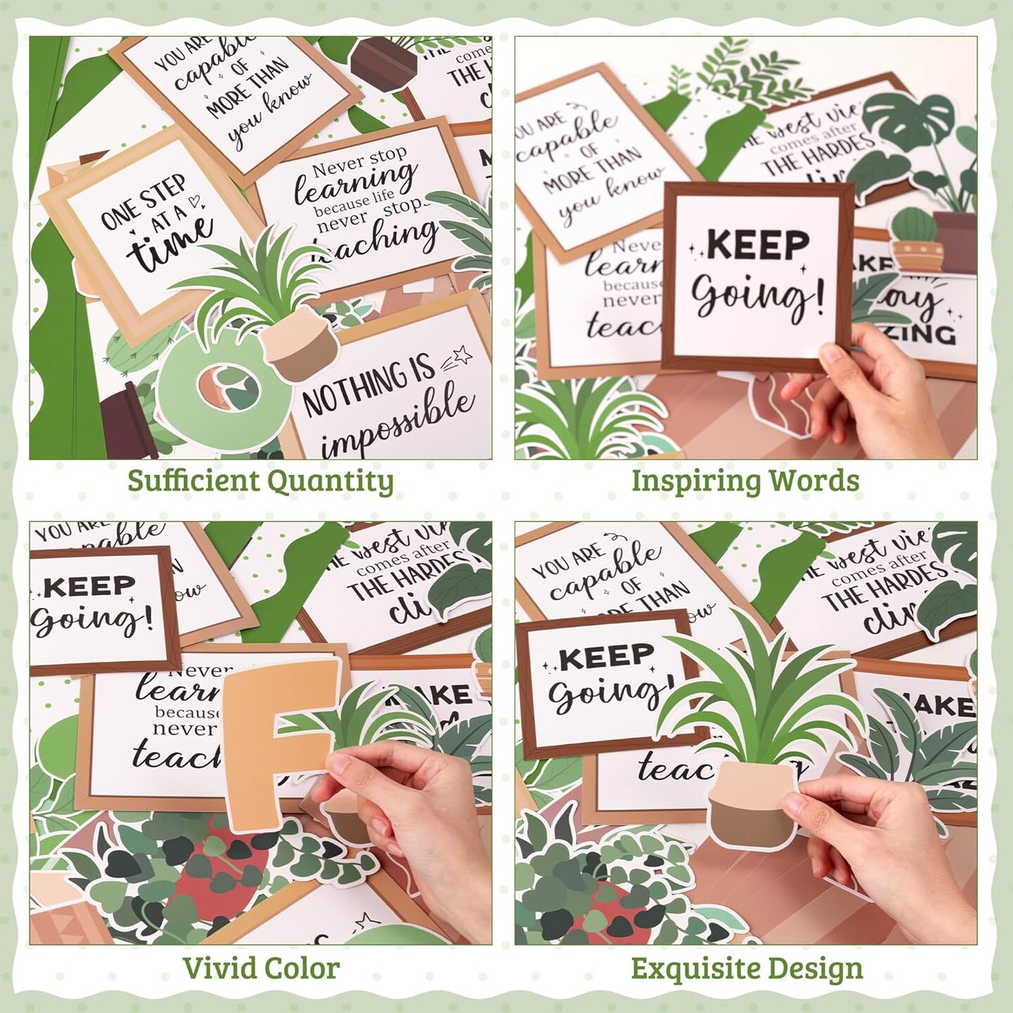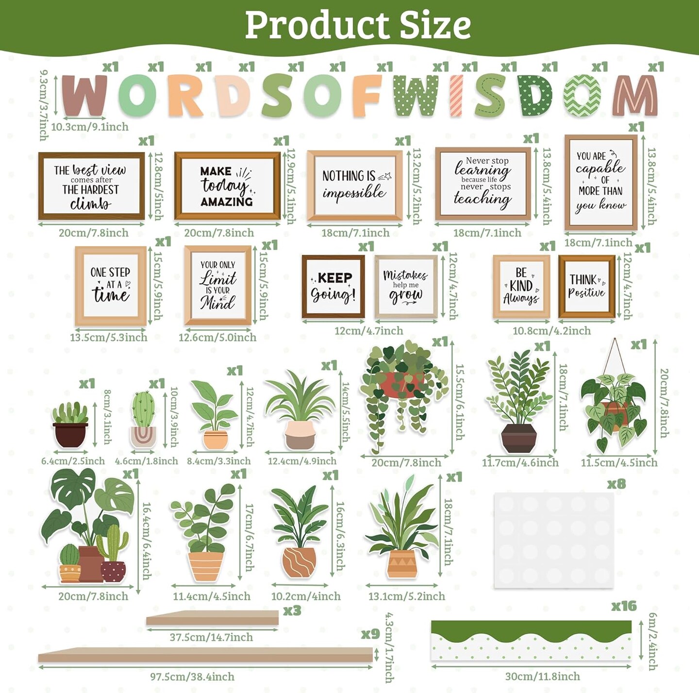 63pcs Bookshelf Bulletin Board Decorations - Plant (Green)