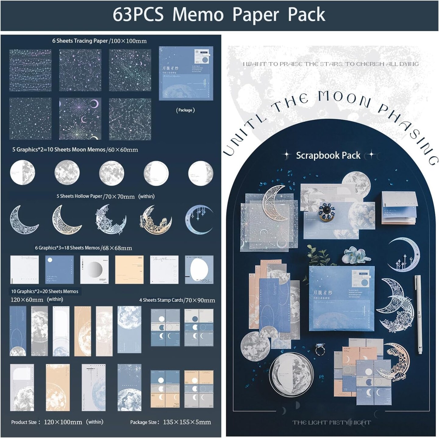 63PCS Moon Embellishment Scrapbook Paper Packs