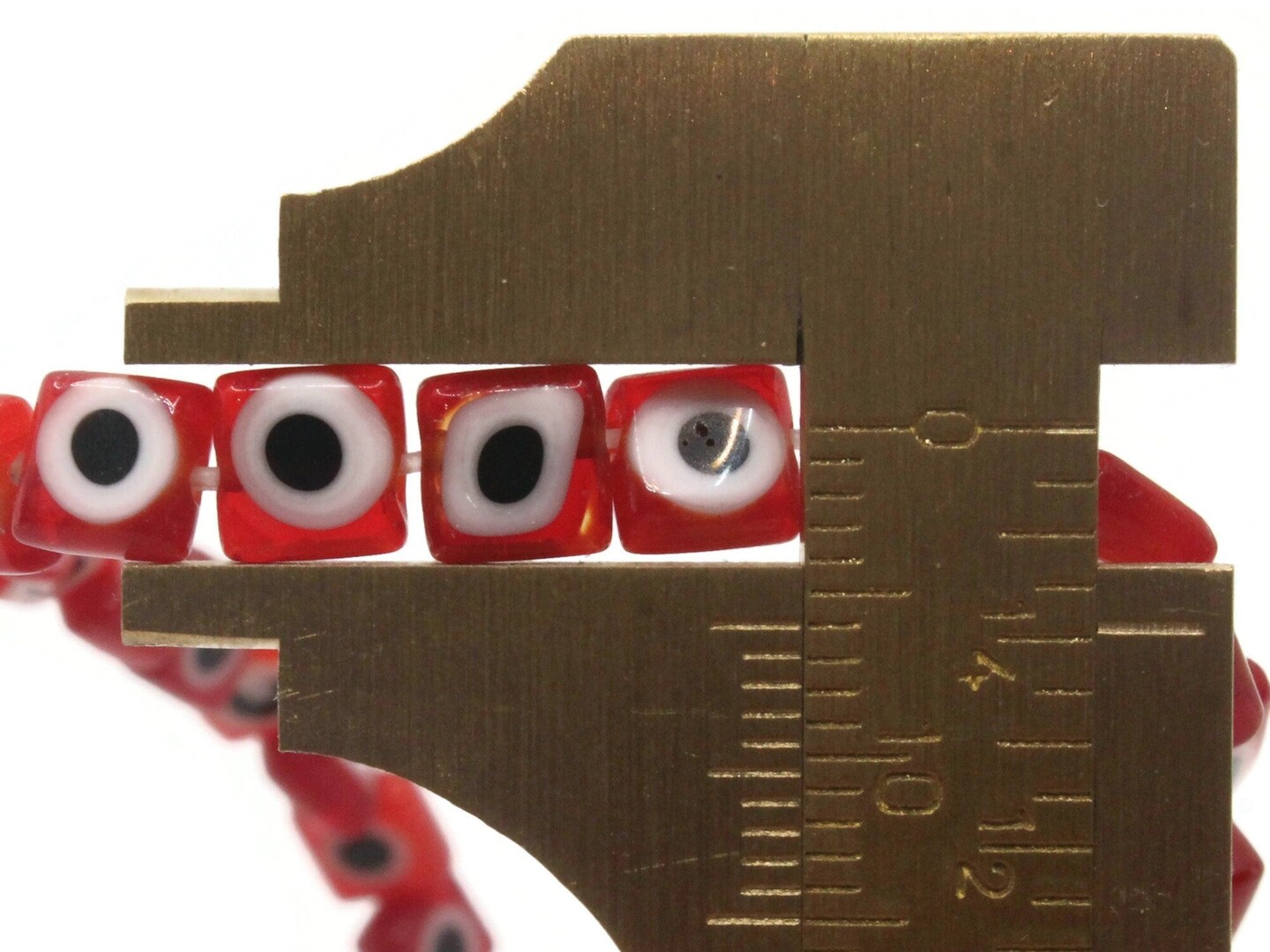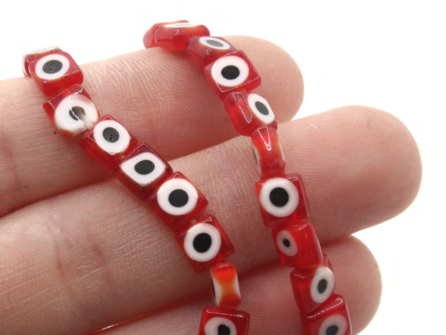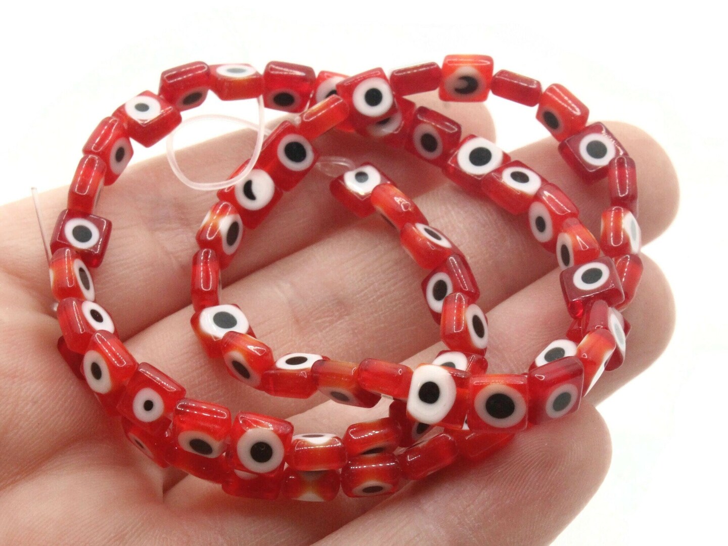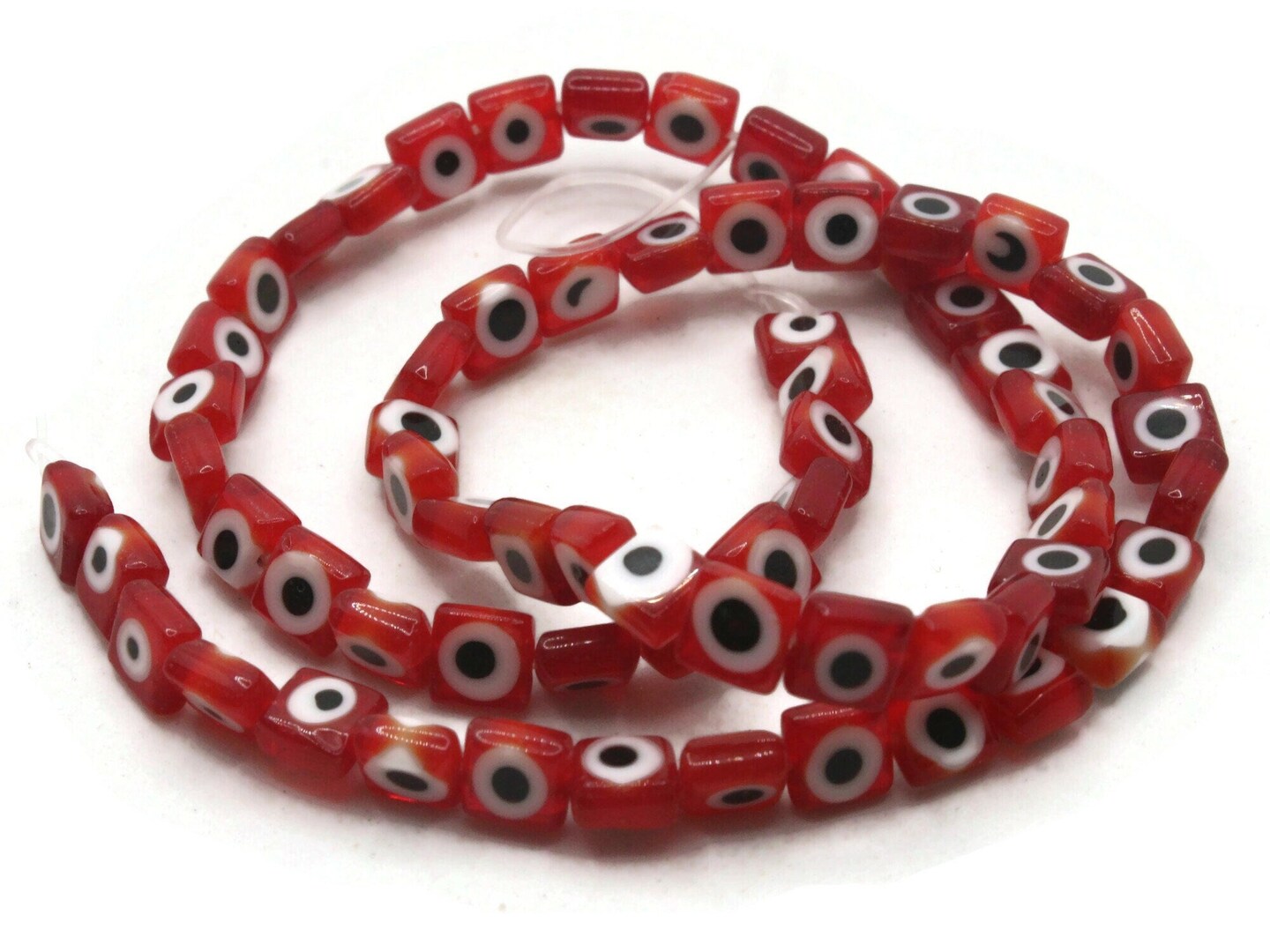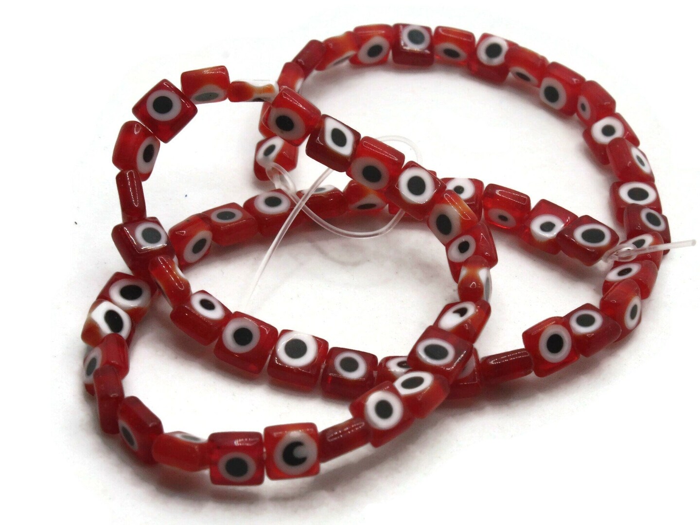 64 6mm Red Black and White Evil Eye Small Smooth Flat Square Disc Glass Beads