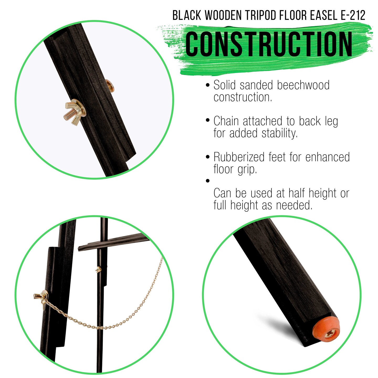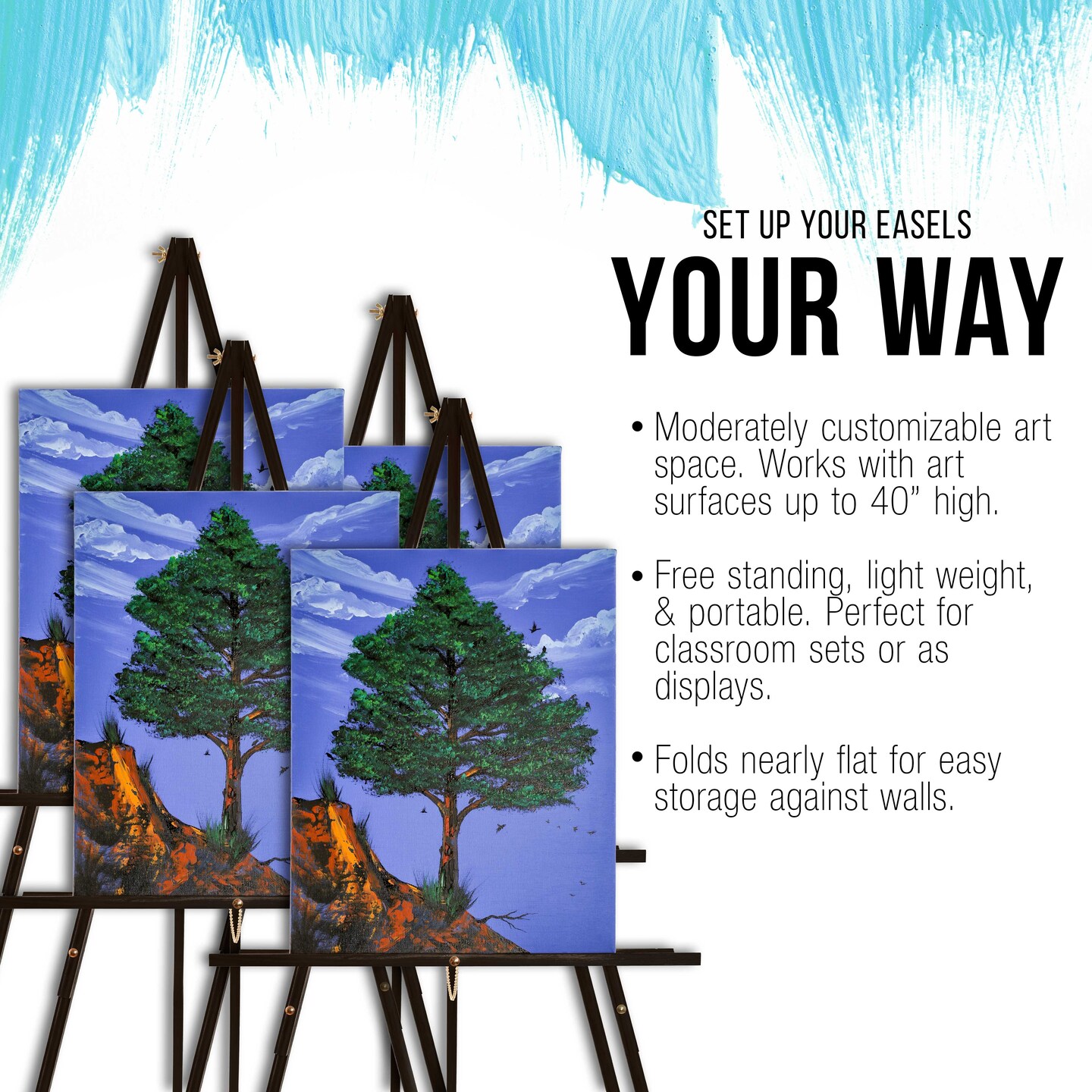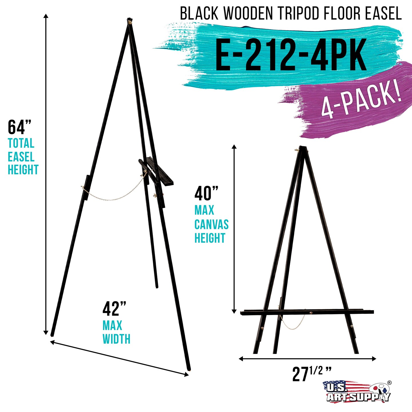 64" Black Wooden Easel Stand (4 Pack) - Adjustable A-Frame Tripod for Painting, Drawing & Signs - Lightweight Easels, Wood Easel Stand for Sign Wedding Display 40" Canvas Capacity