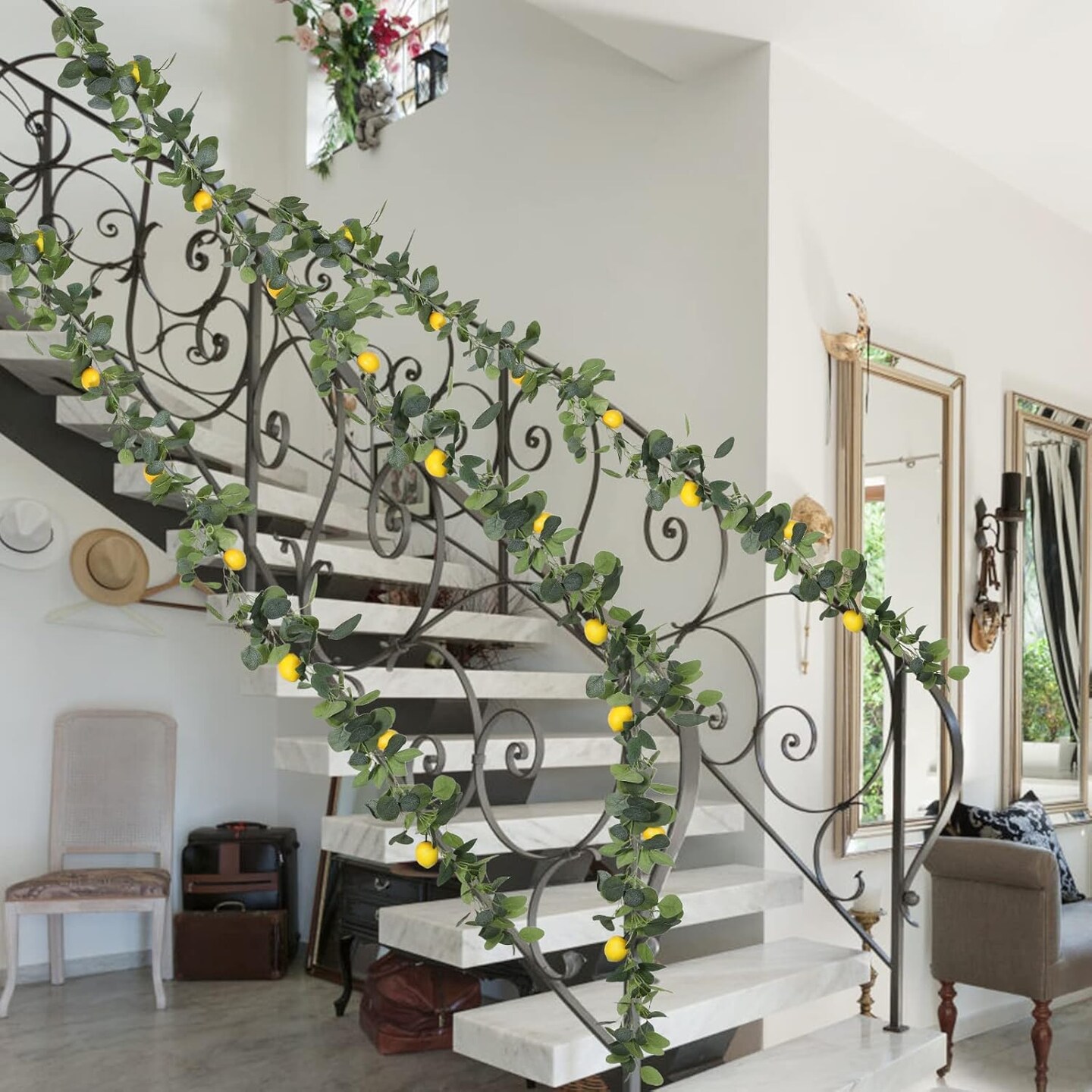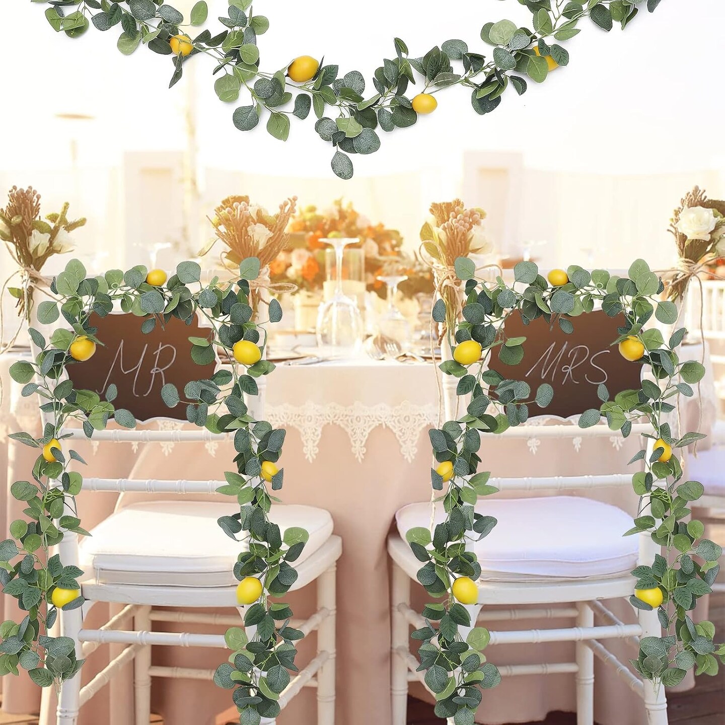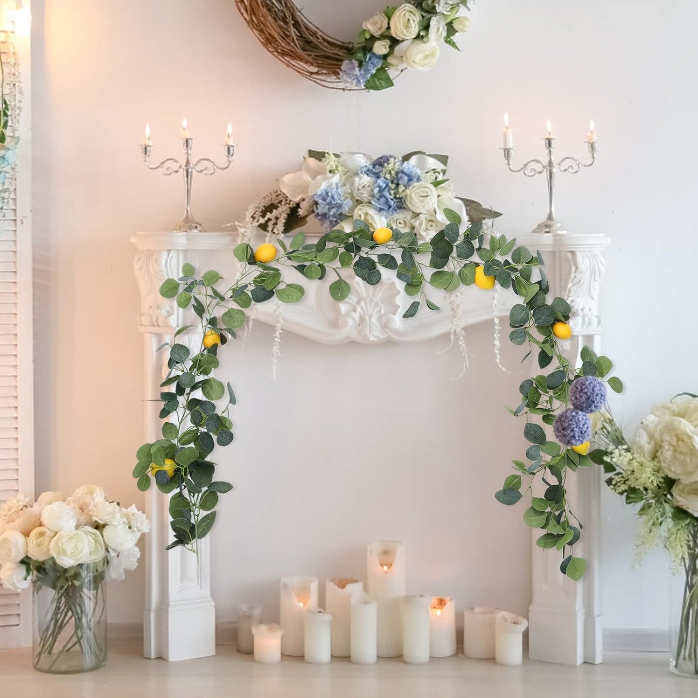 6.4 Ft Artificial Lemon Garland Faux Eucalyptus Garland with Lemons Greenery Fruit Garland for Front Door Home Kitchen Party Wedding Decor