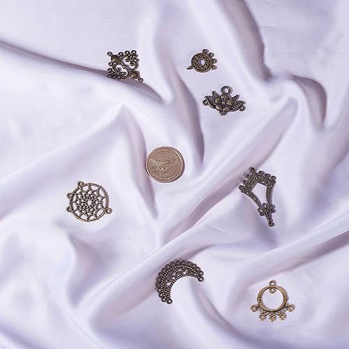 64 Pieces Assorted Chandelier Connector Charms Tibetan Style Antique Bronze Flower Dream Catcher Charm Earring Findings Loops Vintage Linking Connectors Charm for Jewelry Making Charms