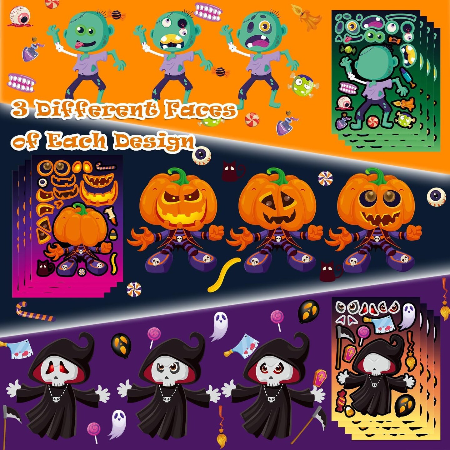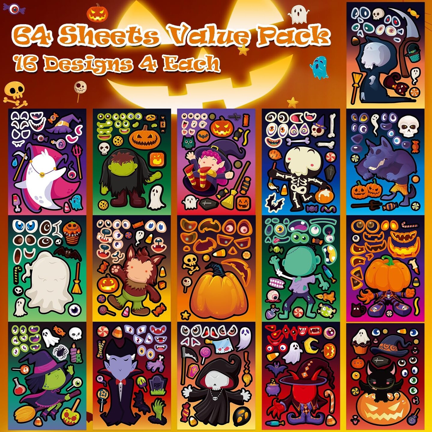 64 Sheets Halloween Party Games Stickers for Kids,16 Different Designs