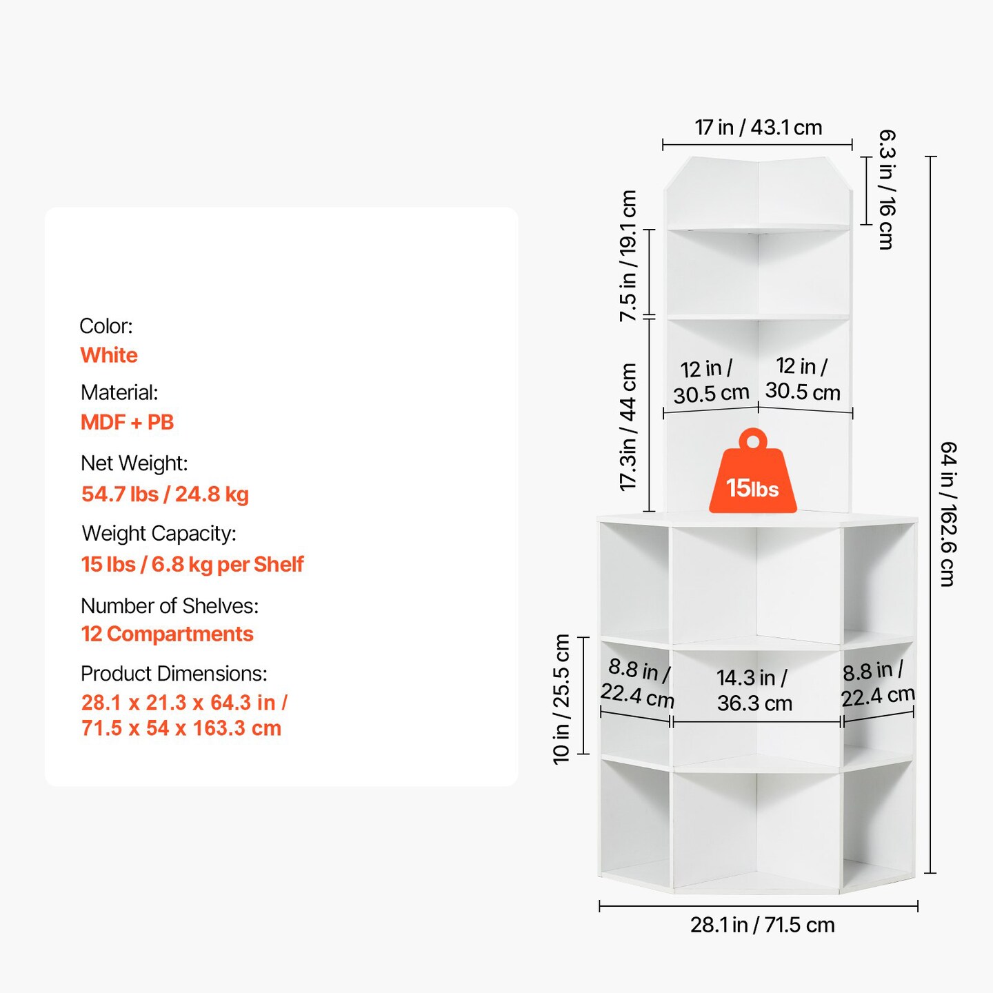 64" Tall Corner Cabinet, 6-Tier Wooden Storage Cabinet