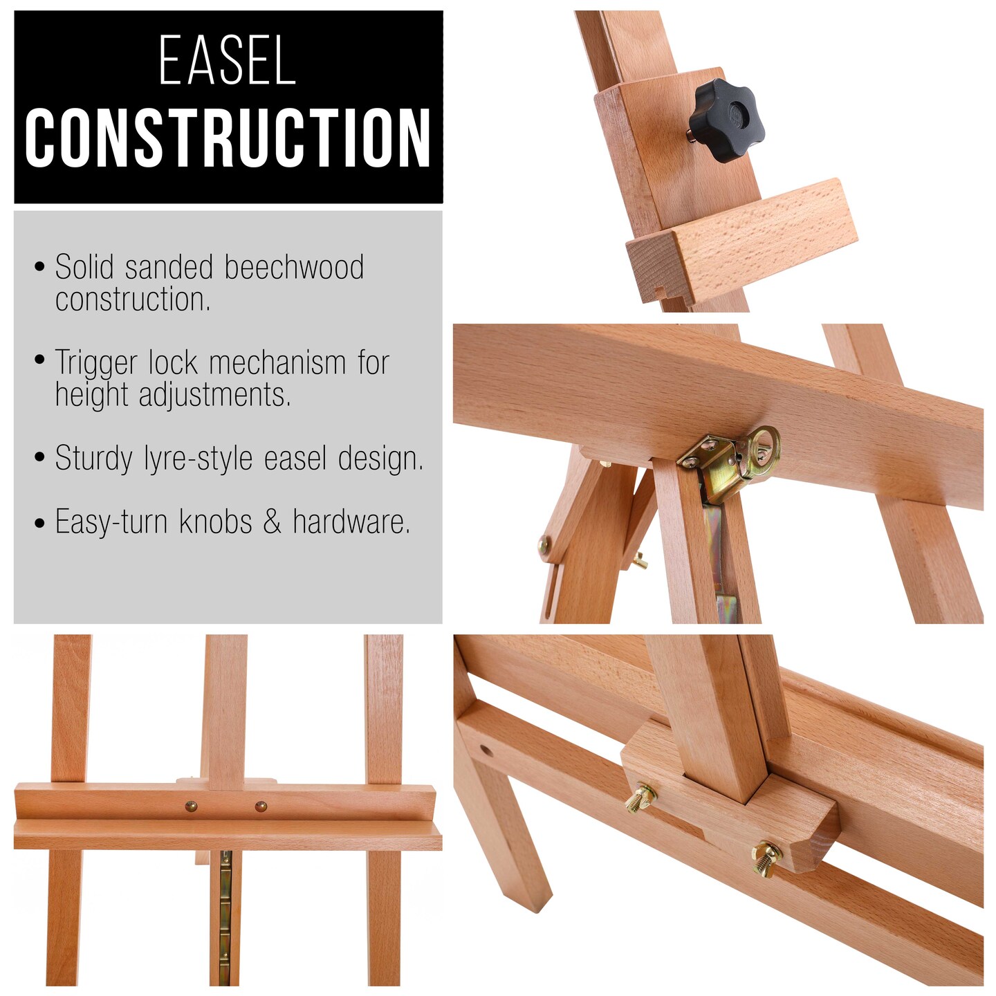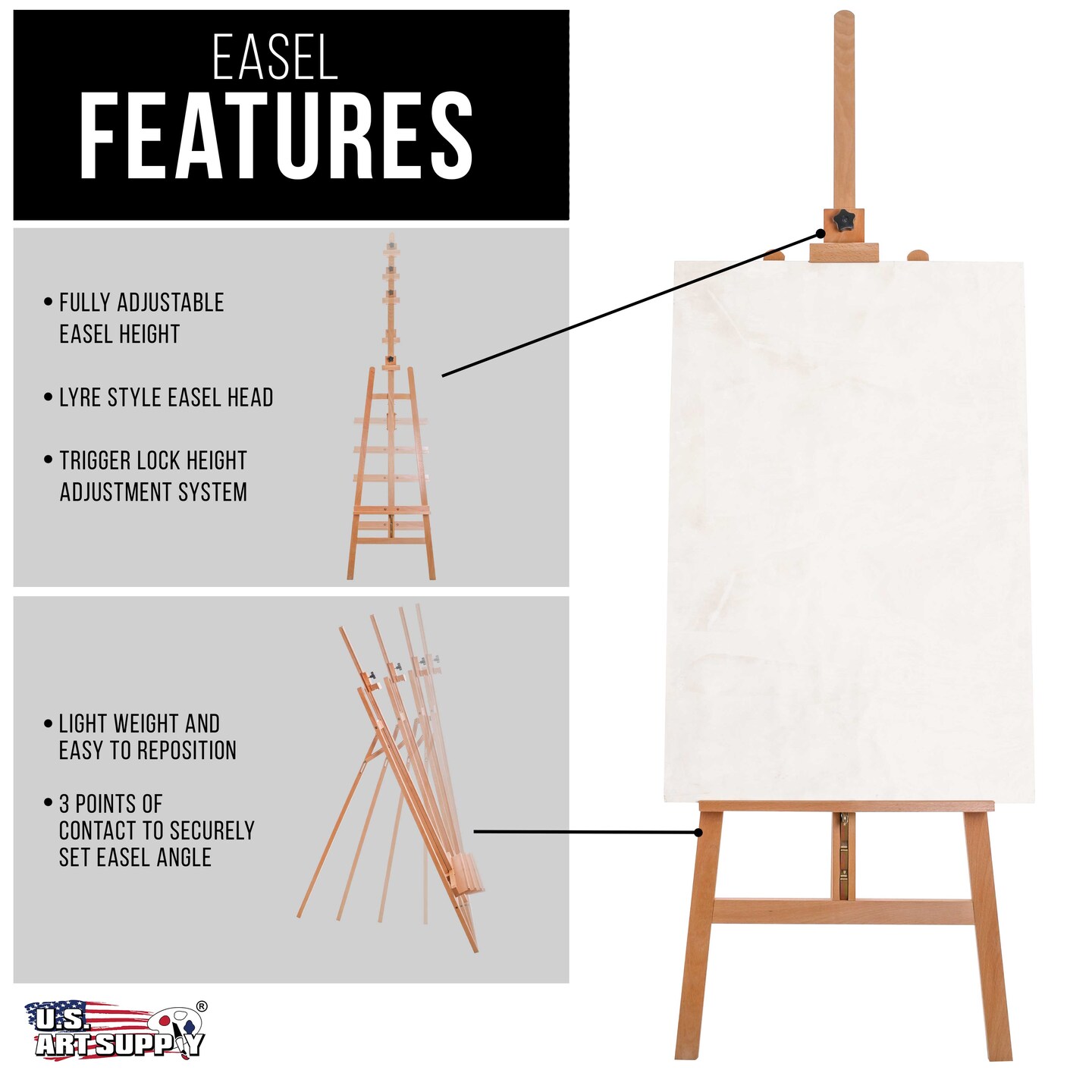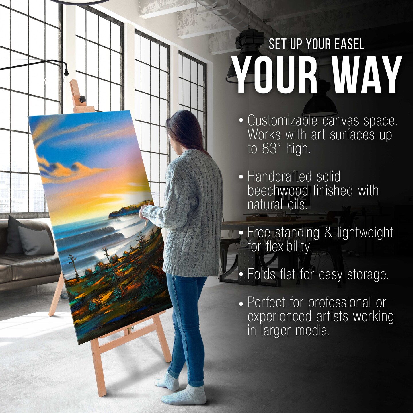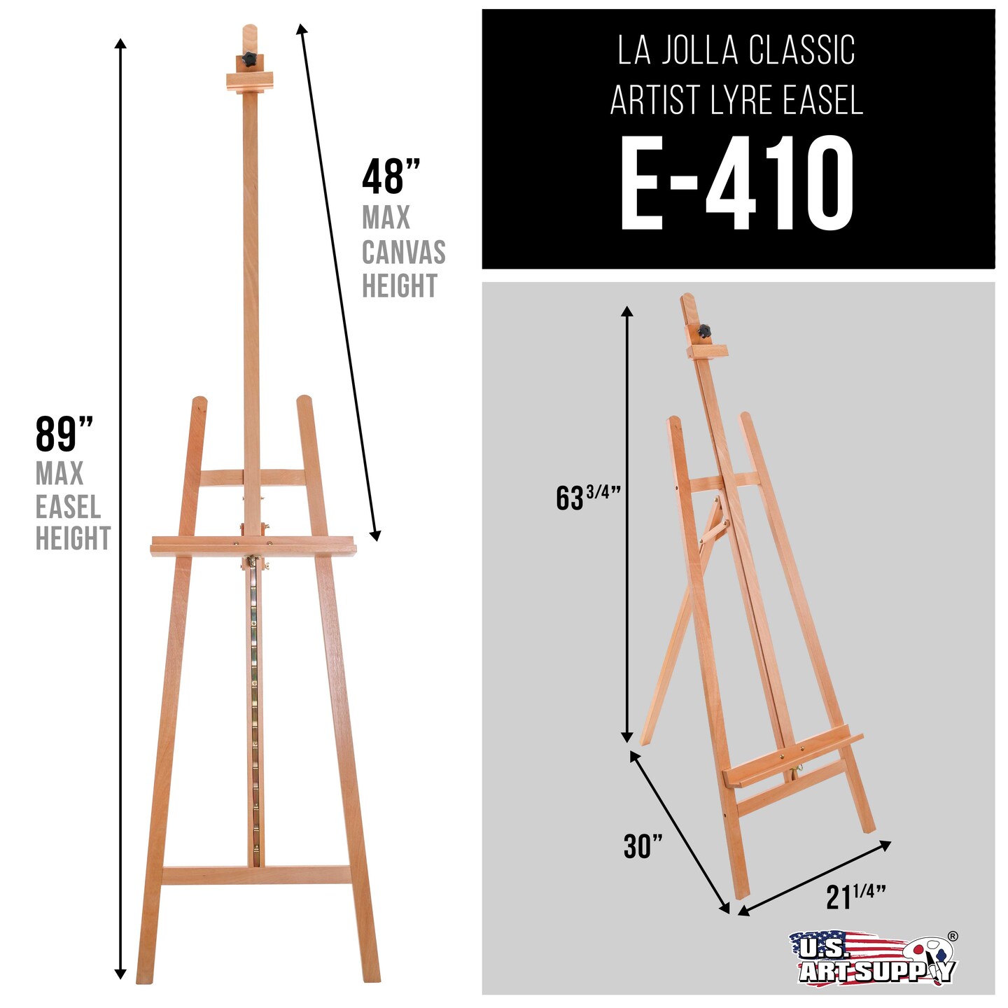 64" to 89" La Jolla Classic A-Frame Wood Easel, Lyre Style Studio Easel - Wooden Artists Floor Stand, Sturdy, Adjustable Height To 48" Canvas - Painting, Drawing, Sign Display