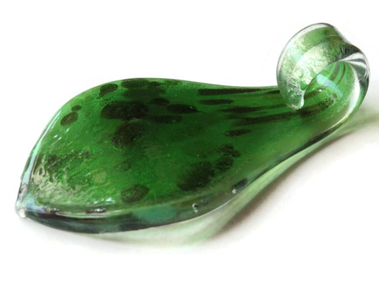 64mm Green with Gold and Brown Spots Foil Glass Pendant Lampwork Glass Spoon Pendant