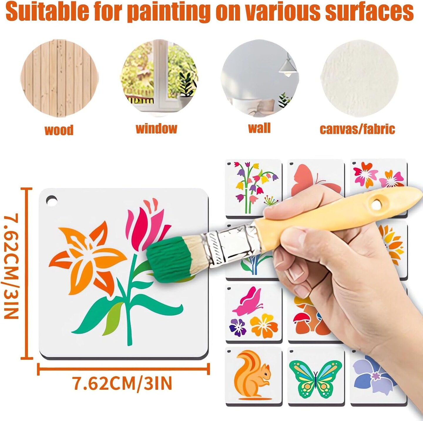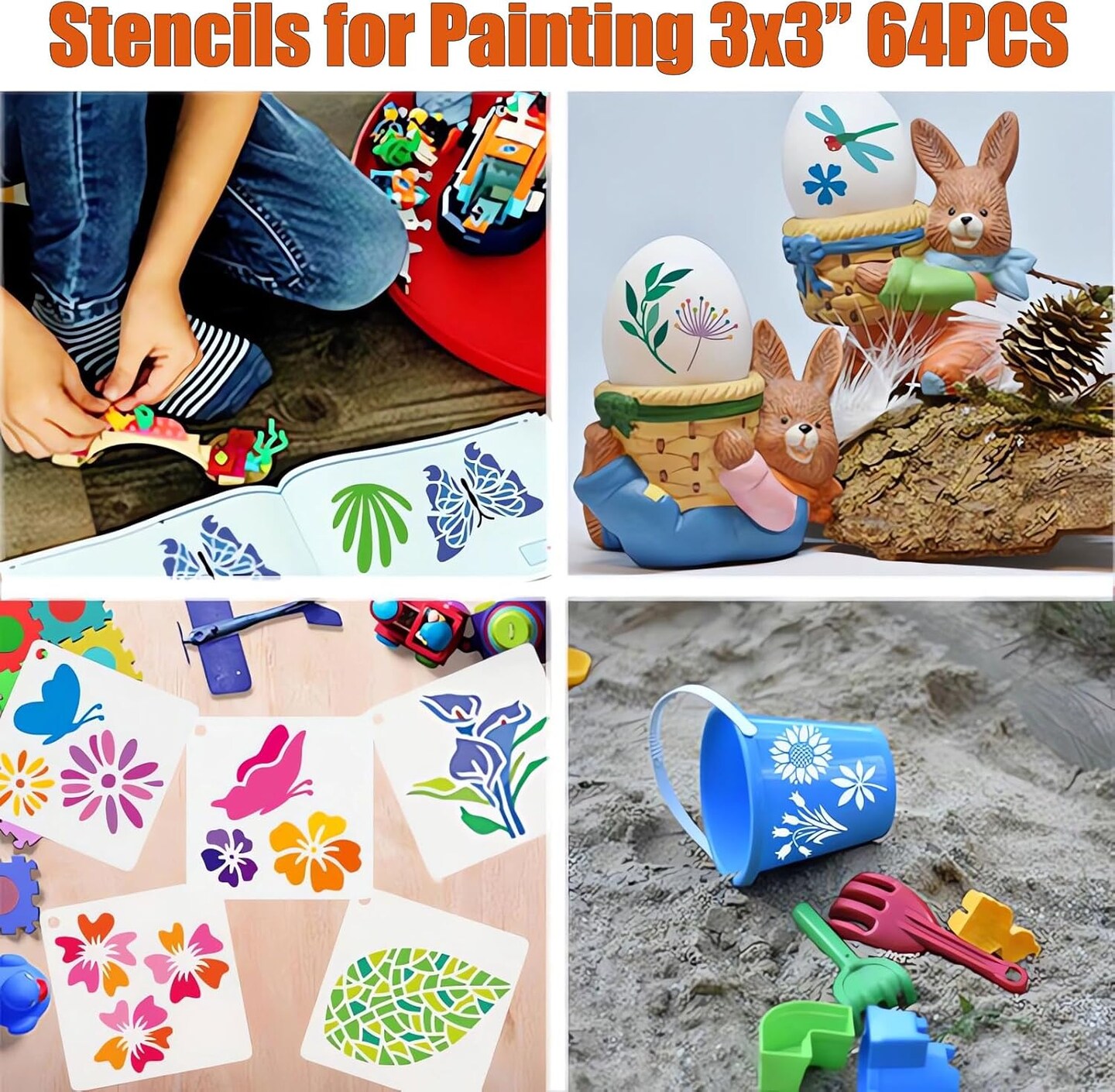 64PCS 3 Inch Painting Stencils Set – Reusable Small Craft Templates for Rock Painting, Wood, Wall, Tile, Canvas, Fabric & DIY Home Decor Projects