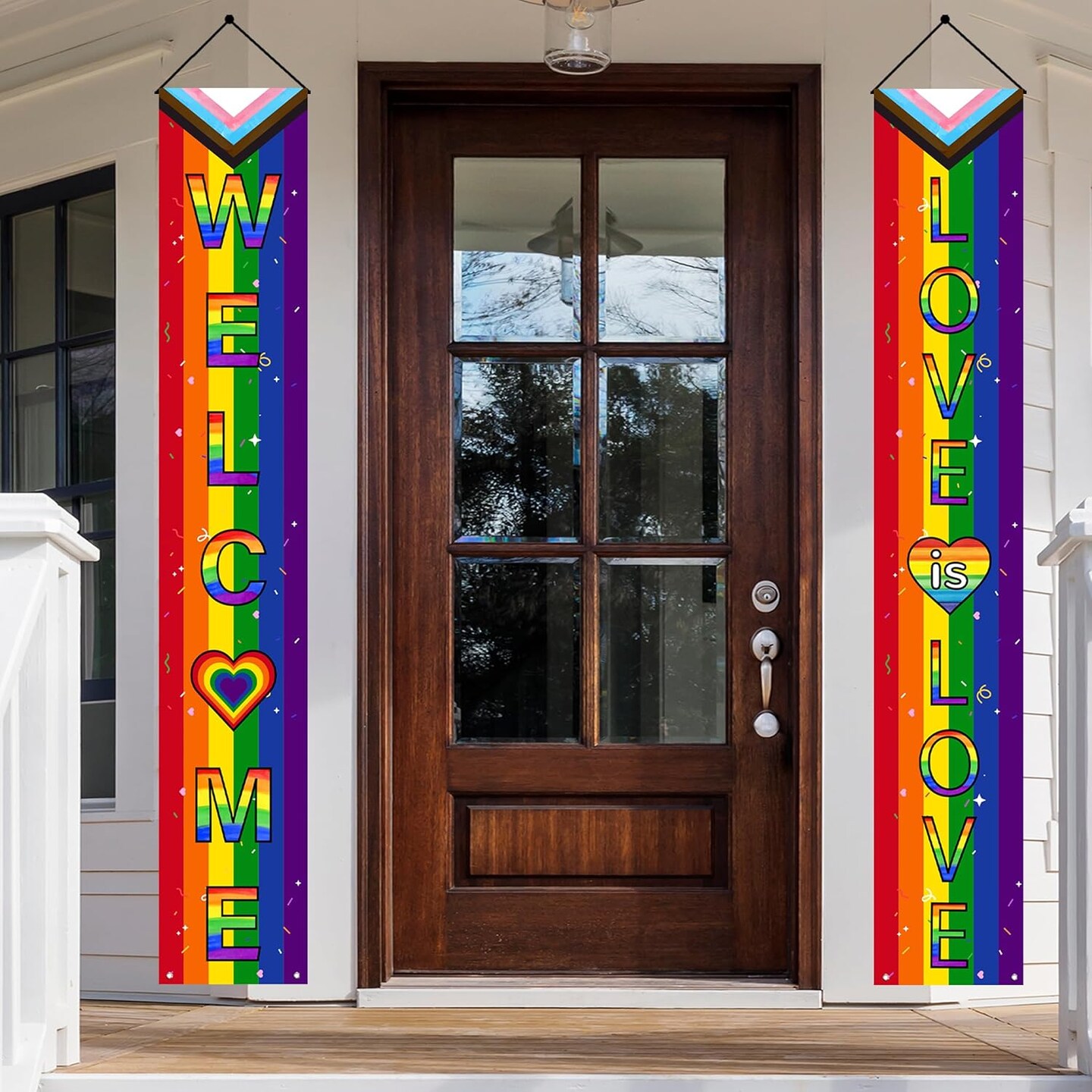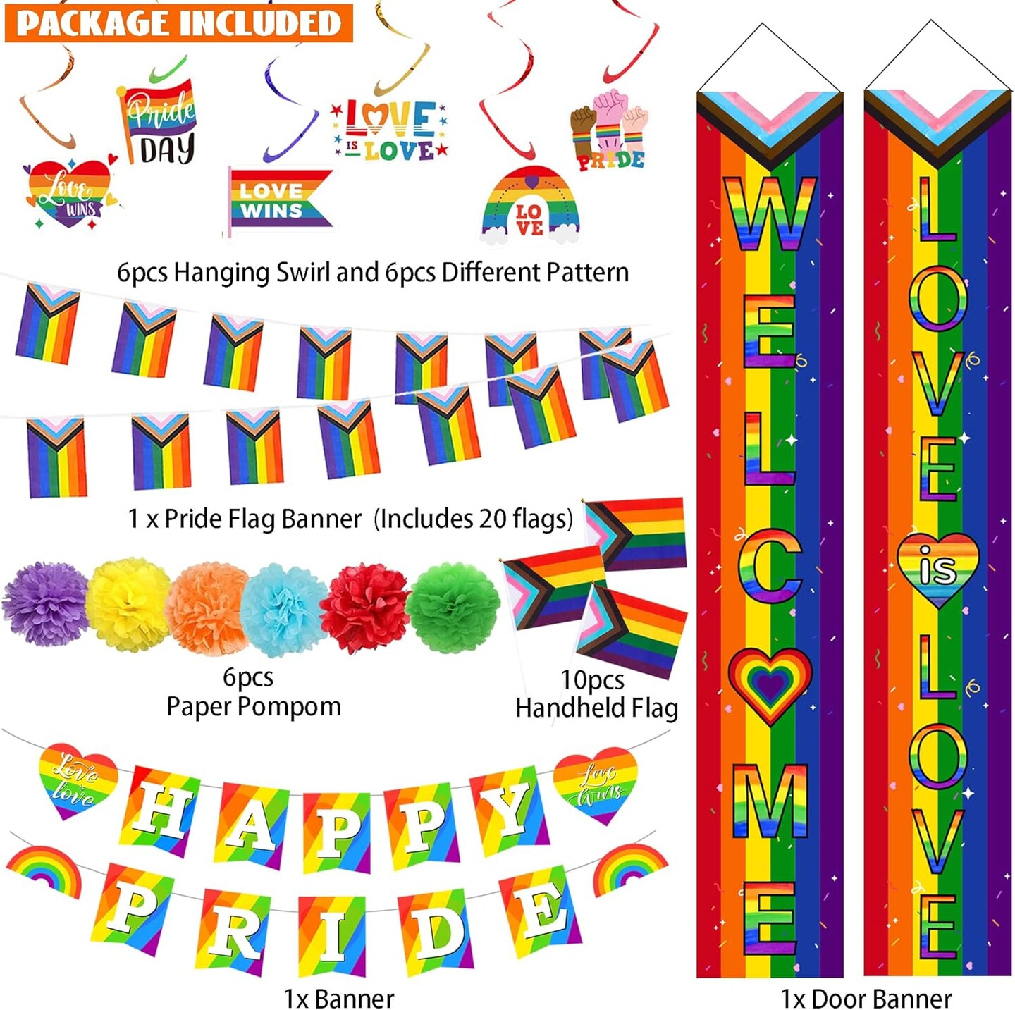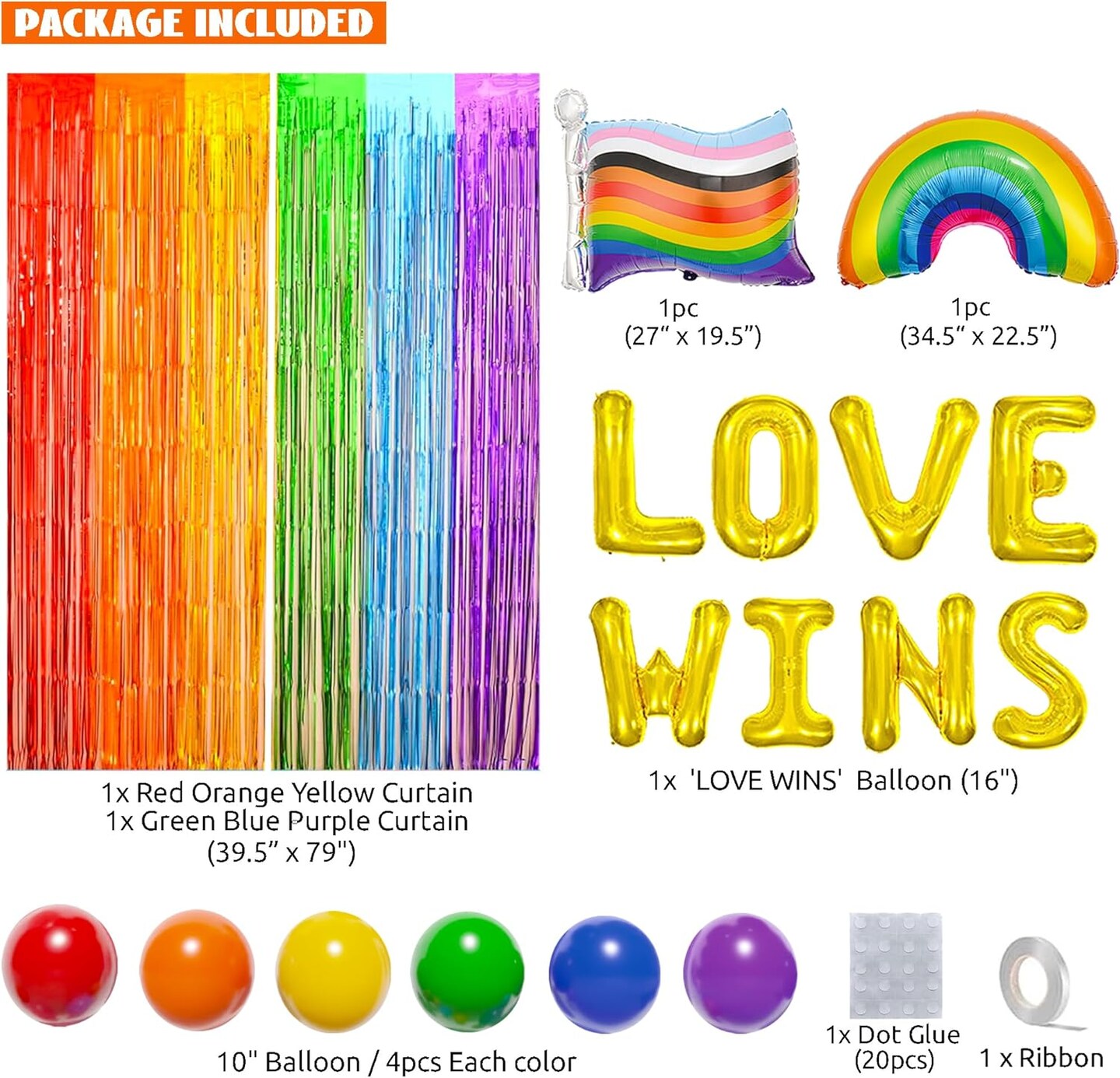 64PCS Pride Month Decorations with Rainbow Foil Curtain, Porch Sign , Banner, Balloons and Flags