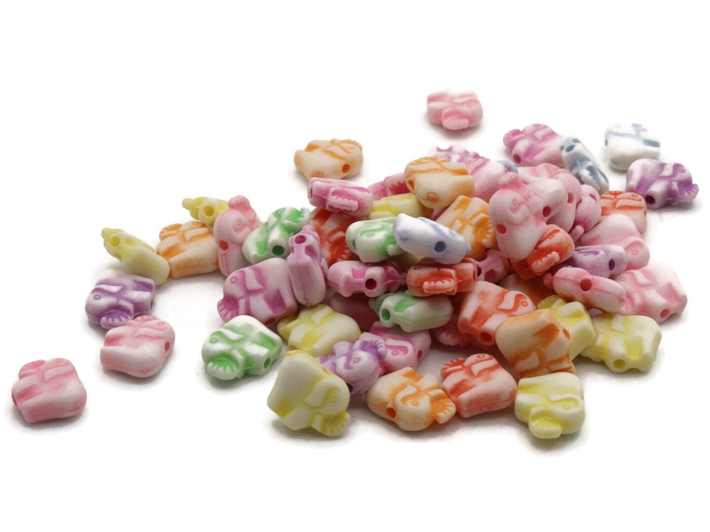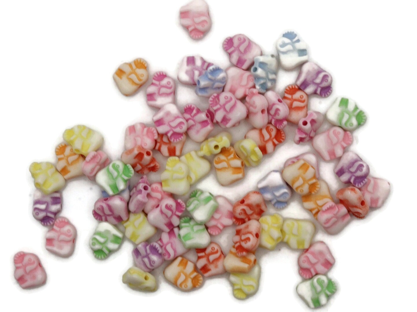 65 12mm Tiny Elephant Mixed Color Plastic Pachyderm Beads - Miniature Animal Beads