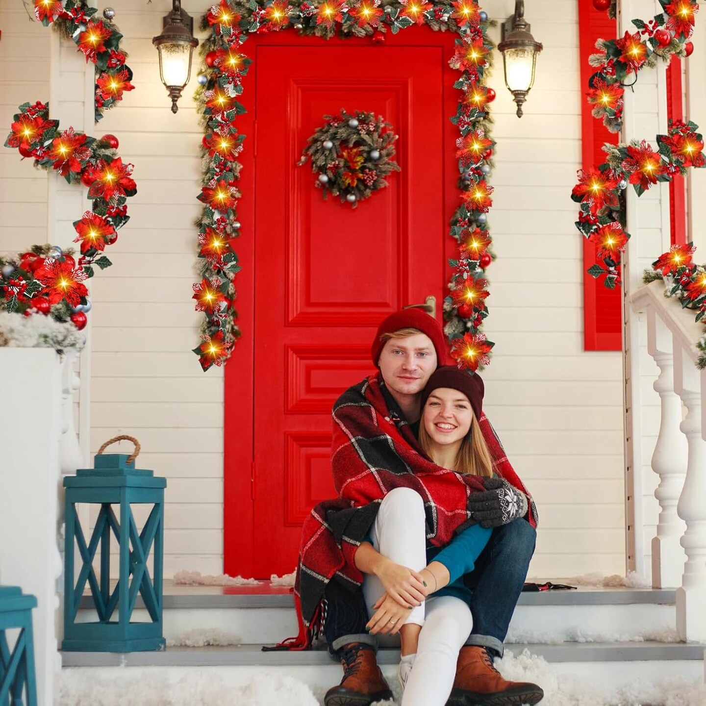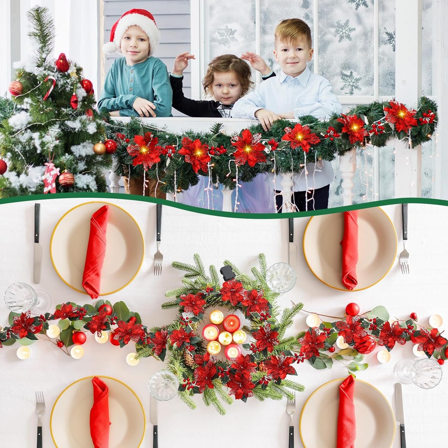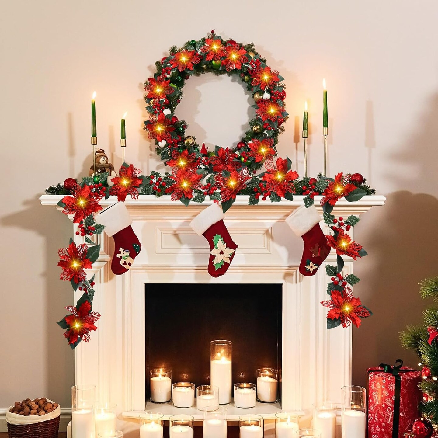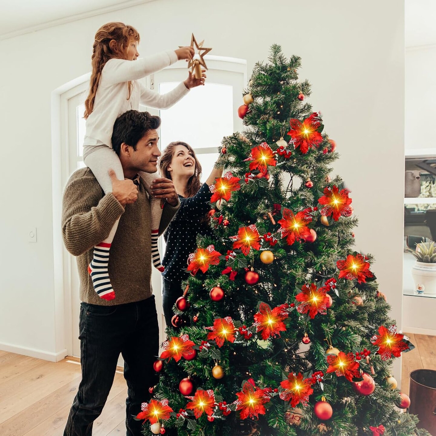 6.5 ft 10 LEDs Faux Flower Xmas String Lights (Red)