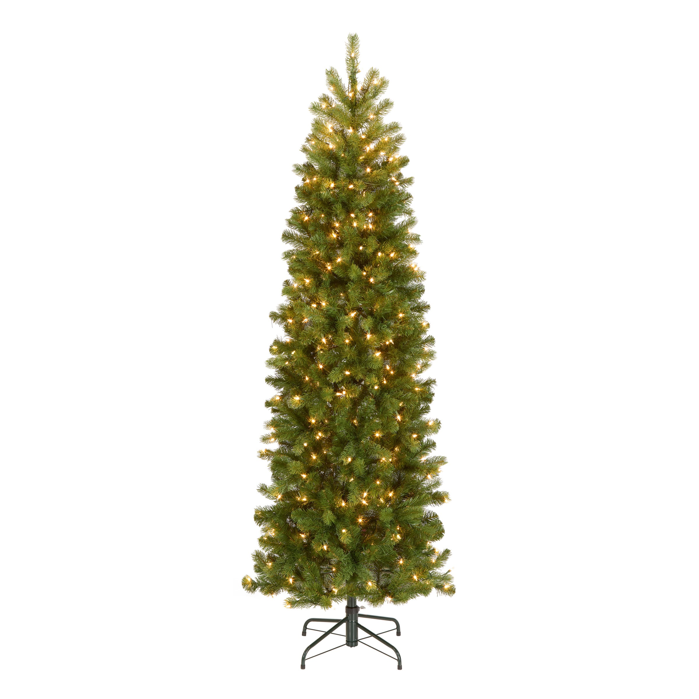 6.5 Ft. Pre-Lit Feel Real® Downswept Douglas Fir Pencil Slim Artificial Christmas Tree, Clear Lights