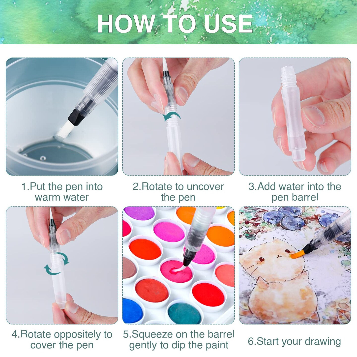 65 Pieces Watercolor Paint Set,36 Colors Watercolor,10 Brushes,3 Refillable Water Brush Pens,16 Page Pad(8.5 * 5.5in),Profesional Watercolor Kit for Kids, Adults, Beginners