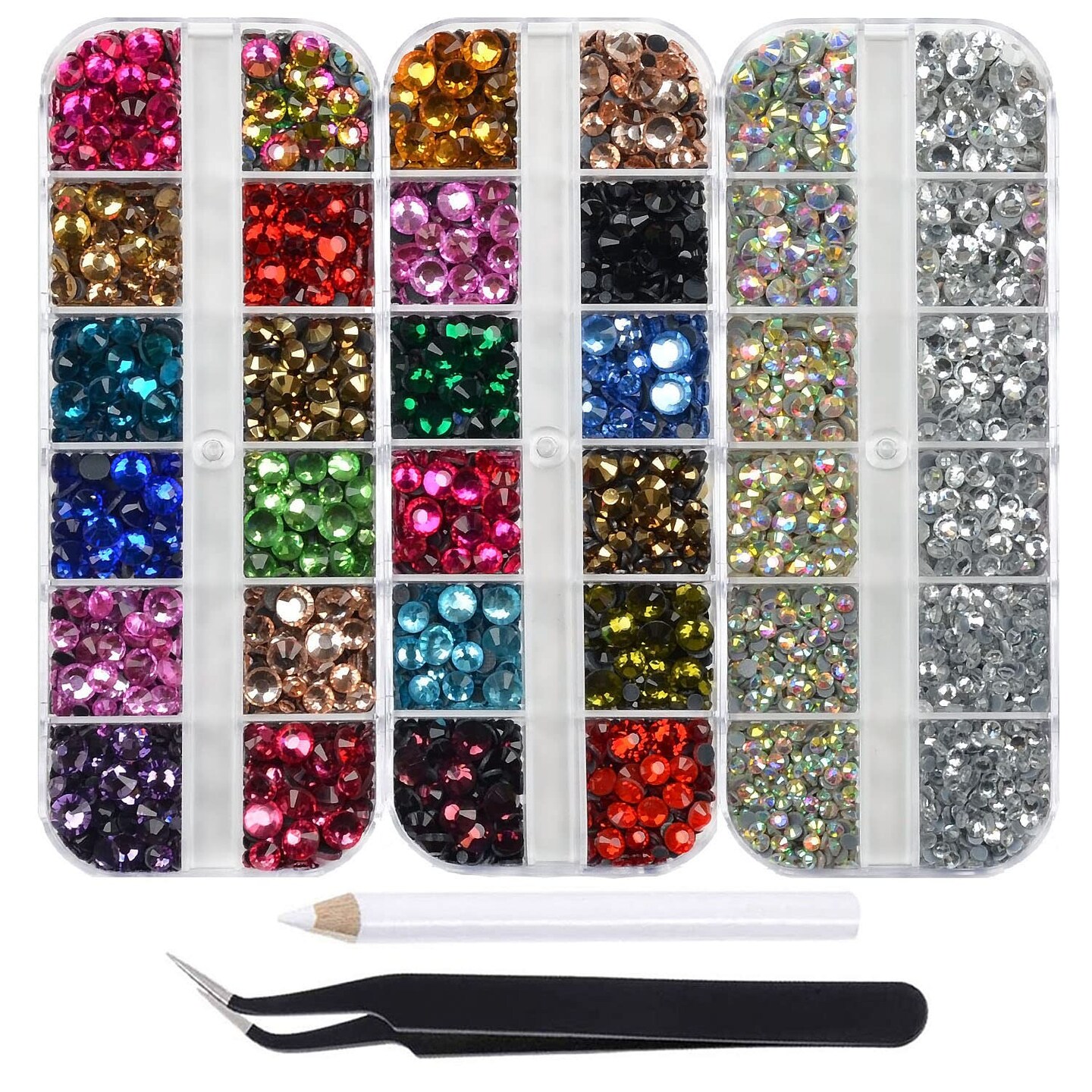 6500pcs+ Flatback Glass Hotfix Iron On Rhinestones Crystal for DIY Making with Tweezer & Picking Pen for Shoes, Clothes, Face Art, Bags, Manicure (2+20Multi-Colors,3&5-Sizes,2&20-colors)