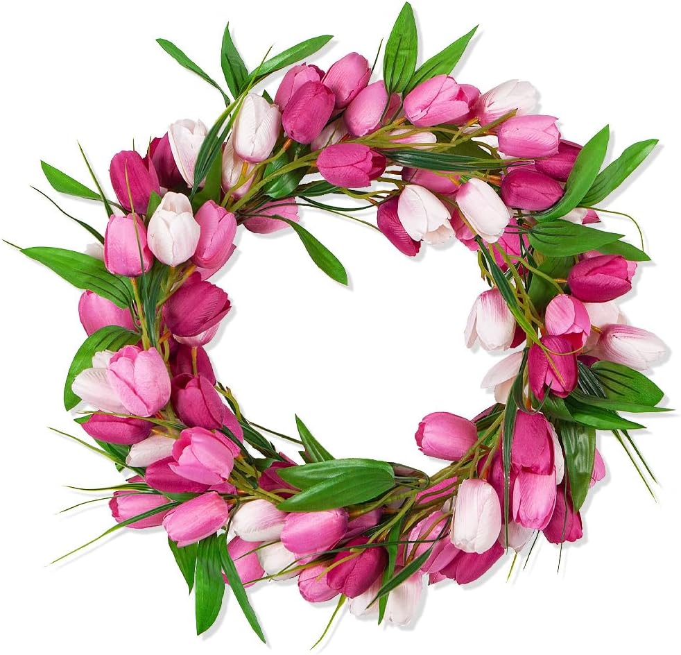6.56 ft Artificial Tulip Garland – Spring Floral Vine with Green Leaves for Easter, Christmas, Wall, Home, Wedding & Indoor/Outdoor Décor
