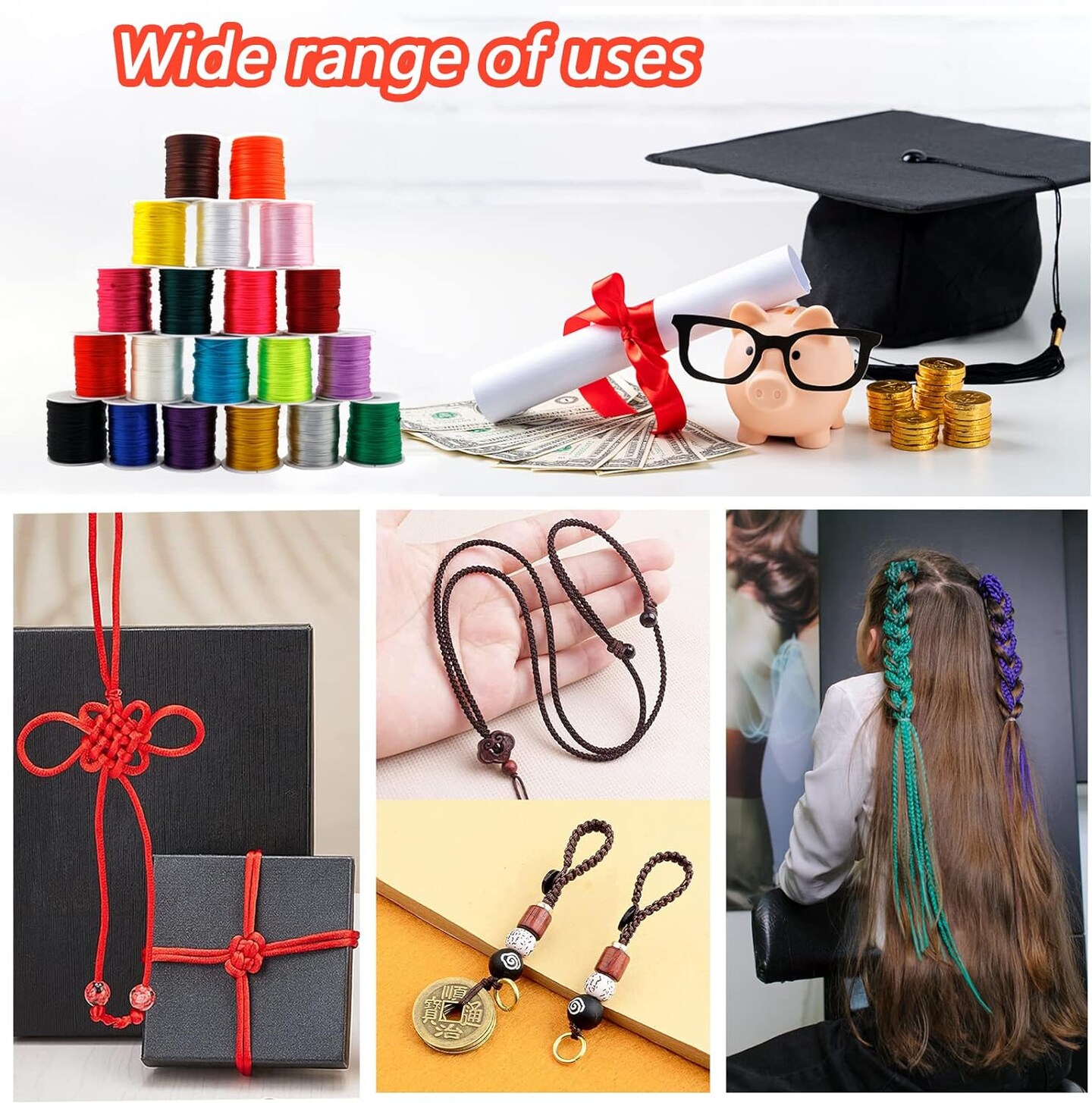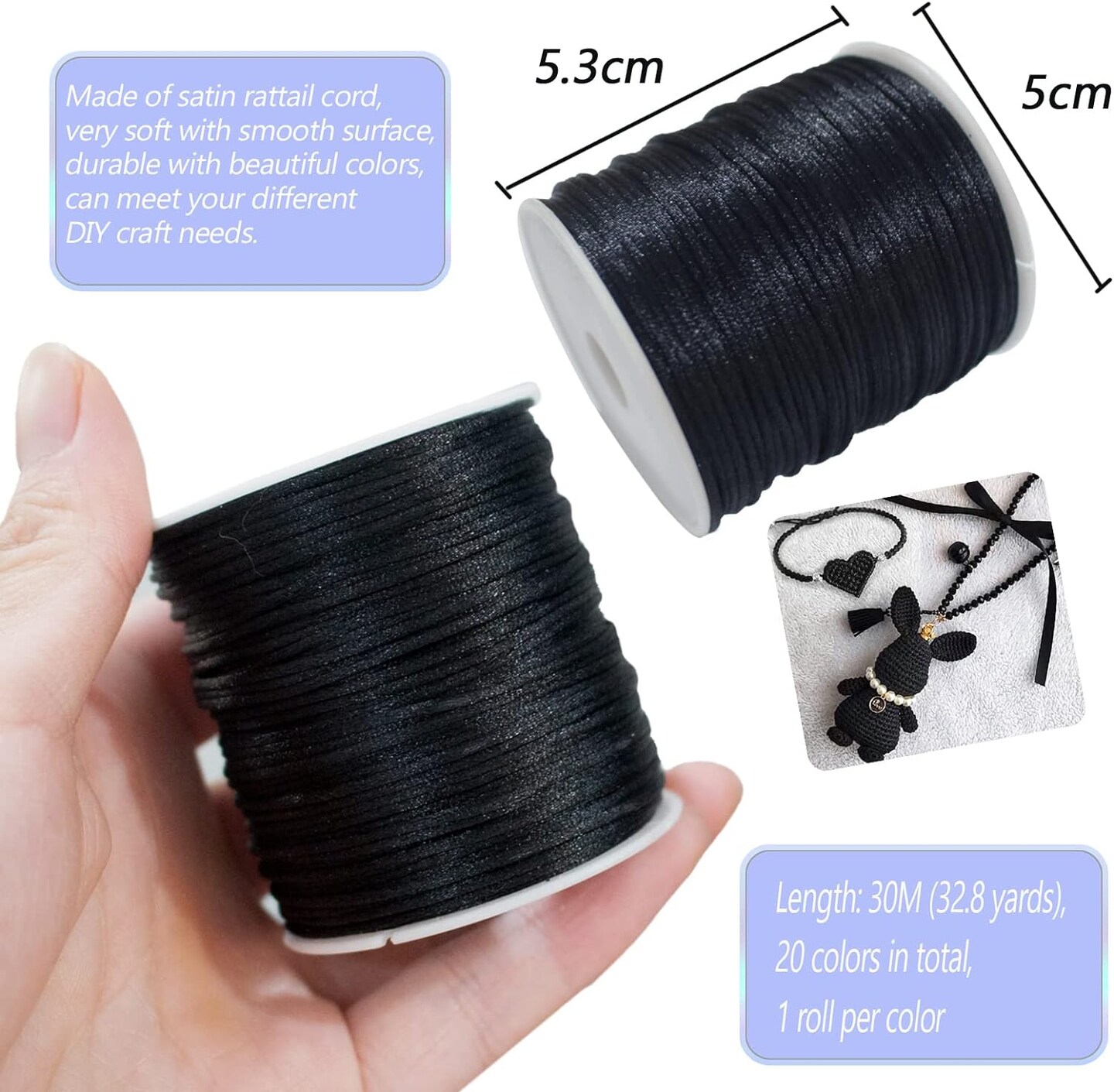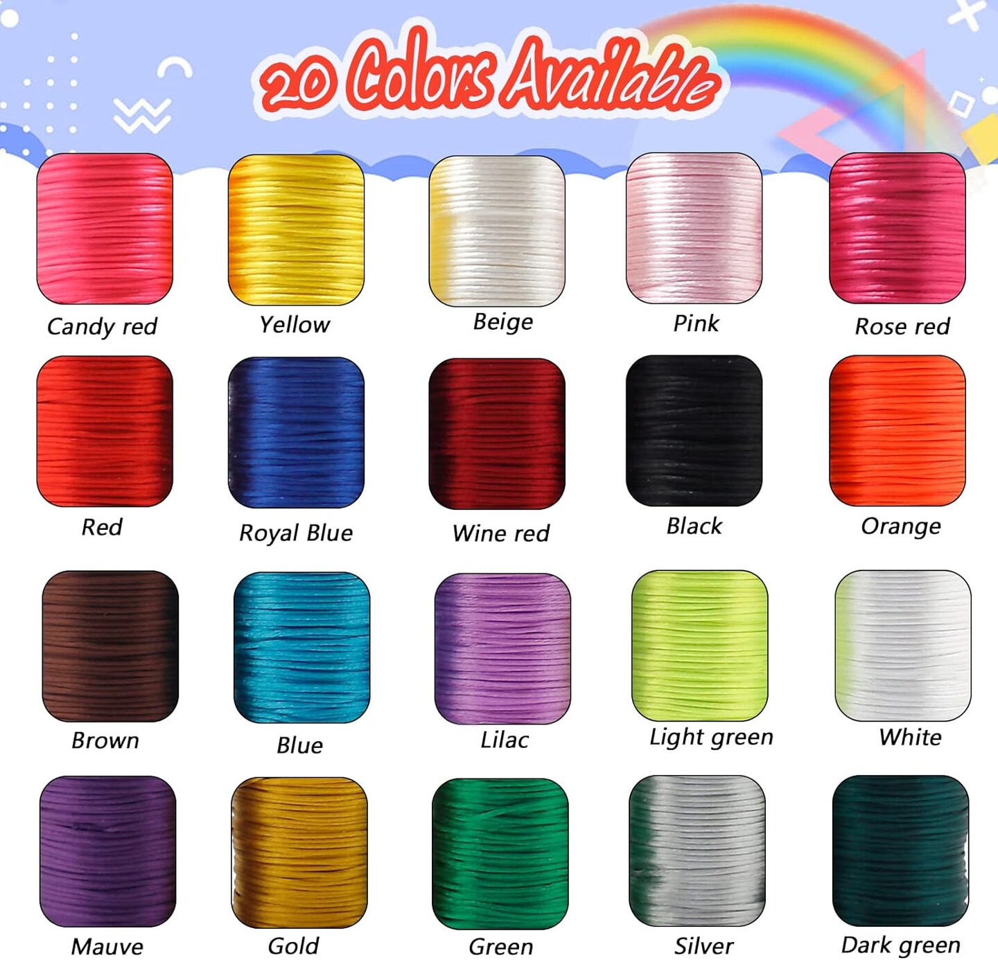 656 Yards 1mm Rattail Satin Nylon Trim Cord 20 Colors Silk Cord Beading String for Necklace Macrame Friendship Bracelet Chinese Knot Kumihimo Dream Catchers Braid Hair