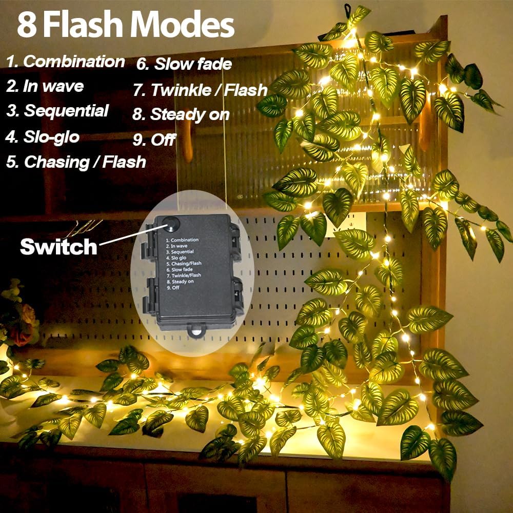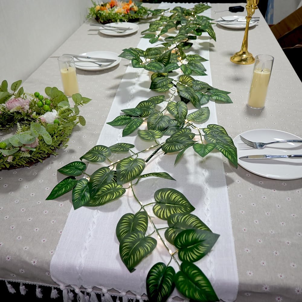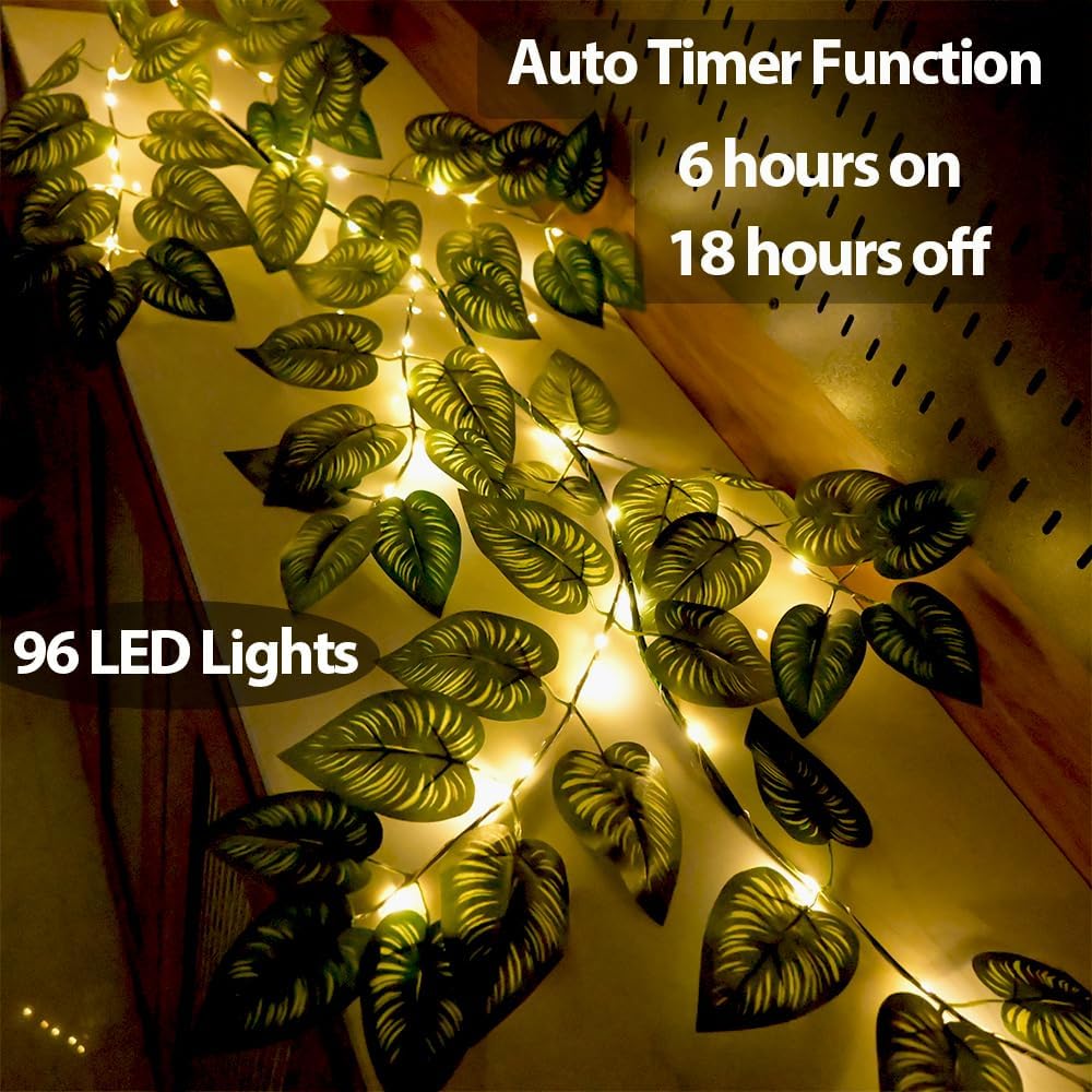6.56FT Green Vines Garland with Lights 96 LED Battery Operated