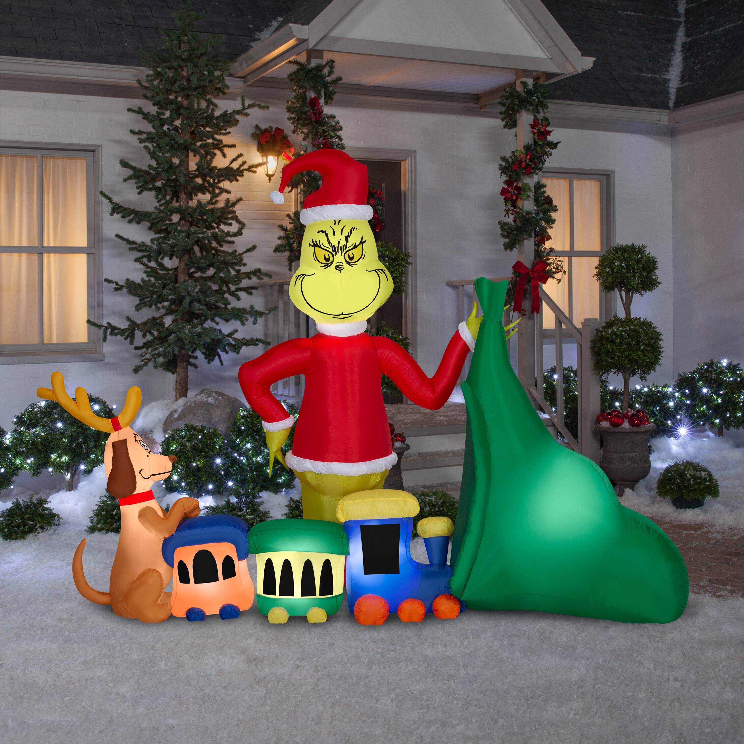 6.5ft. Airblown® Inflatable Christmas Grinch Putting Train in Santa Sack