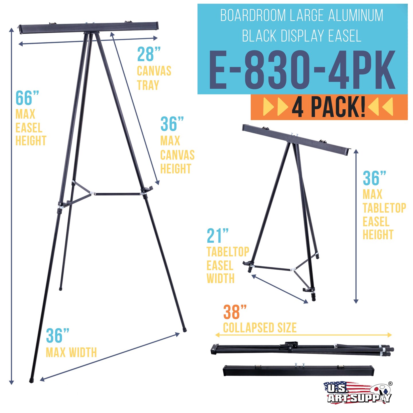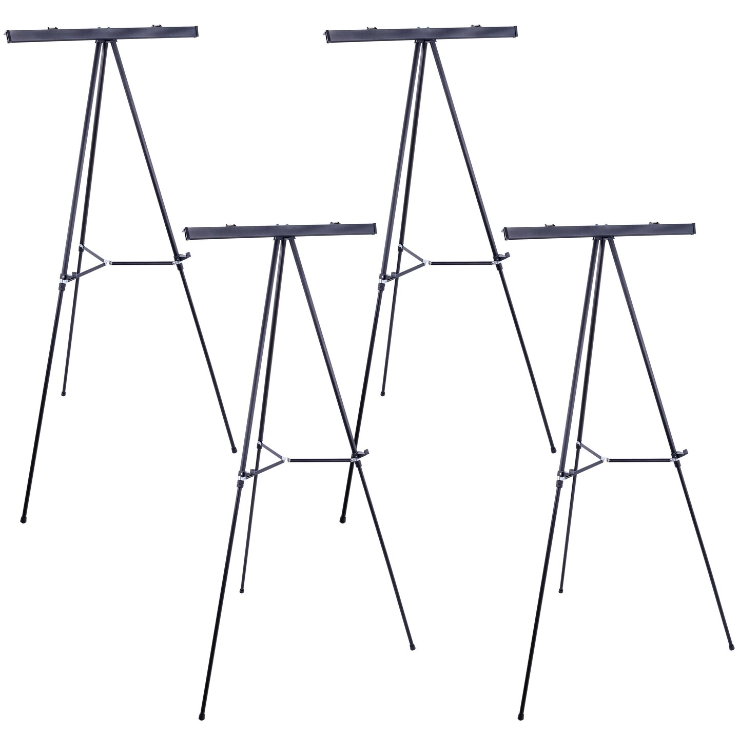 66" High Boardroom Black Aluminum Flip Chart Easel & Presentation Stand (4 Pack) - Adjustable Floor/Tabletop, Portable Tripod, Holds 25 lbs., for Chart Paper, Poster Boards, & Pads