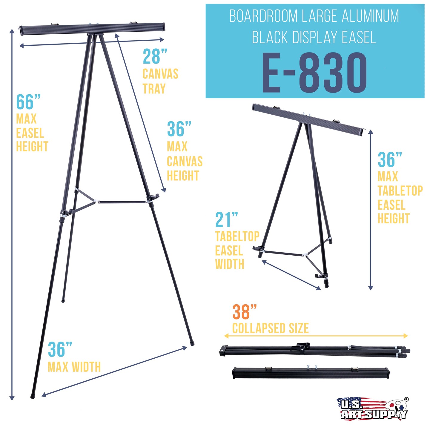 66" High Boardroom Black Aluminum Flip Chart Easel & Presentation Stand - Adjustable Floor/Tabletop, Portable Tripod, Holds 25 lbs., for Chart Paper, Poster Boards, & Pads