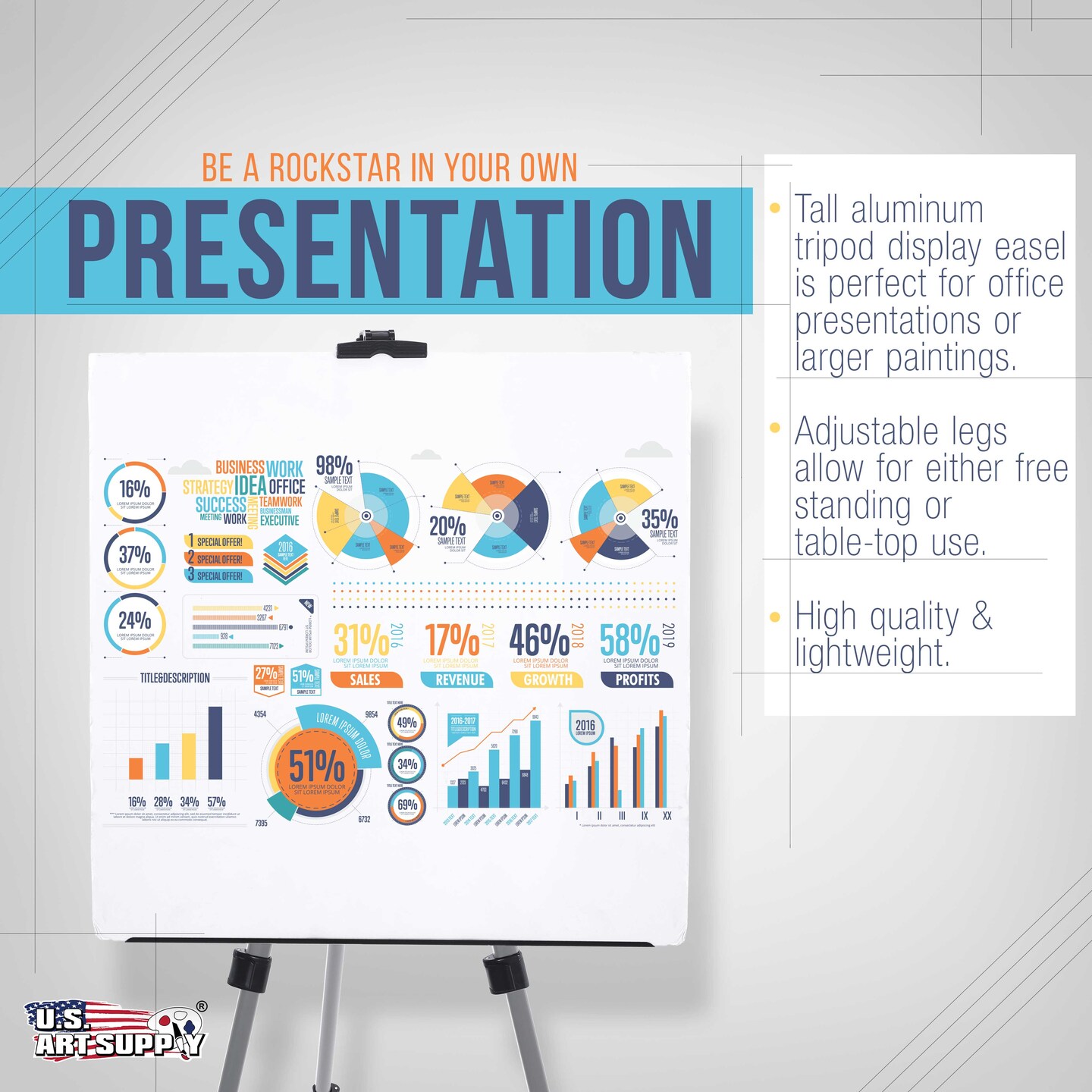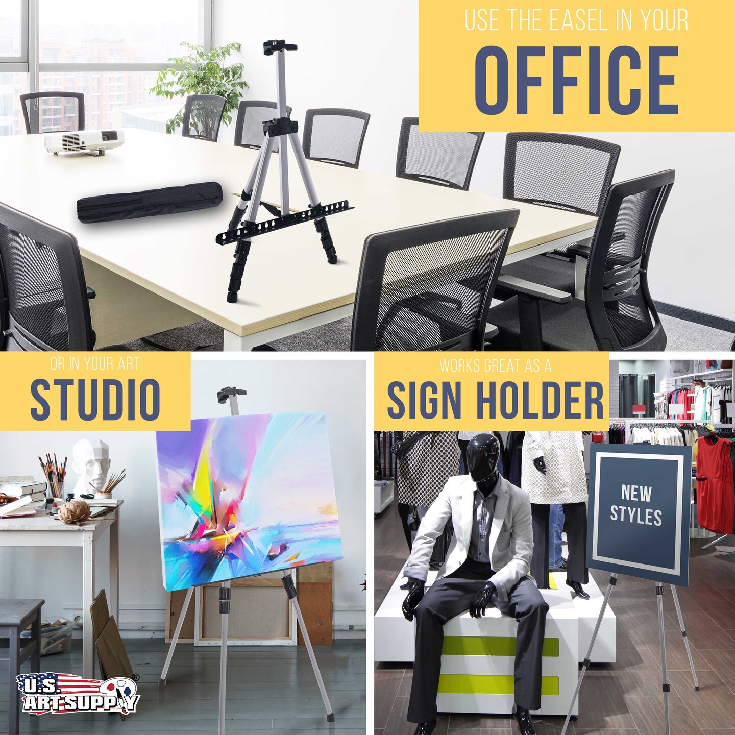 66" Sturdy Silver Aluminum Tripod Artist Field & Display Easel Stand (4 Pack) - Adjustable Height 20" to 5.5 Feet, Holds 32" Canvas - Floor Tabletop