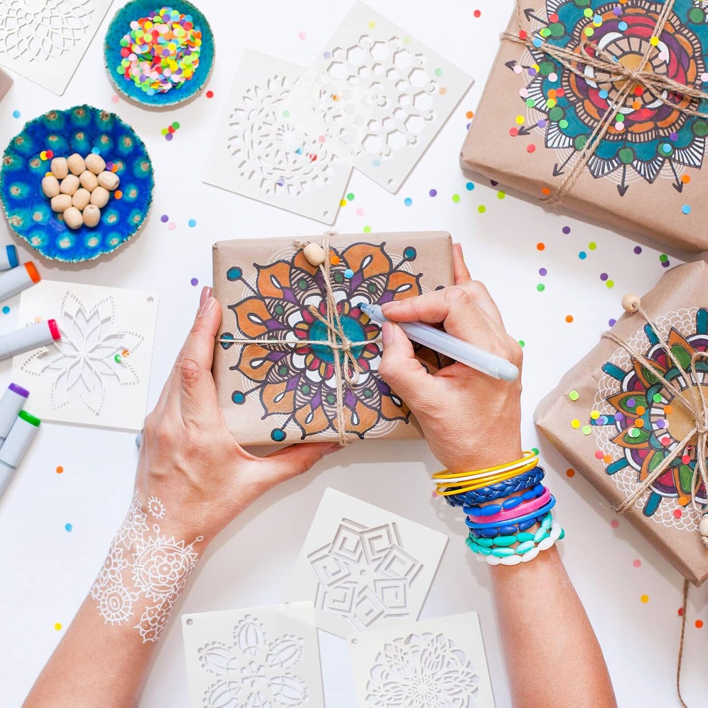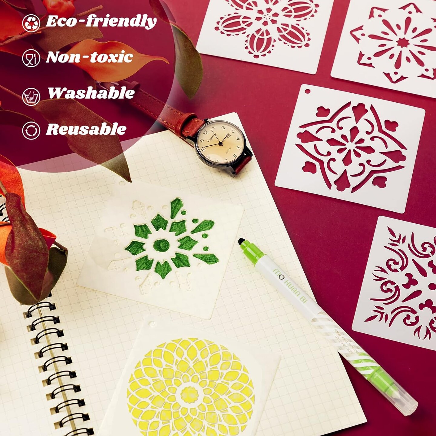 66-Piece Spring Mandala Stencil Set (3 Inch) – Reusable Small Templates for Painting on Wood, Canvas, Fabric, Wall, Rock & DIY Crafts