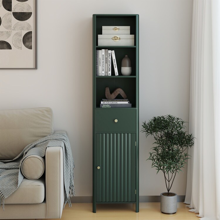 67" Tall Bathroom Cabinet Narrow Floor Cabinet with Fluted Door