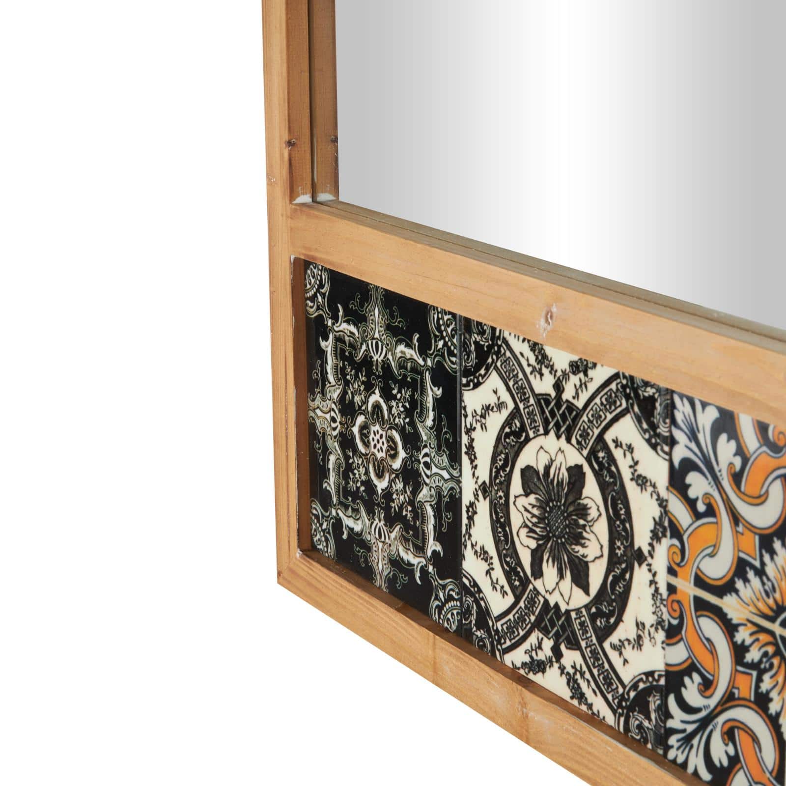 67" x 26" Brown Wood Wall Mirror with Mosaic Edge